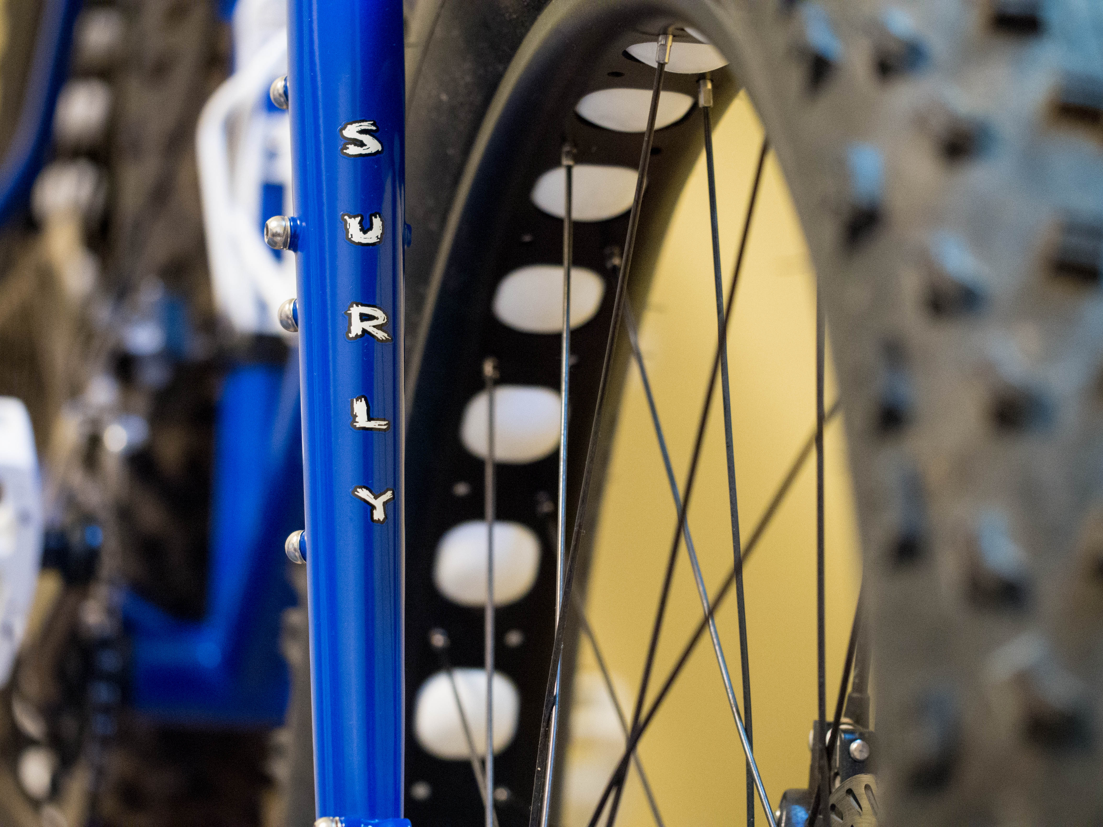 Now my Pugsley is not totally “stock” and in my opinion, looks much better. I can see it and easily distinguish it from another blue 2014 Surly Pugsley.