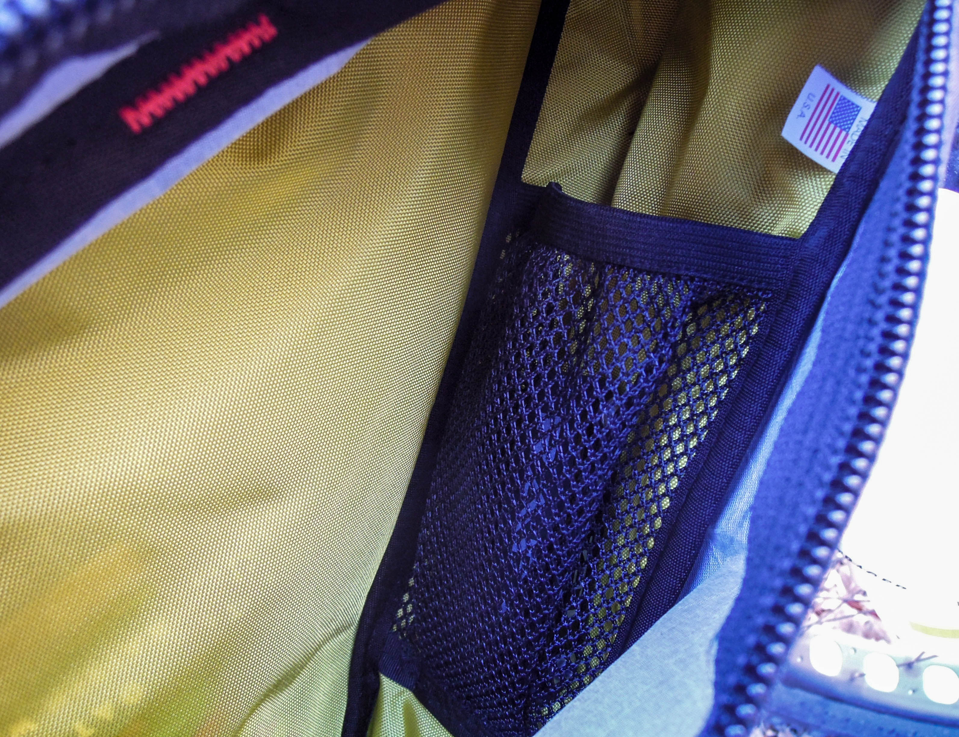 Notice that the interior of the pack has yellow fabric making it easier to see inside, especially if it is dark. A nice touch.