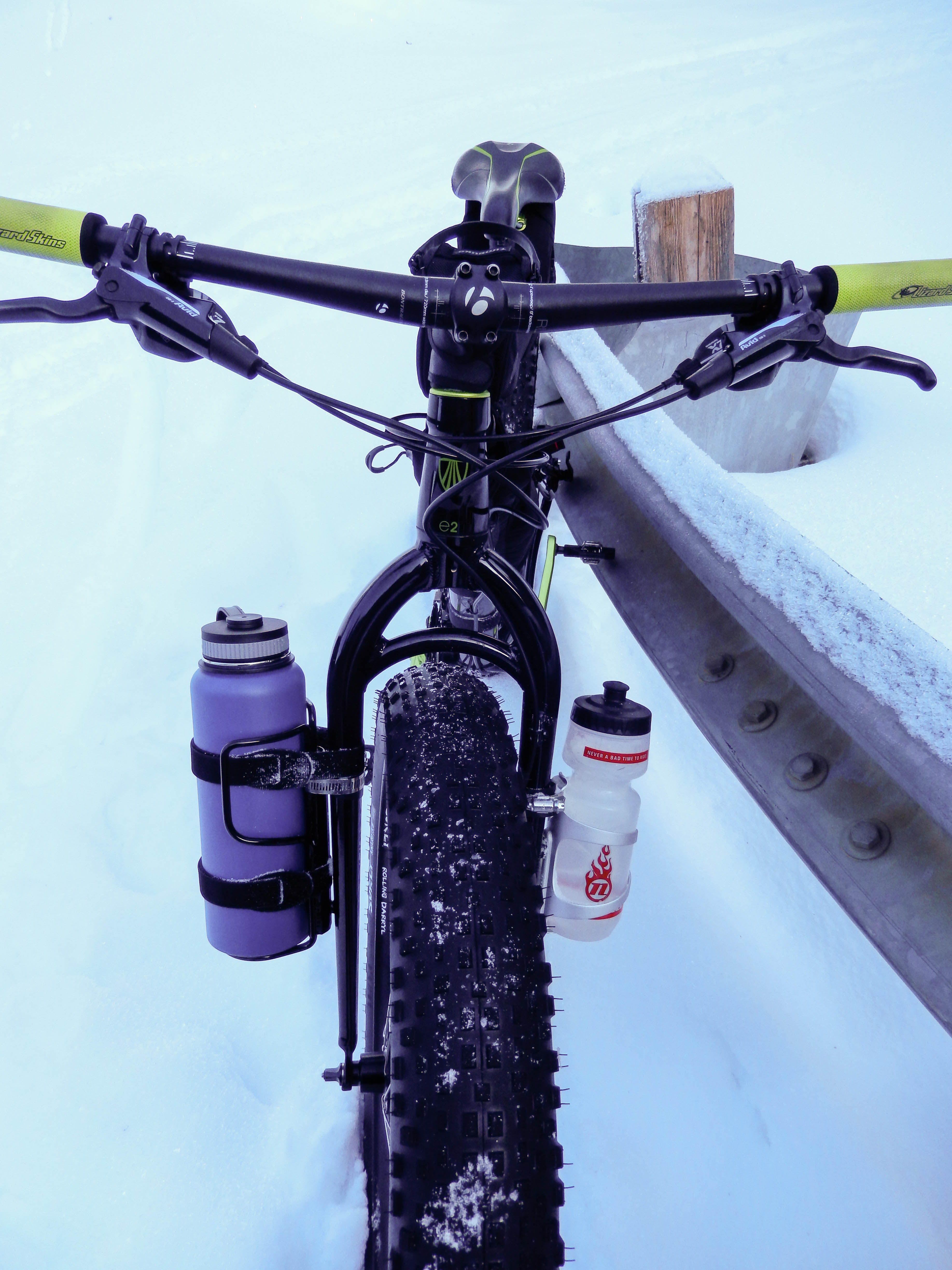 So far this system seems like it will work out very nicely. I will be getting a second Anything Cage in the Spring before we start getting serious about some bikepacking so I can carry a dry bag with gear in it.