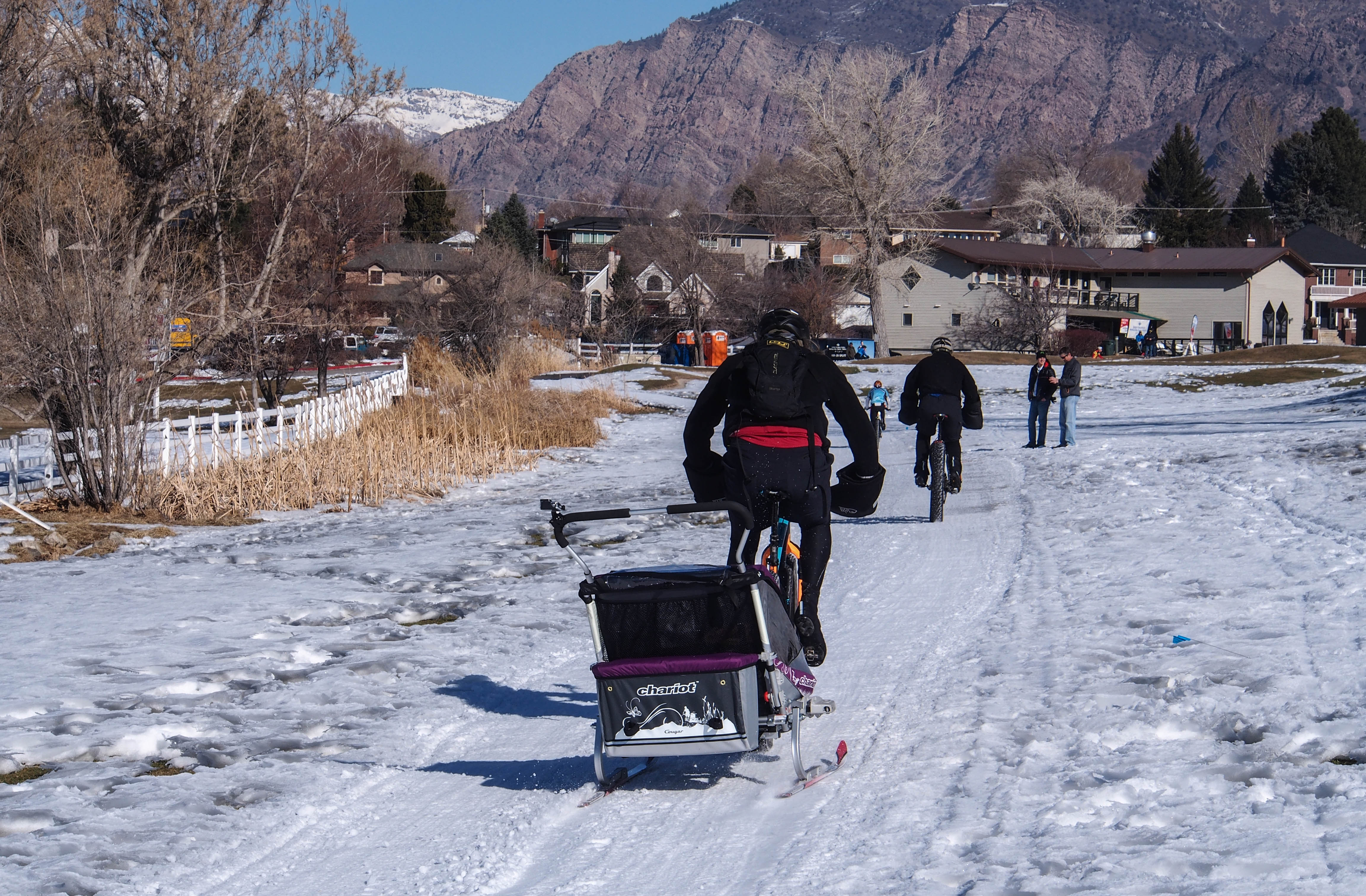 It was a nice day to be out and great seeing all this fat bike fun. Fat biking in Utah has become huge. It is quite common to see fat bikes out on the local trails. One saturday, we counted about 40 fat bikers at one of the popular trailheads. Utah has great trails, singletack, doubletrack, snow mobile tracks, and snowed over roads. Most of it is easily accessible.