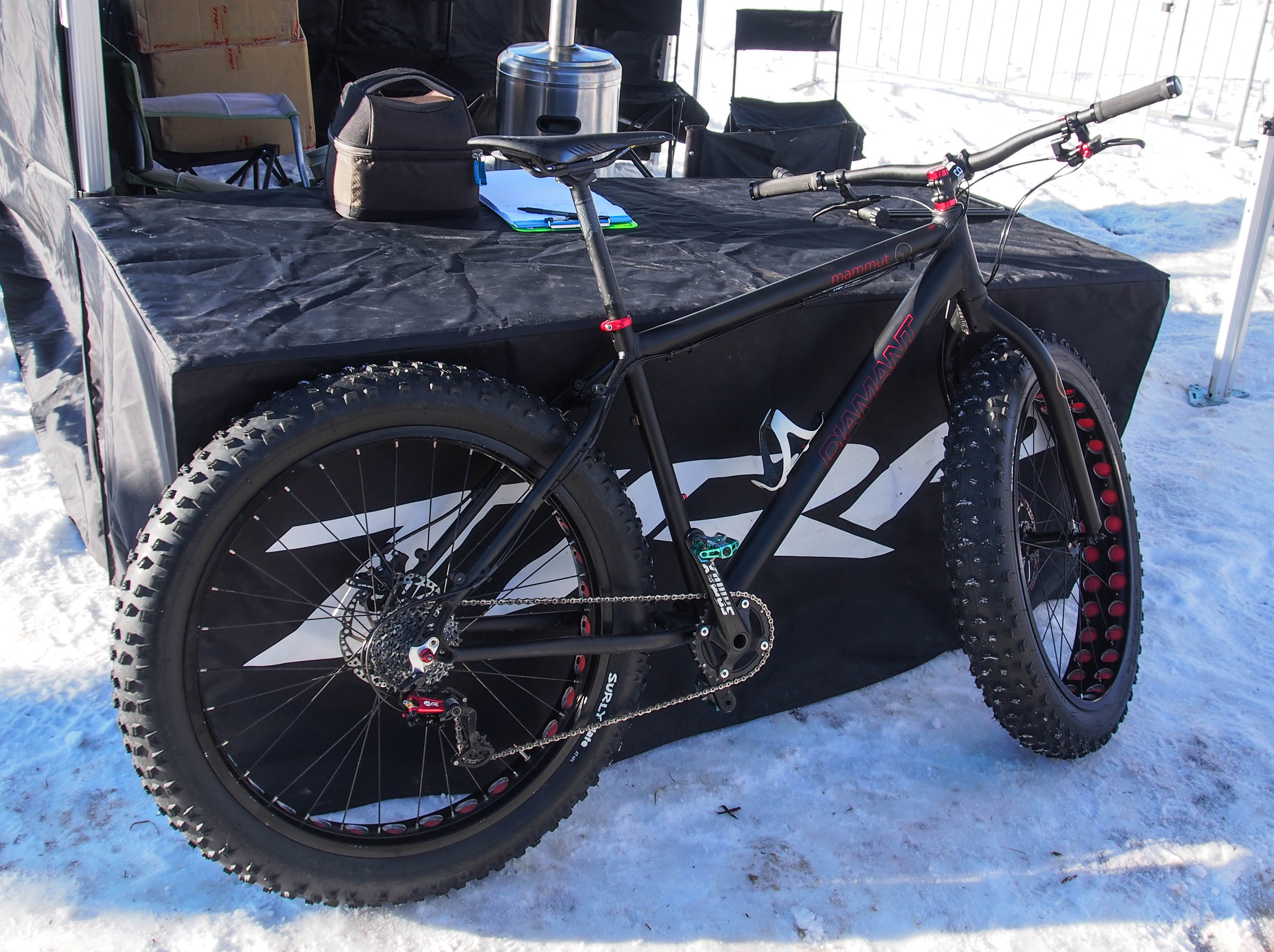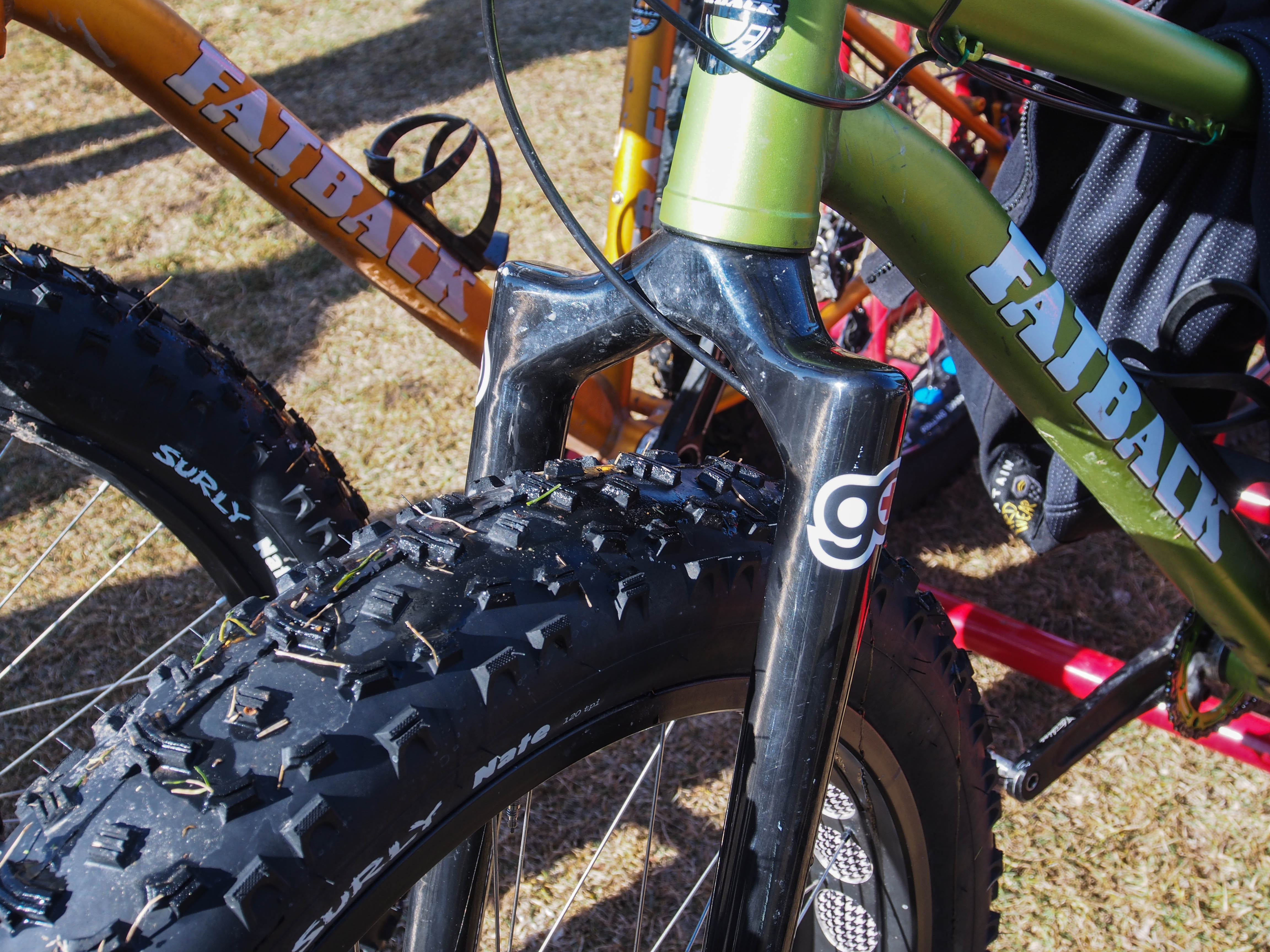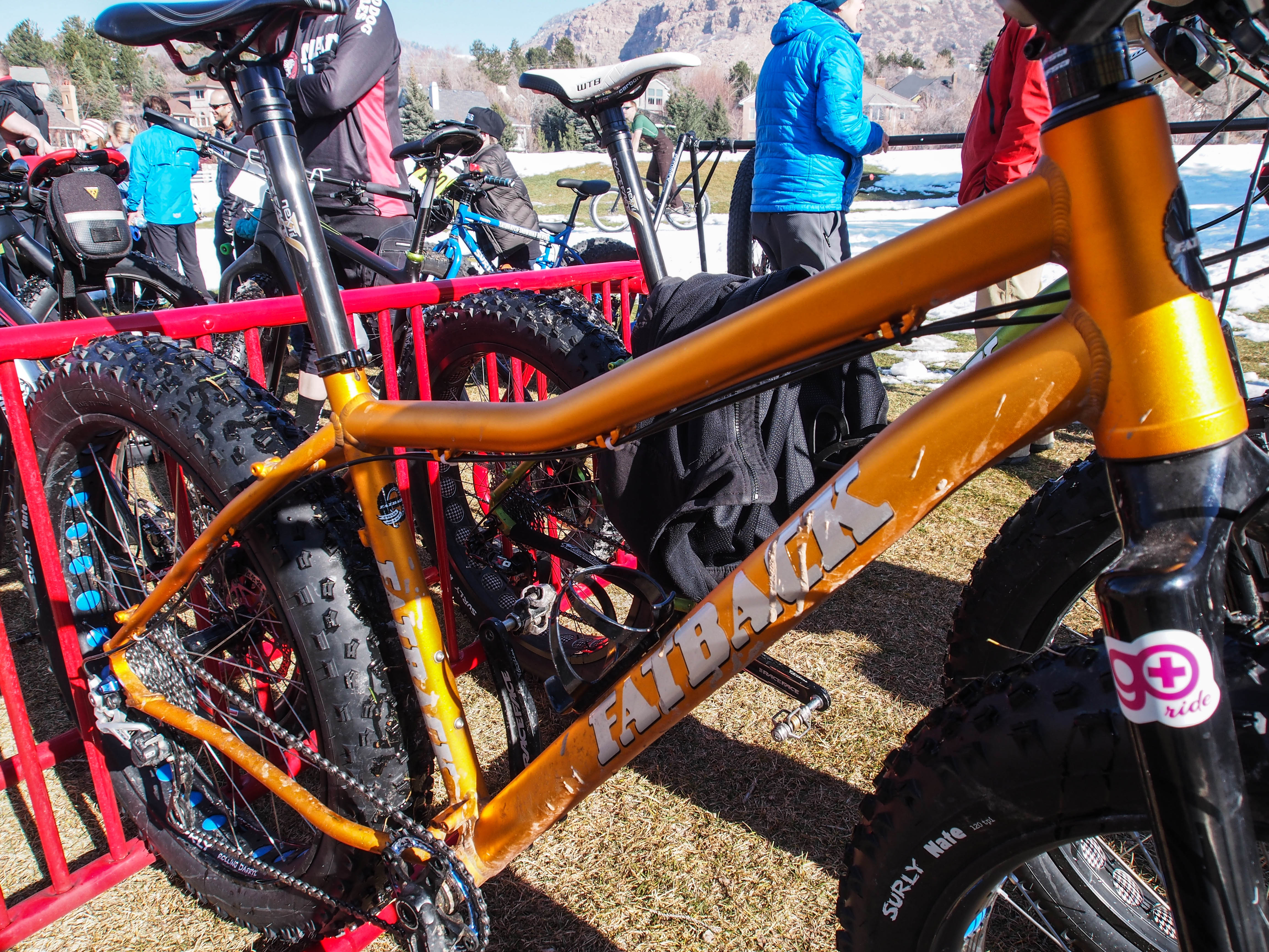 We also saw a few other new fat bikes that we had never seen before. There was exactly one Specialized Fatboy racing. We caught up with the owner, from Logan, and checked out his bike. The most impressive feature of the bike seemed to us to be the wheelset and tires. The bike felt pretty heavy to us, but it is nice looking if that counts for anything.