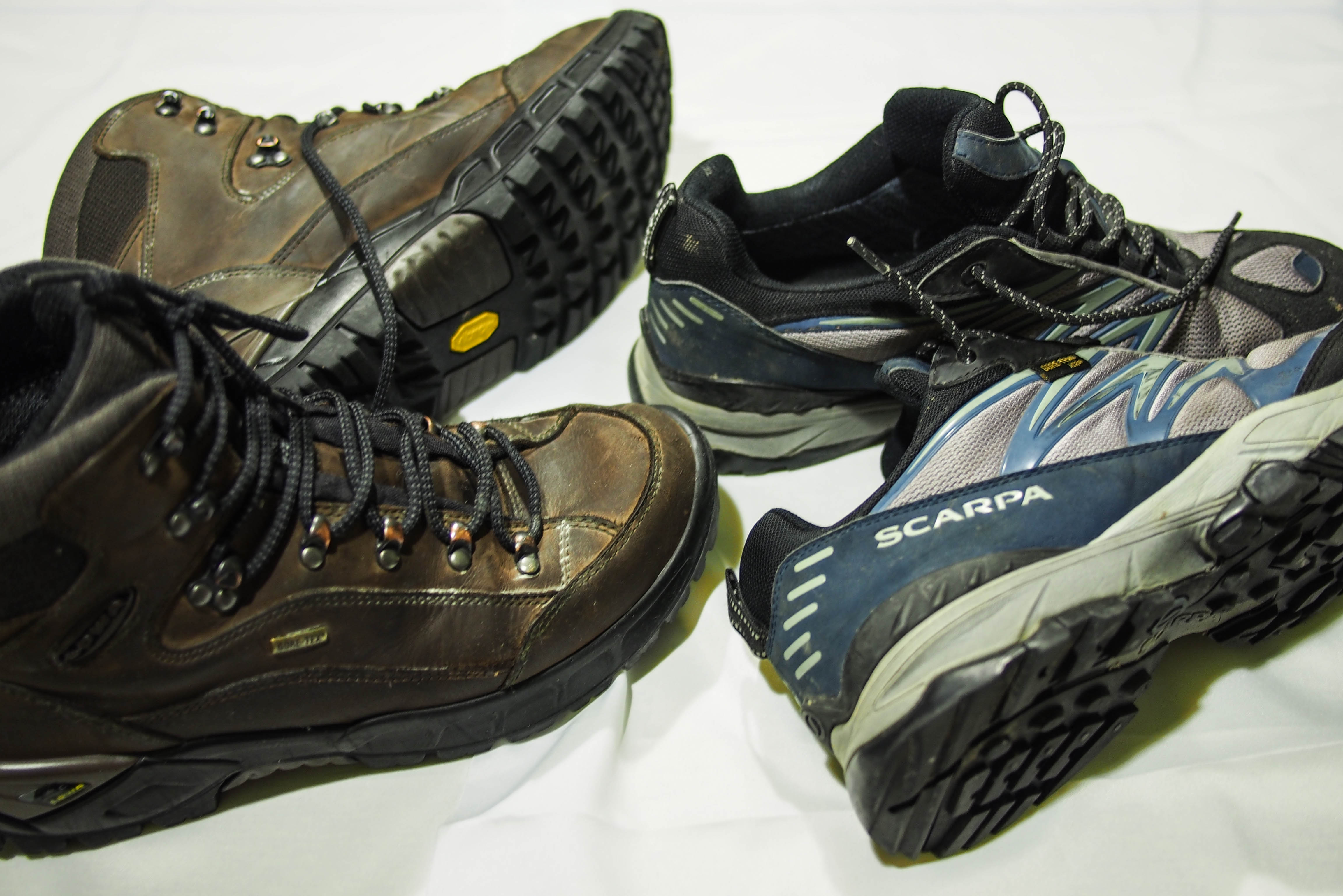 For my feet I wear a midweight pair of merino wool hiking socks, then either a pair of Gore-tex, low top light hiking shoes, or if colder and the snow is deeper, I wear a pair of Lowa all leather Gore-tex light hiking boots. I then wear a short gaiter to keep the snow out of my shoes. I have a pair of Rab short gaiters that I like. If I am anticipating deep snow or really cold weather, I have a lightweight pair of Outdoor Research gaiters that come up to my knees.