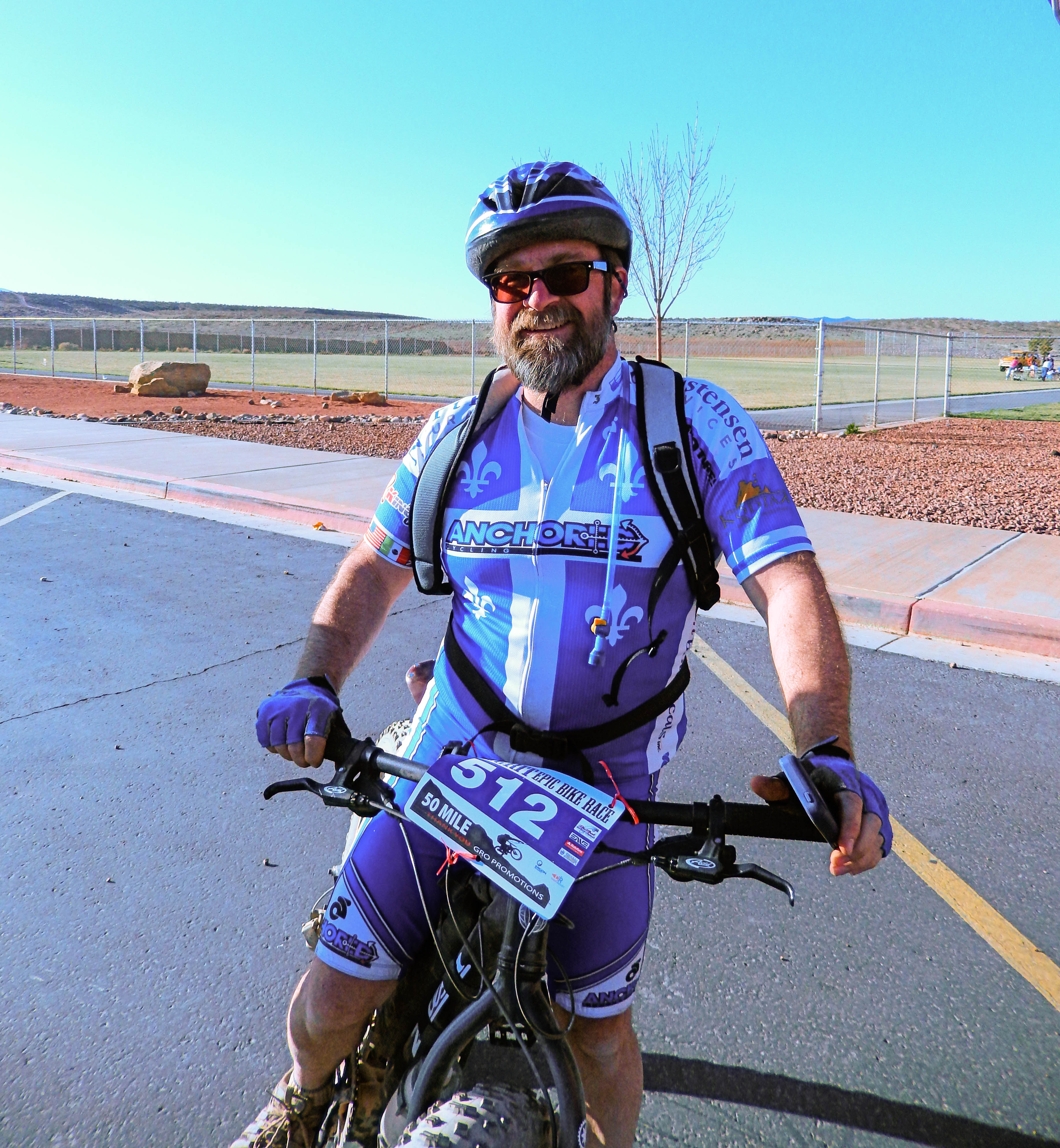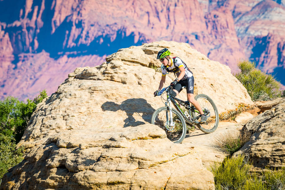 The rest of this upper section consists of very technical climbing over slick rock, sometimes only a few feet away from the cliff edge, connected by short stretches of sandy single track. Much of this section was spent off the bike, partly because it was just faster for me to push the bike through it and partly because I wasn’t interested in another crash. We had ridden this part of the course a couple of times before so there were no surprises and I knew I would be spending time off the bike here. My goal was to just keep moving and get through Zen in one piece.