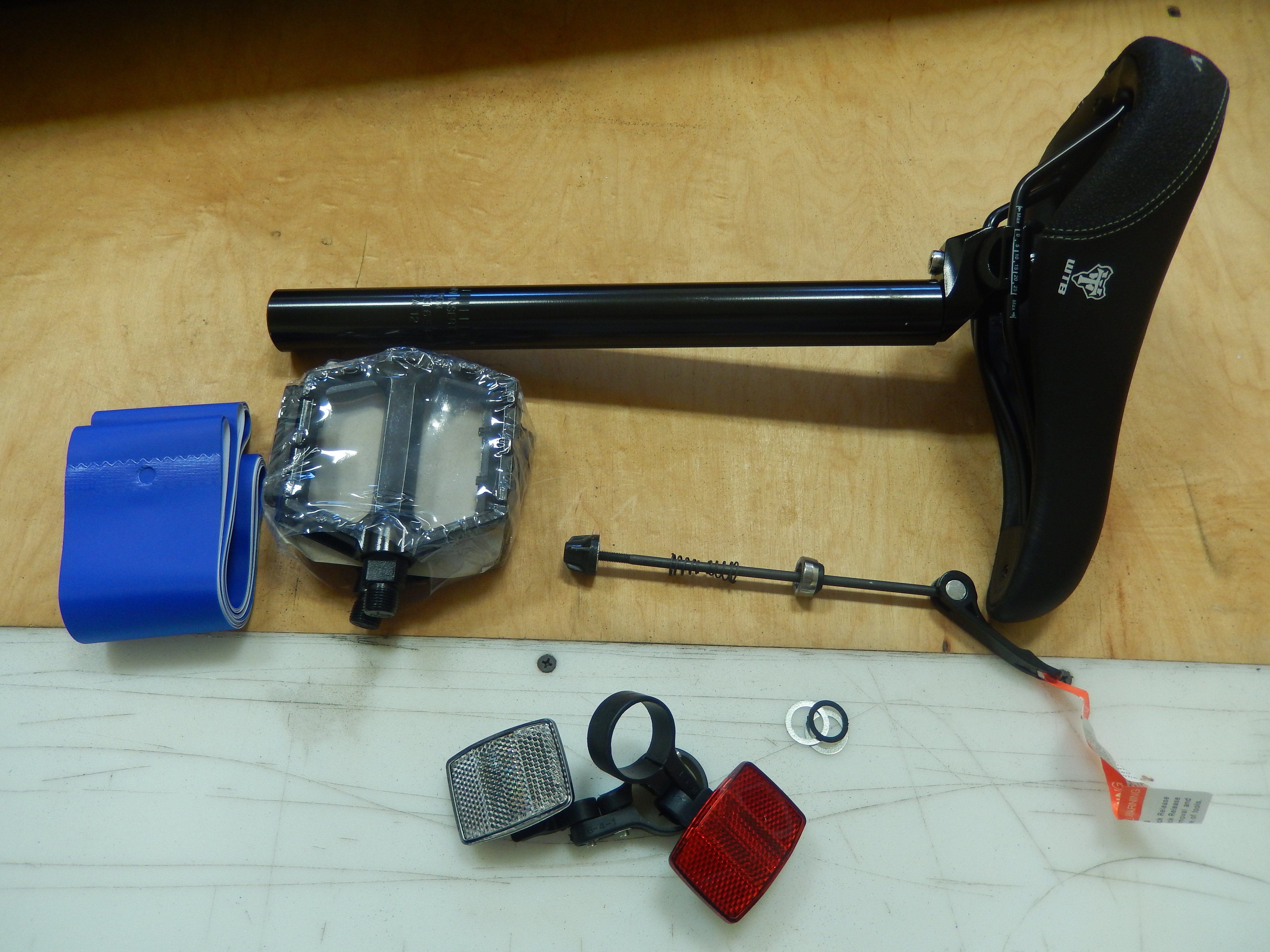 As I mentioned earlier, I did not have great expectations and expected to find some issues during the assembly process. I was pleasantly surprised to find everything in good order with all the parts needed to complete a rideable bike including a set of metal platform pedals. I wasn’t sure it would come with pedals and figured they would be cheesy plastic ones if it did so that was a nice surprise. I had purchased an inexpensive set of Welgo platform pedals with removable studs for $21.99 so we wouldn’t be stuck with a bike we couldn’t ride right away.