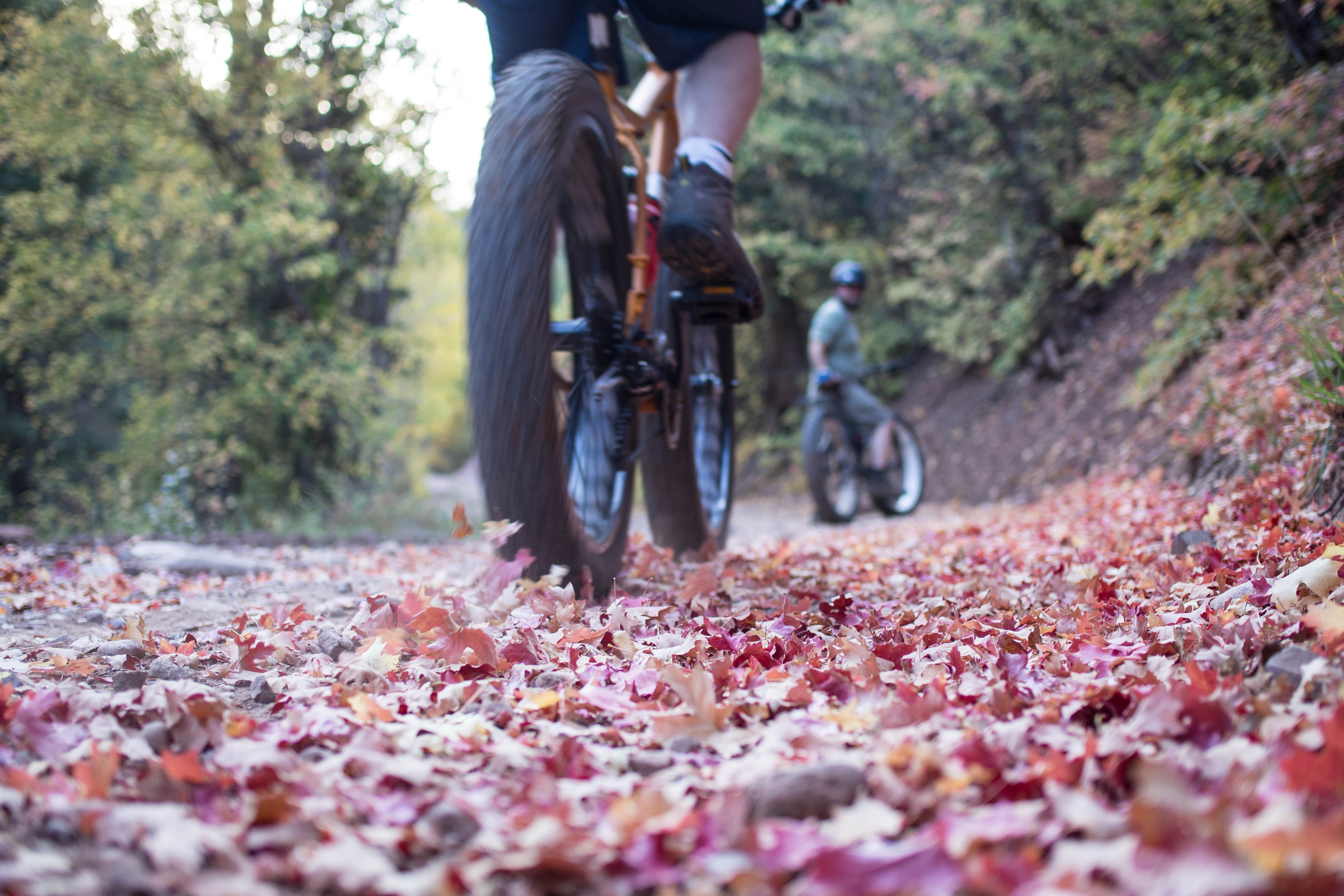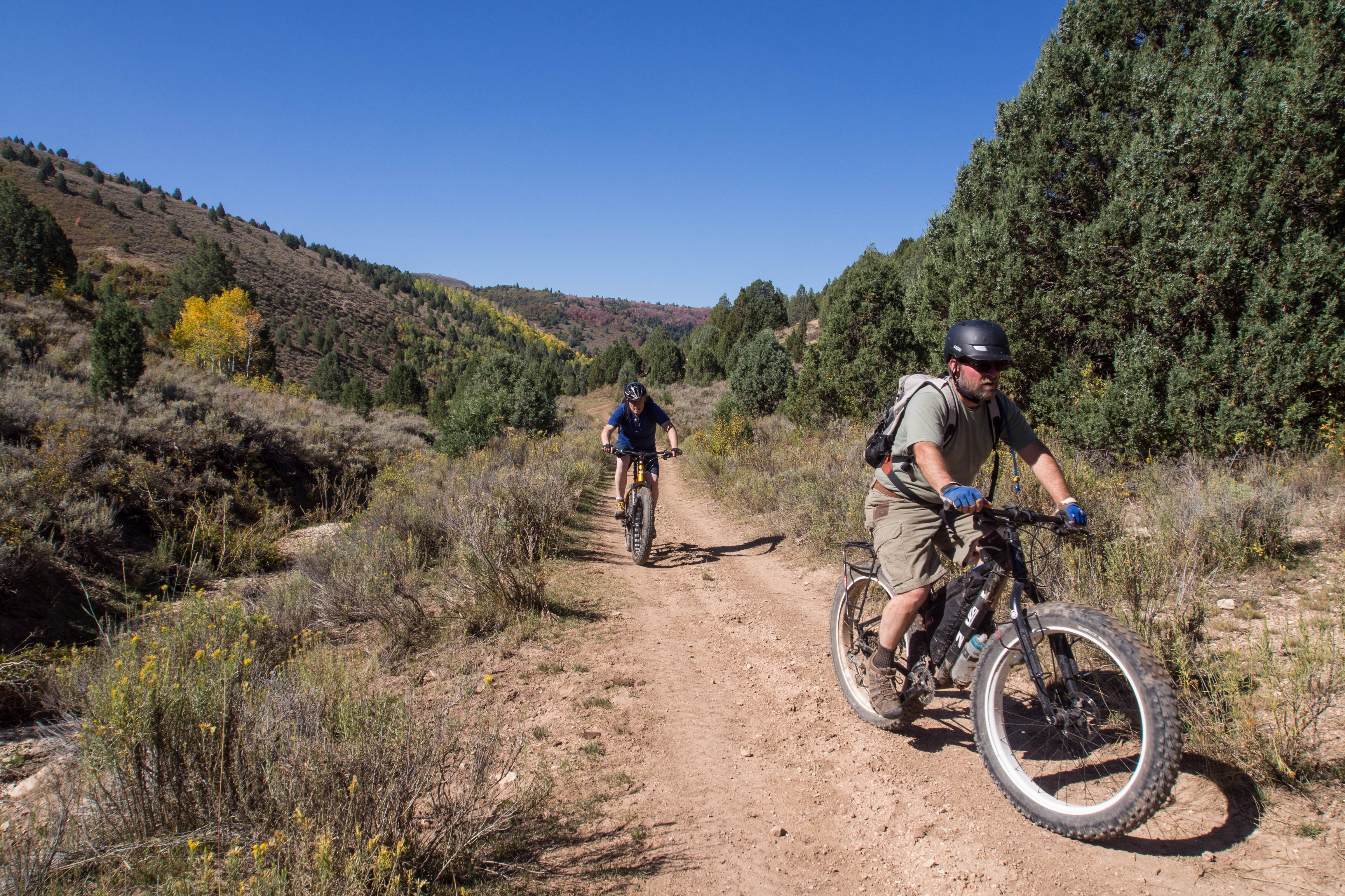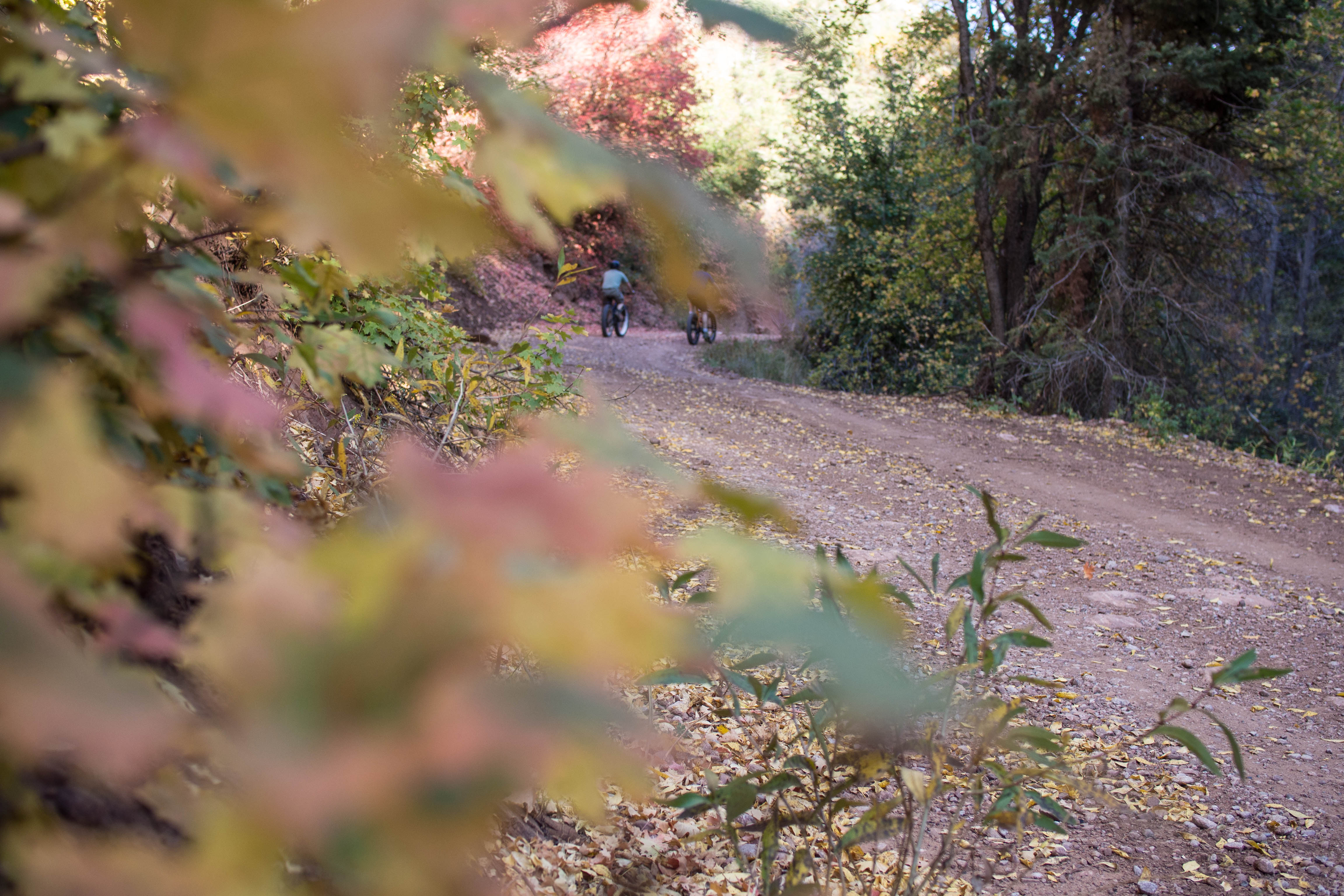 Chicken Creek is a beautiful area that doesn’t get much traffic. The forest service road provided pretty mellow, non-technical riding, though there were some steep climbs. The side canyons were mostly double-track with occasional singletrack sections and regular creek crossings, though this time of year there was hardly any water. We did see a few four wheelers on the forest service road. The Fall colors were not quite in. The maples were red and falling but the aspens were not yet changing color. I’d like to head back there and explore farther up Trail 1275. We had a really good time and it was nice getting reacquainted with Daryn.