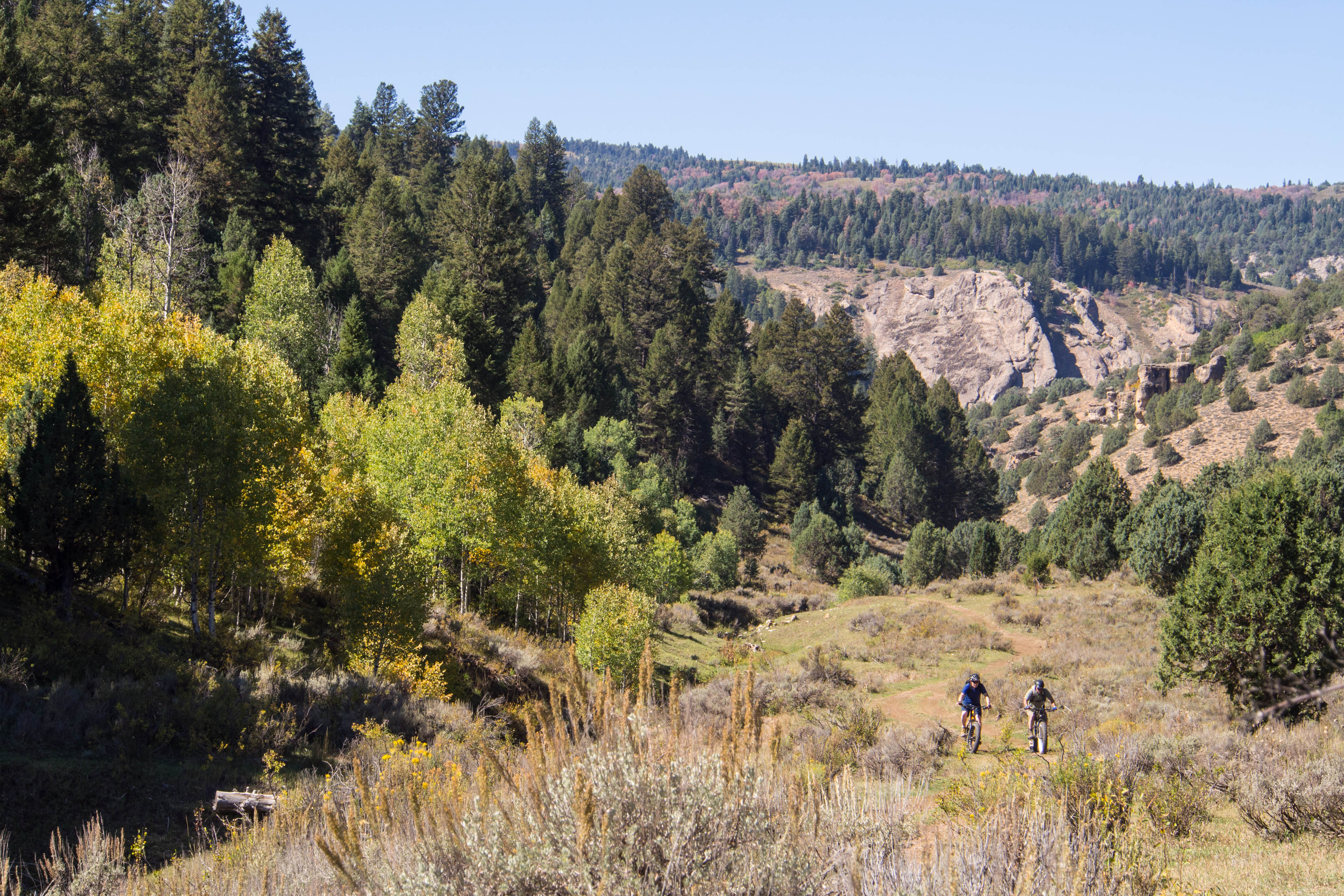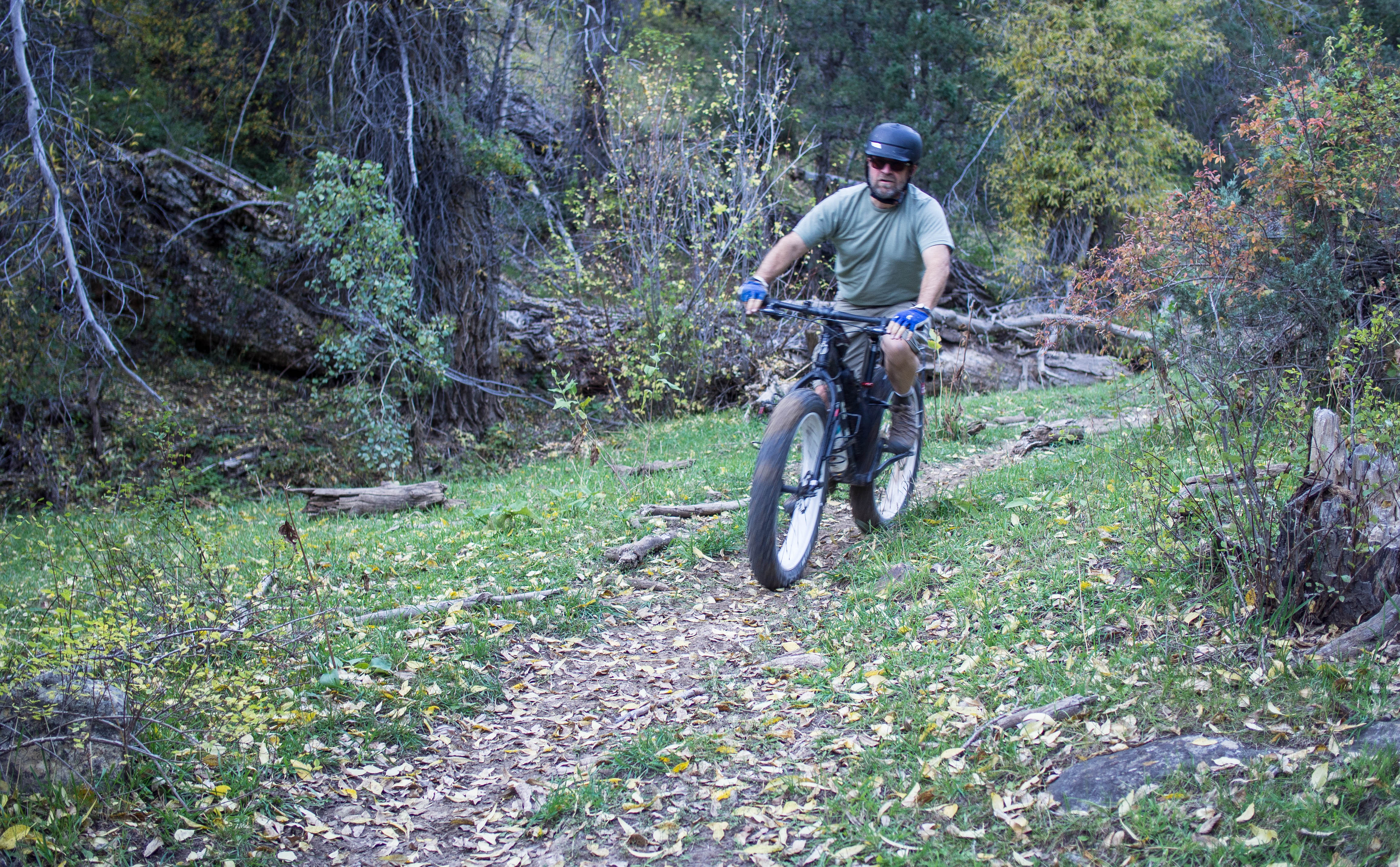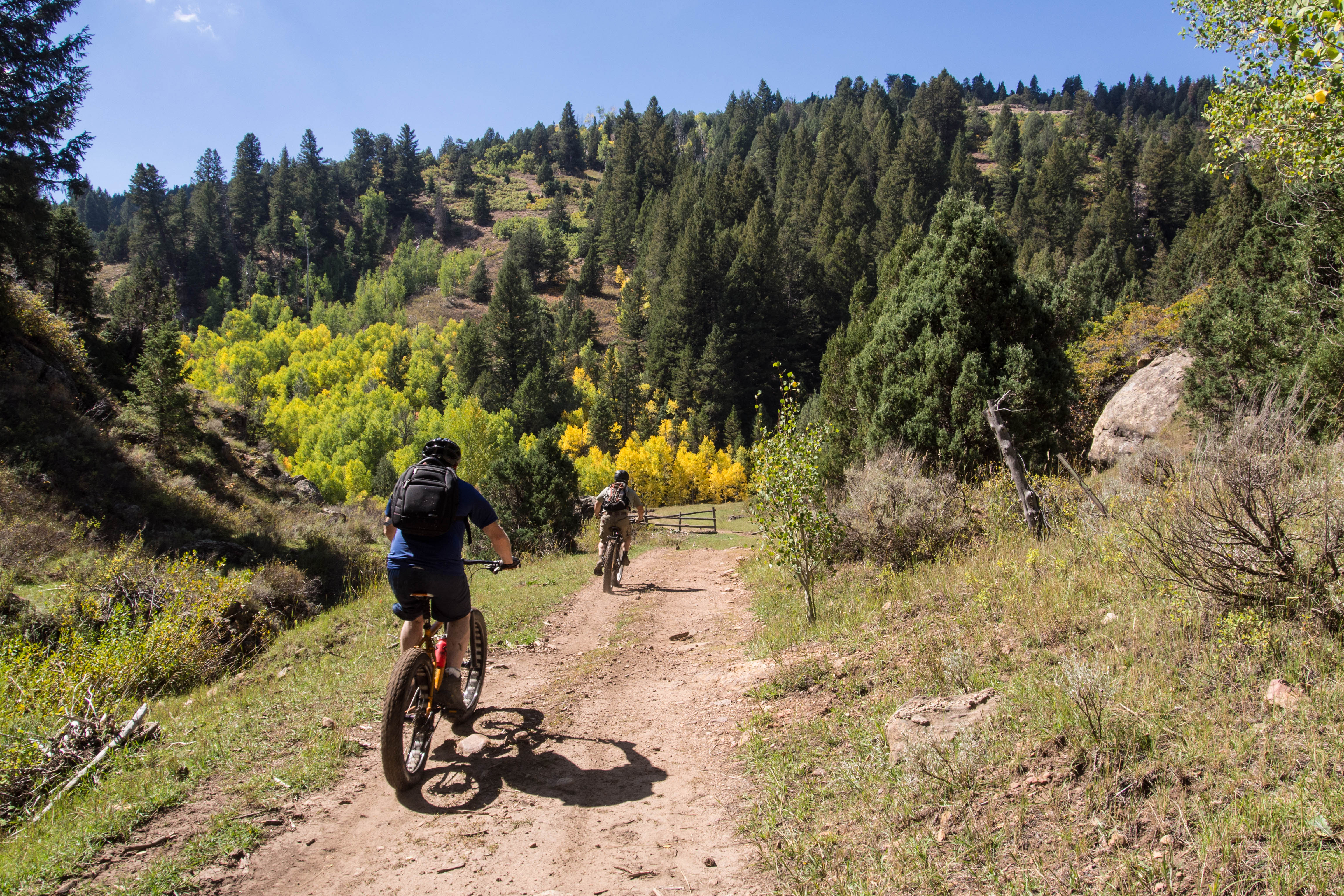 Chicken Creek is a beautiful area that doesn’t get much traffic. The forest service road provided pretty mellow, non-technical riding, though there were some steep climbs. The side canyons were mostly double-track with occasional singletrack sections and regular creek crossings, though this time of year there was hardly any water. We did see a few four wheelers on the forest service road. The Fall colors were not quite in. The maples were red and falling but the aspens were not yet changing color. I’d like to head back there and explore farther up Trail 1275. We had a really good time and it was nice getting reacquainted with Daryn.