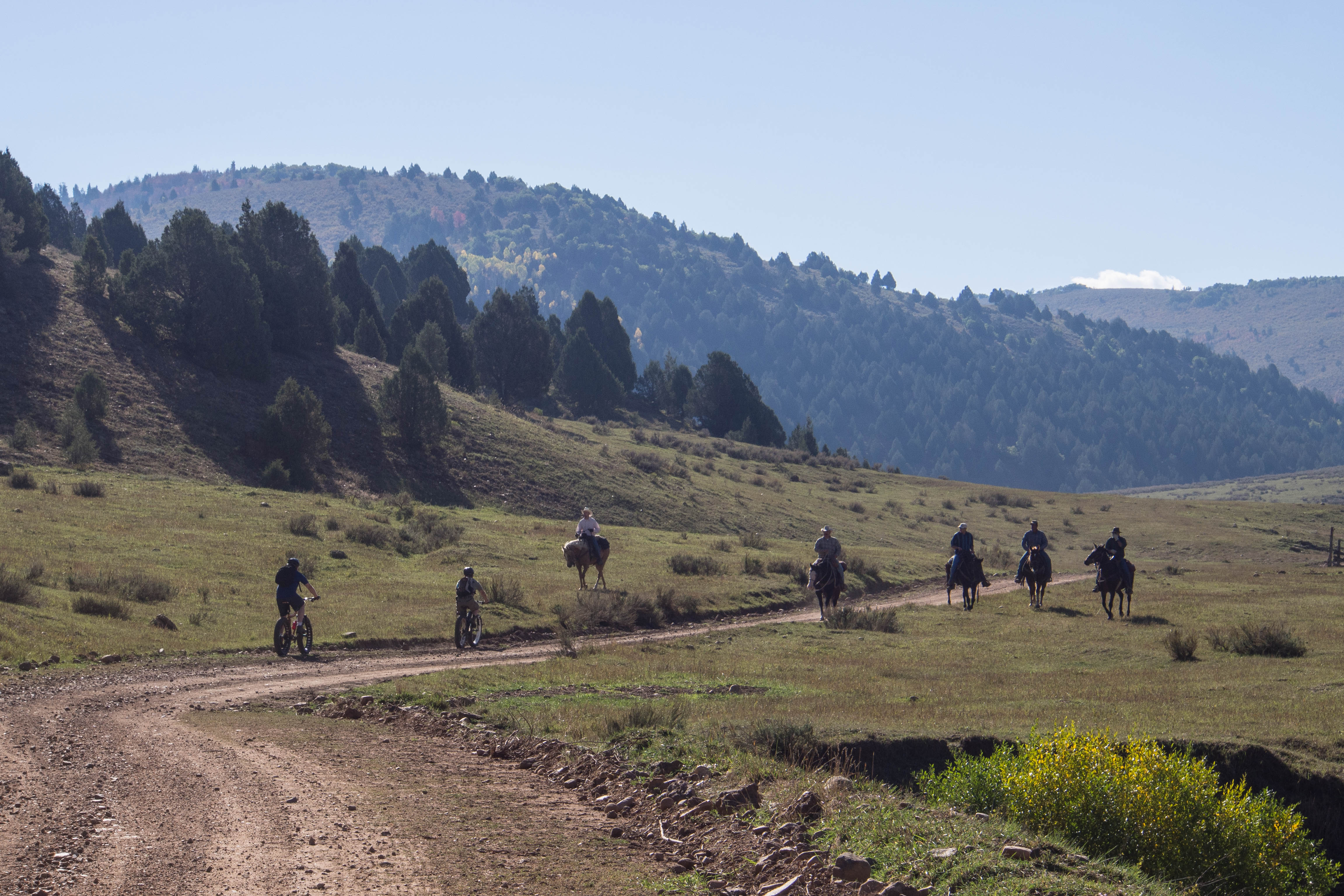 We first set off down the forest service road out into a beautiful wide open pasture area. We wanted to follow the road out until we could see down into Sanpete Valley on the other side of the range. Along the way we passed a few cowboys on horses. I suppose they were headed up one of the side canyons looking for cows.