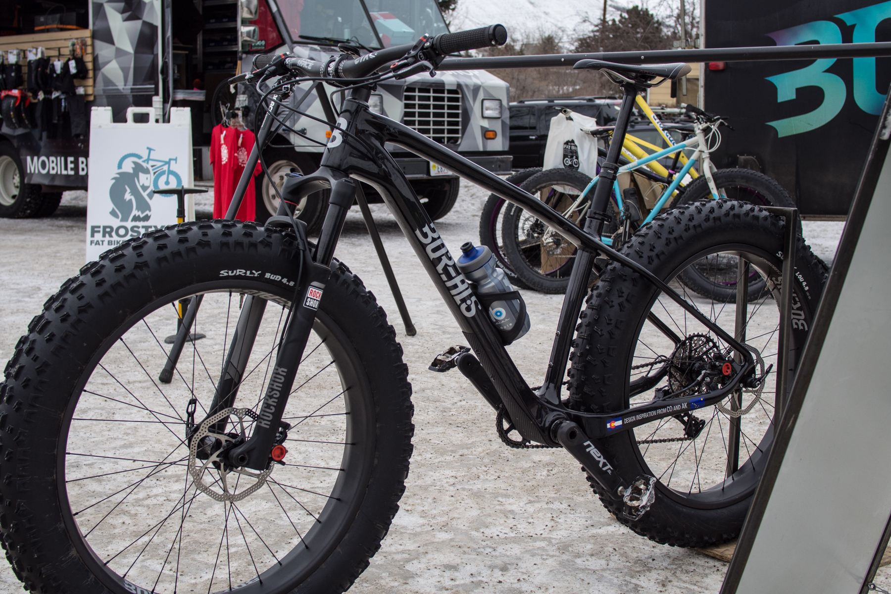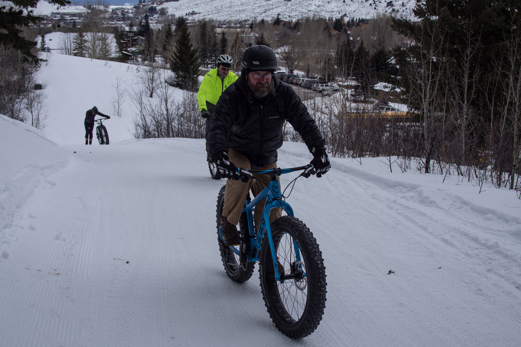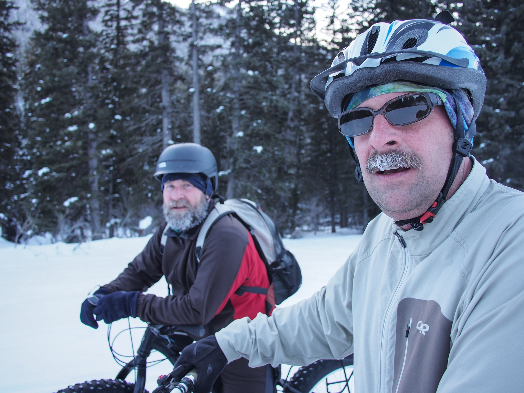 The three of us brothers took a road trip up to Jackson, Wyoming this past weekend for the Fat Bike Summit. It’s a five hour drive from where we live in Utah. We had a great weekend riding, drooling over the latest and greatest fatbikes, chatting with fellow fatbikers, and eating too much. We arrived on Friday afternoon, checked into our motel, and promptly changed into our riding clothes. We drove over to Snow King Resort to get some help finding some trails. We ran into our friends from our local bike shop, Mad Dog Cycles, who were also a sponsor for the event. We were directed to Cache Creek. From Snow King we had to ride about two miles of iced over roads, which were pretty sketchy. We then rode up Cache Creek Canyon on groomed track. We shared the trail with cross country skiers, people walking their dogs, and other fatbikers. The trail was hard and firm. We rode to the end of the groomed portion then on up a narrower snowmobile track. It was quite cold, 16 degrees down in town, so probably a bit colder up the canyon. The ride down was fast and fun, though pretty chilly. It seemed pretty humid as well, which always makes it feel colder.