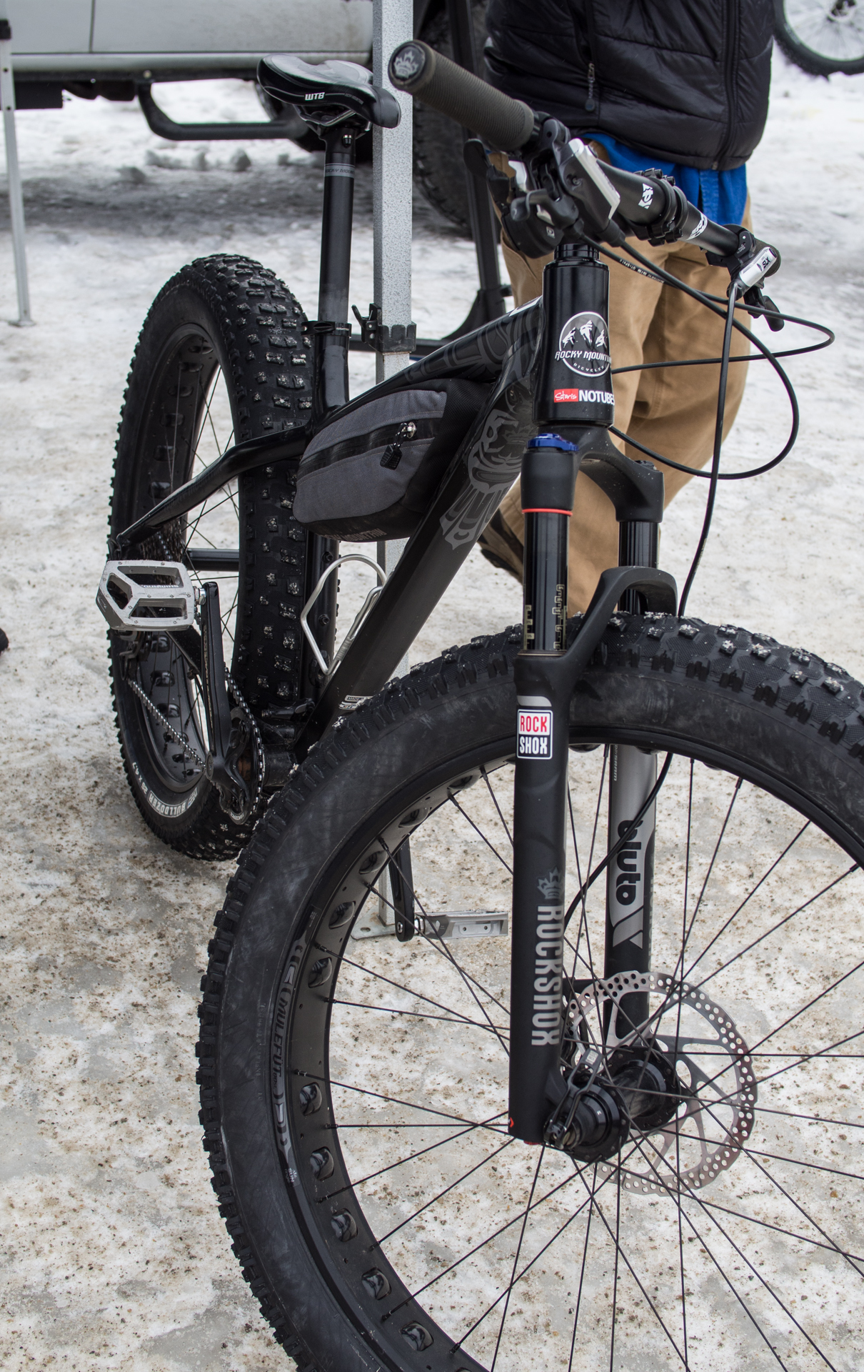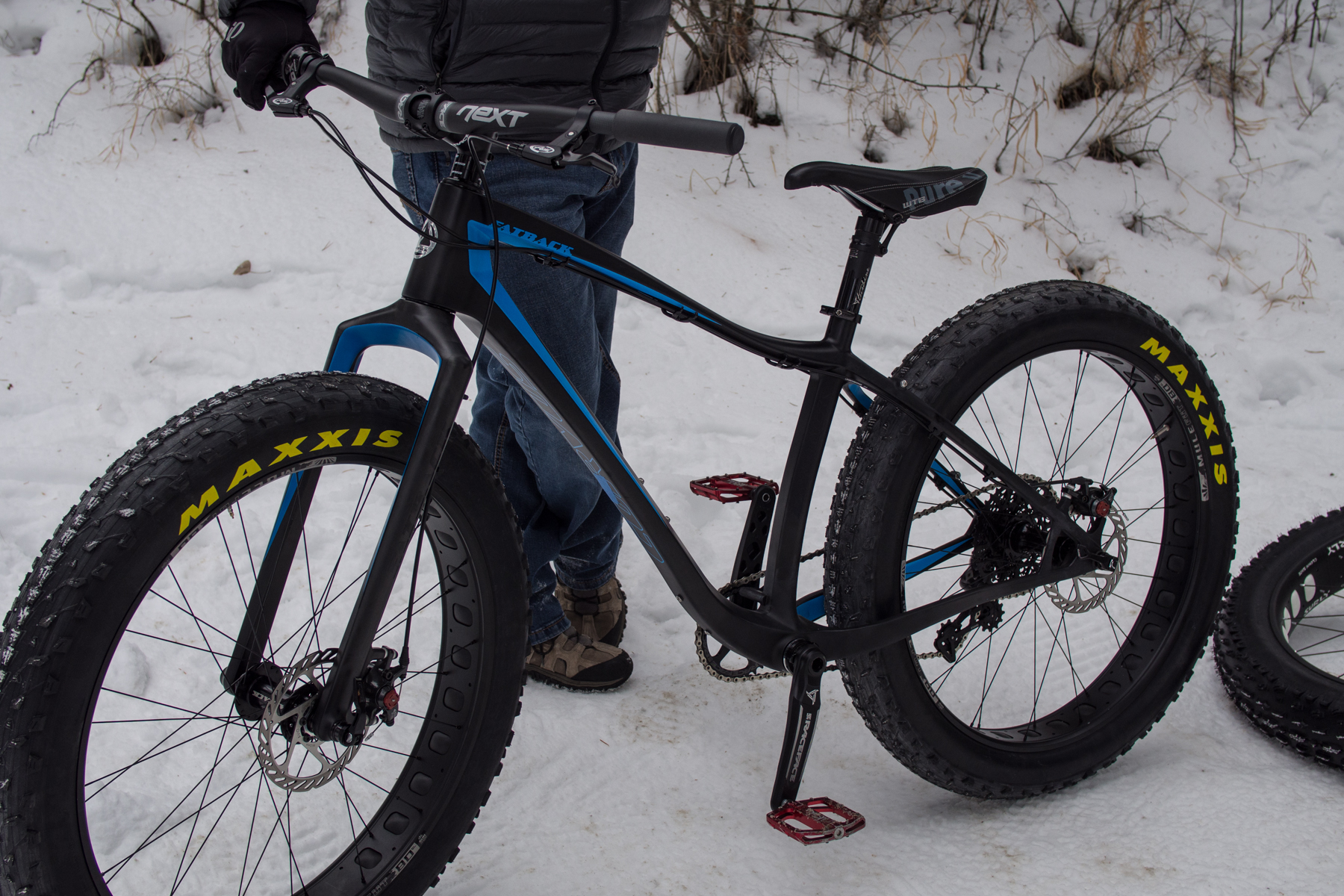 We rode a number of bikes, including a standard Felt, an electric assist Felt, aluminum and carbon Fatbacks, the Specialized Fatboy, Surly Ice Cream Trucks, and a Salsa Blackborow. It was pretty fun riding all these bikes. Doc and I both really like the ICT with it’s five inch Bud and Lou tires. It was also fun zipping around on the Felt electric assist bike as well. Below are some shots of the bikes.