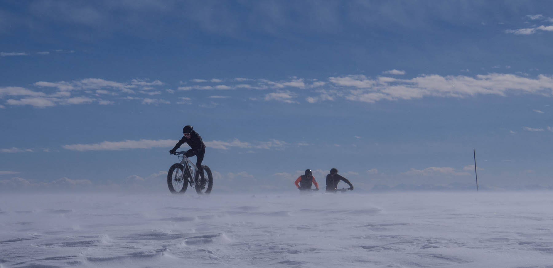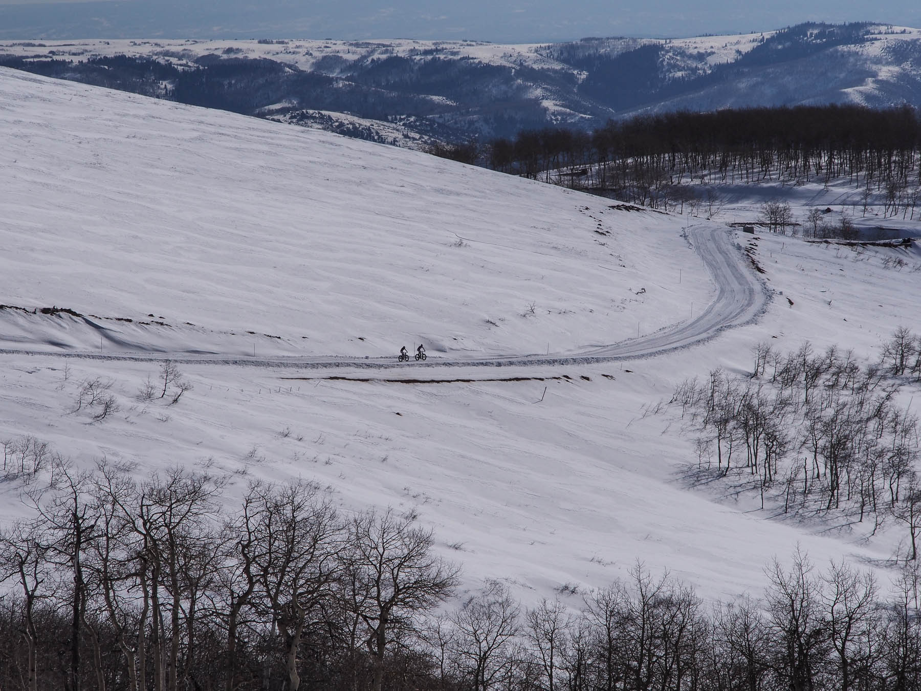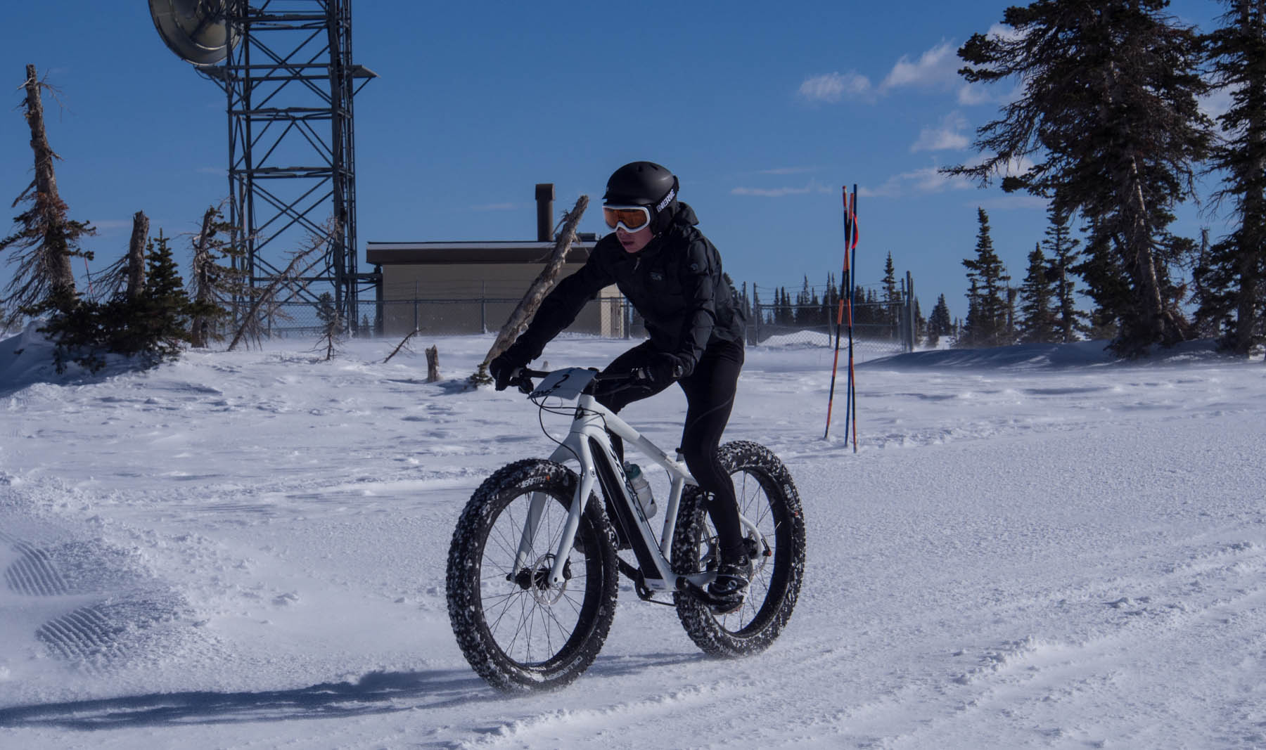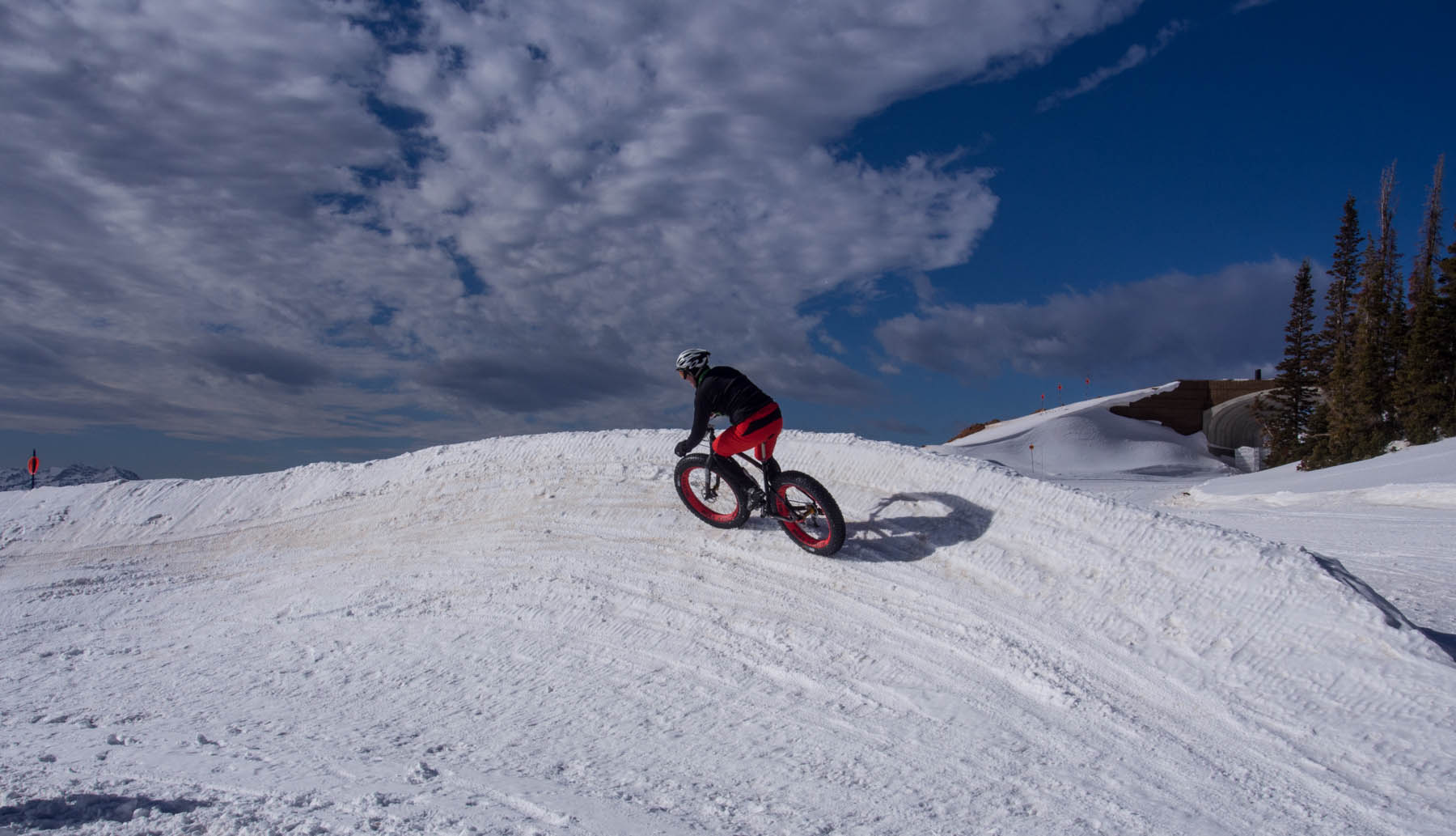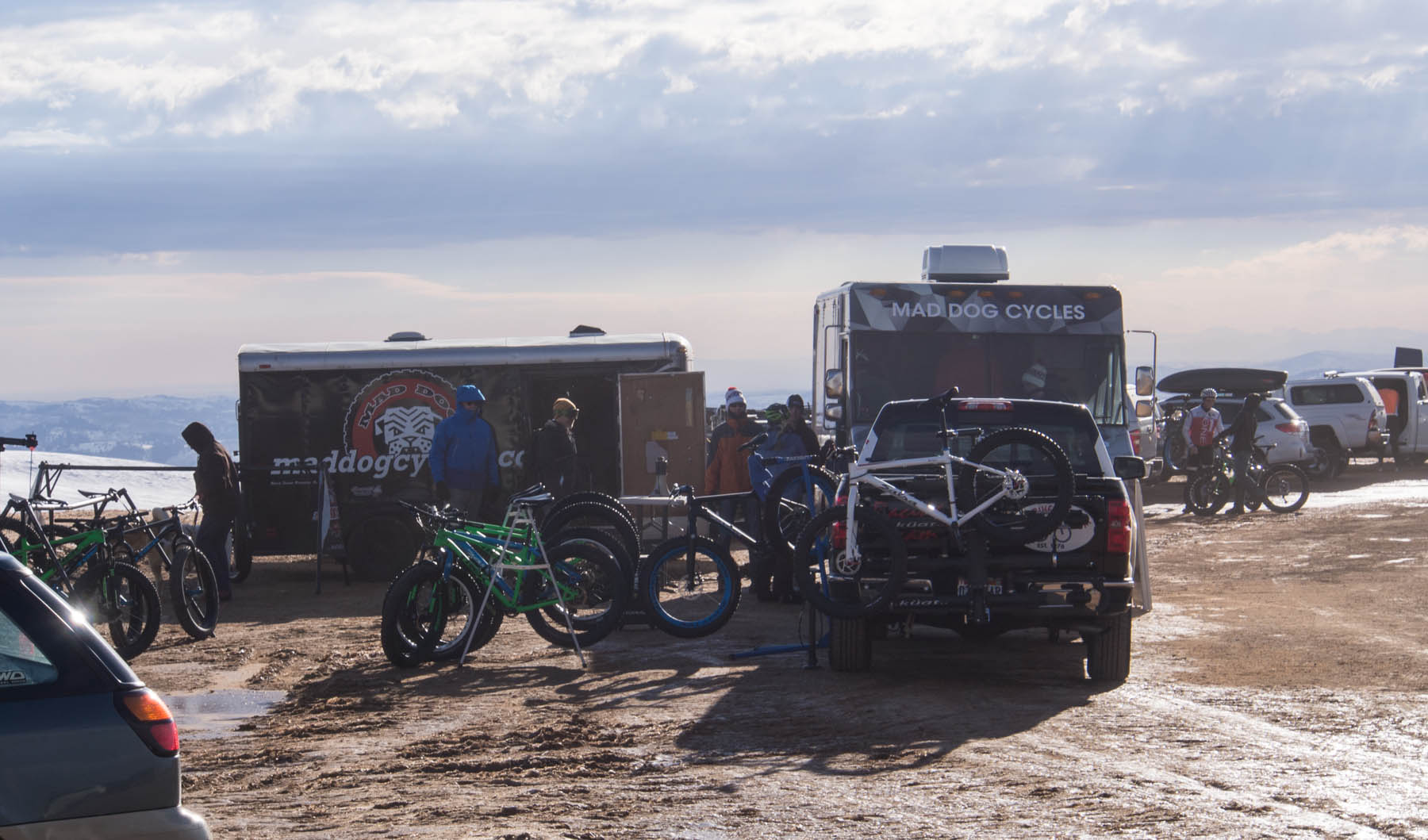 Saturday, February 7, was the date of the fourth race in the Frosty Fat Bike Race Series. The venue was fantastic—Powder Mountain ski resort in Northern Utah. The course was designed and built specifically for fat bikers, with large berms, jumps, and lots of ups and downs. In fact the US Cycling Fat Bike National Championship race will be on this same course tomorrow. It was a six mile course, which proved to be fairly challenging. The wind played into the challenges not only with strong headwinds, but drifting snow across the trail that forced all riders out of the saddle at times. Parts of the course were across open areas and the wind whipping across the landscape looked like something up in the arctic tundra. The A division did three laps for a total of 18 miles, the B’s did two laps, and the C’s did one lap. The competition was ramped up at this race and some of the usual favorites on the podium got a run for their money. The leaders were averaging about 30-32 minute laps.