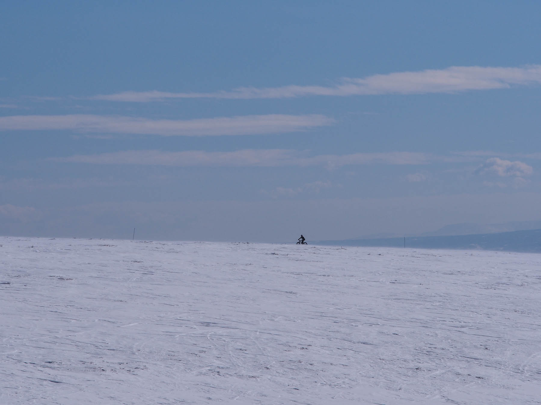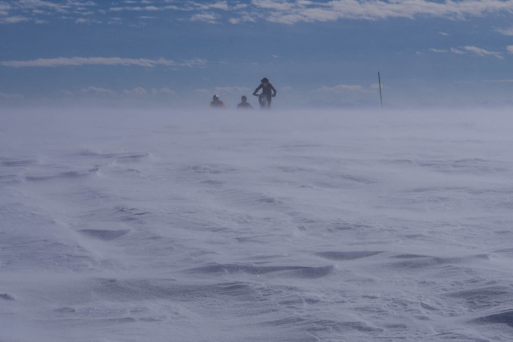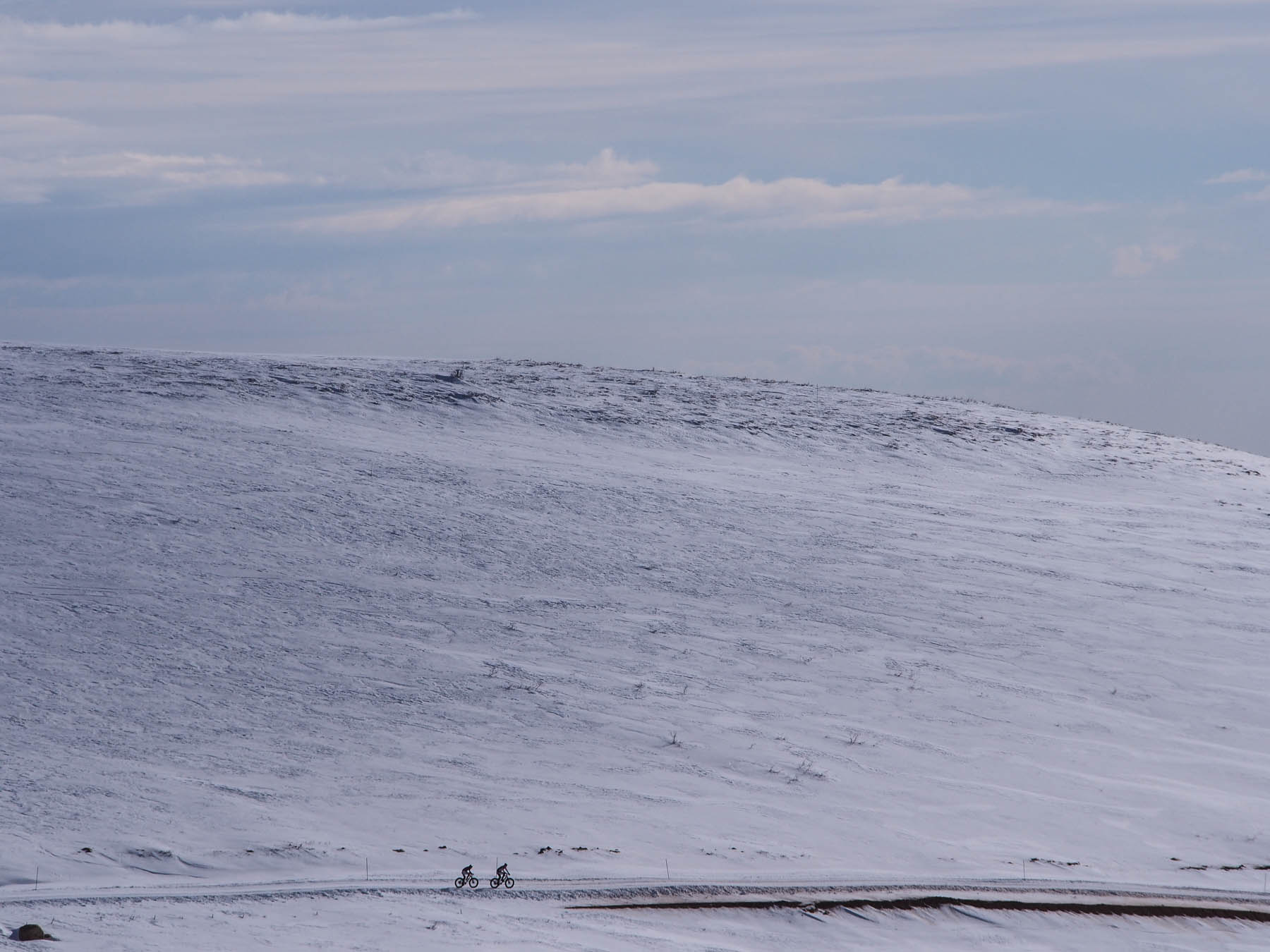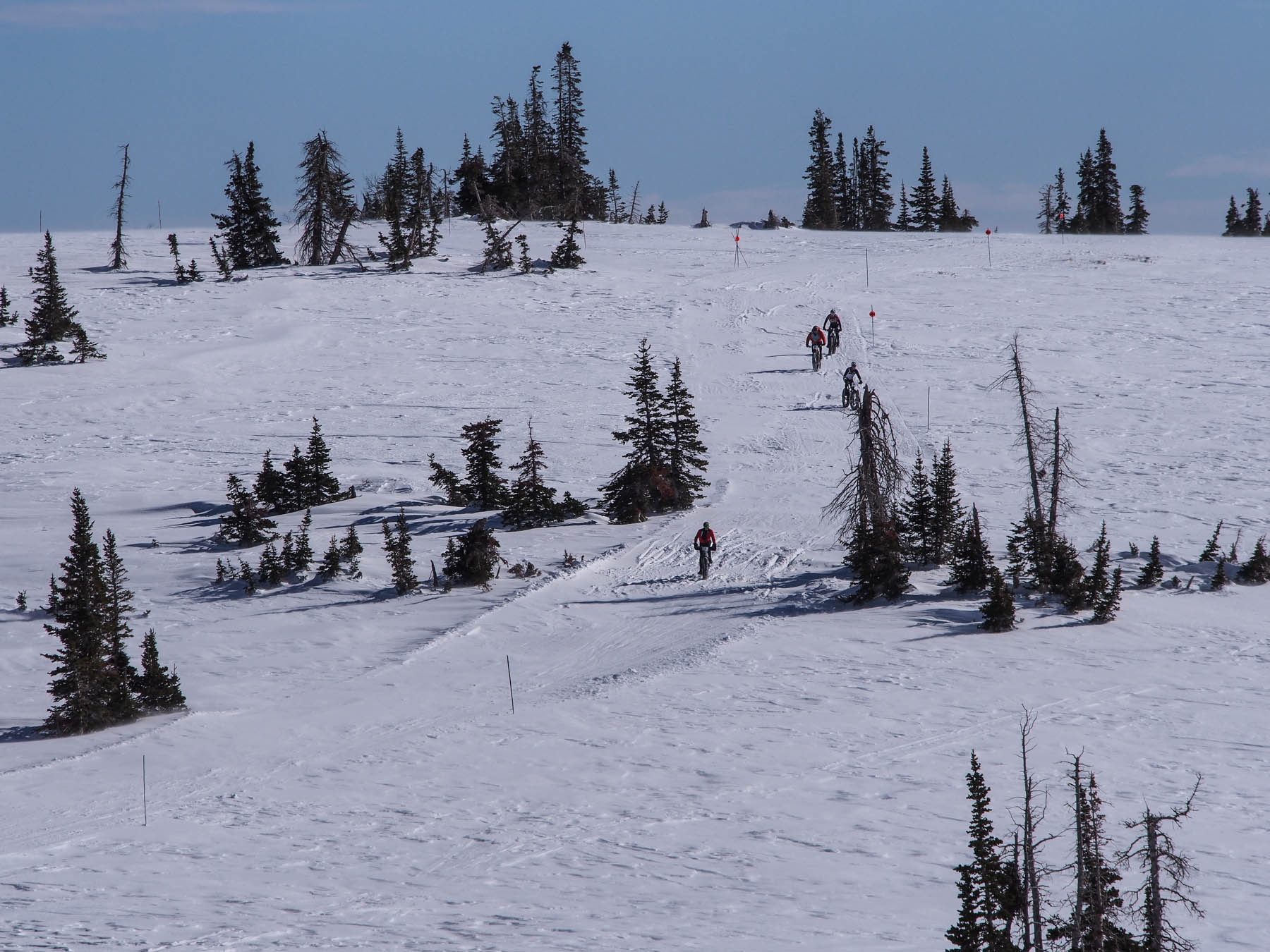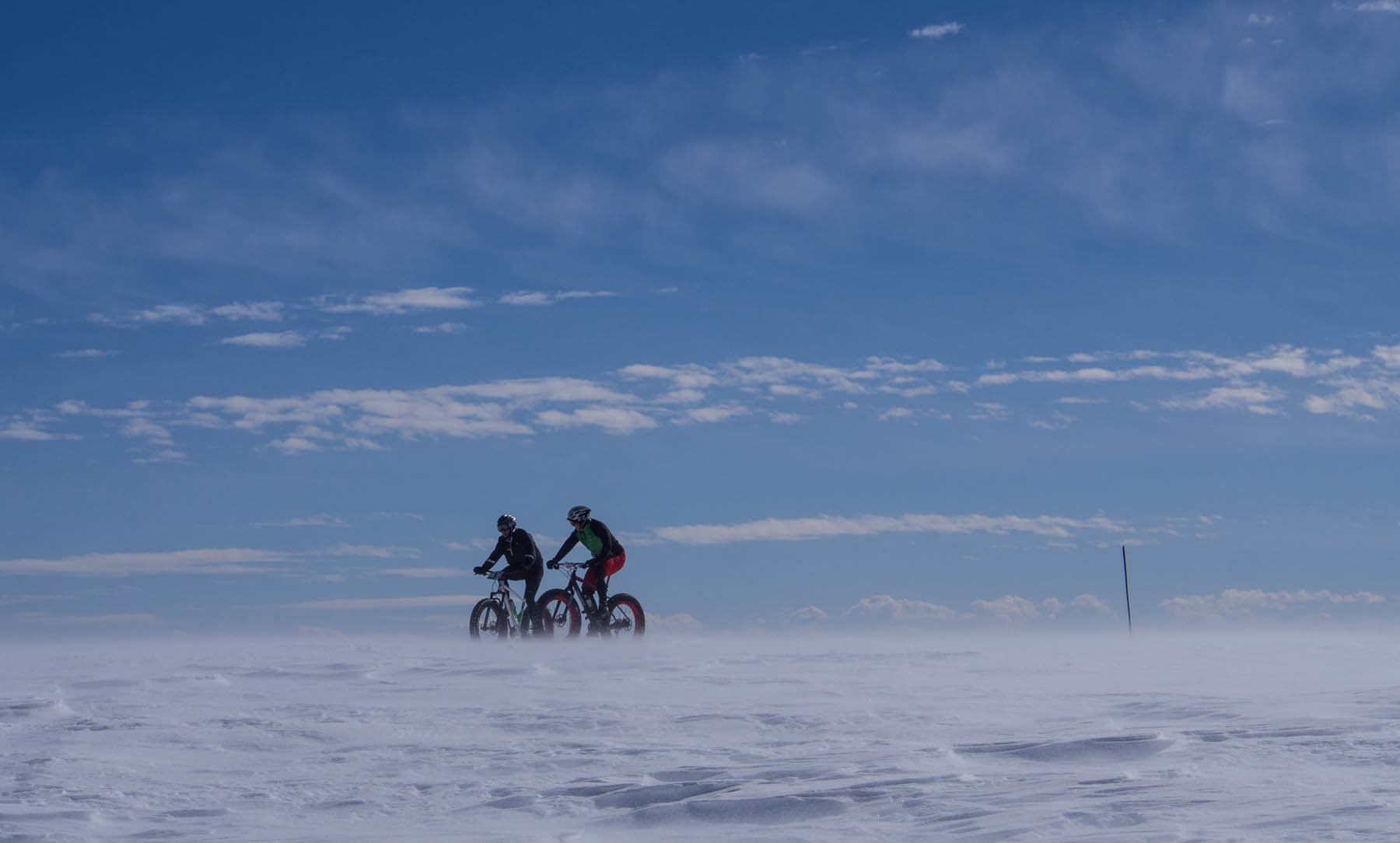 Saturday, February 7, was the date of the fourth race in the Frosty Fat Bike Race Series. The venue was fantastic—Powder Mountain ski resort in Northern Utah. The course was designed and built specifically for fat bikers, with large berms, jumps, and lots of ups and downs. In fact the US Cycling Fat Bike National Championship race will be on this same course tomorrow. It was a six mile course, which proved to be fairly challenging. The wind played into the challenges not only with strong headwinds, but drifting snow across the trail that forced all riders out of the saddle at times. Parts of the course were across open areas and the wind whipping across the landscape looked like something up in the arctic tundra. The A division did three laps for a total of 18 miles, the B’s did two laps, and the C’s did one lap. The competition was ramped up at this race and some of the usual favorites on the podium got a run for their money. The leaders were averaging about 30-32 minute laps.