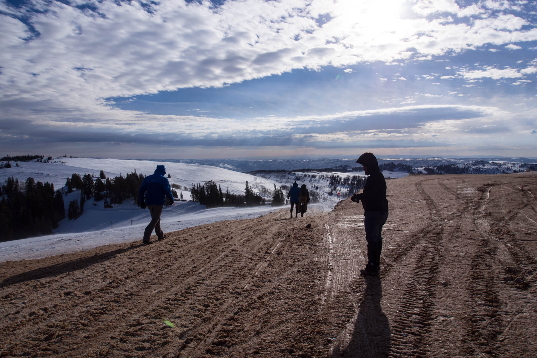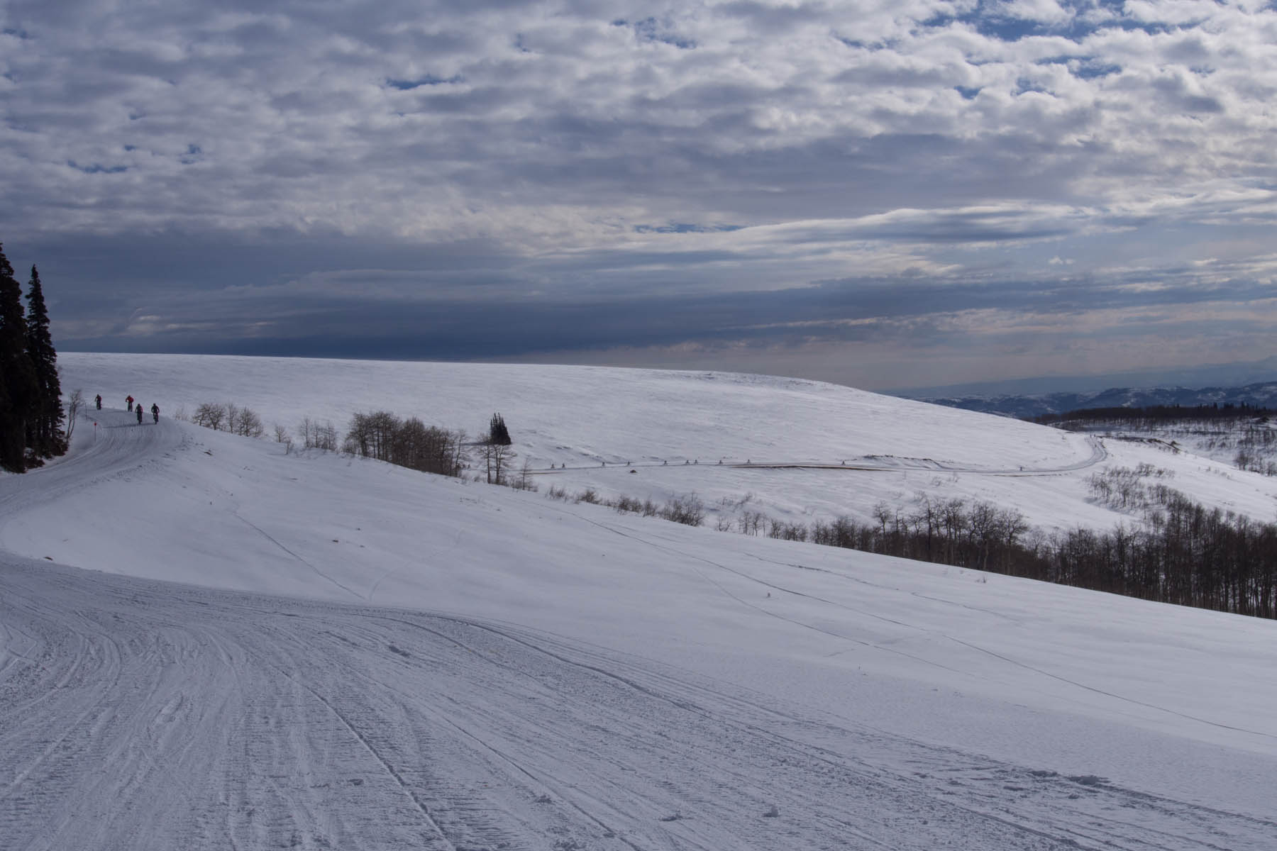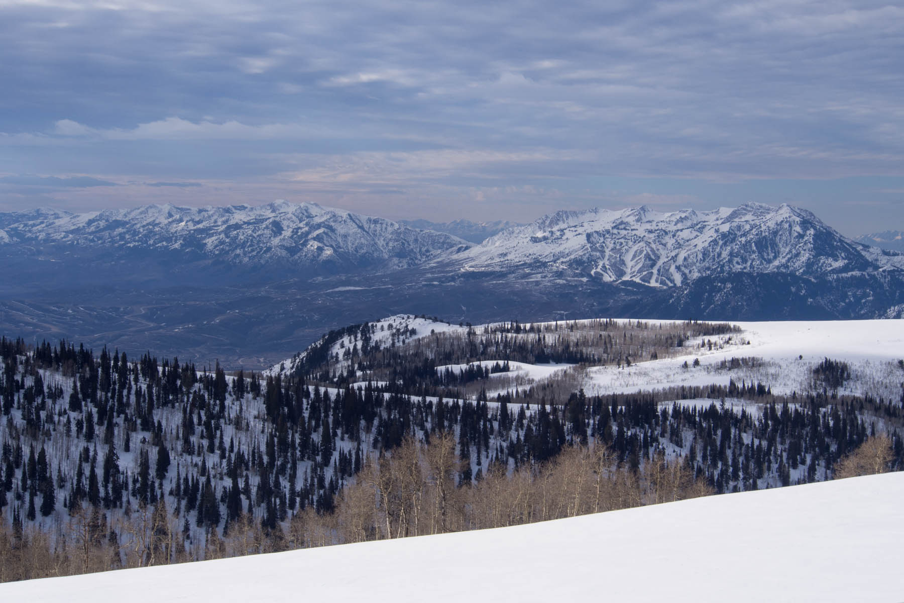 As we were driving across the valley along Pineview Reservoir we were wondering if there was going to be any snow because it was certainly dry. But the road climbs steadily into the mountains for about 15 miles and ends at a dirt parking lot literally at the top of a mountain, where a large ski life terminated. Park, ski down the mountain, take the lift back up to your car. Pretty cool.