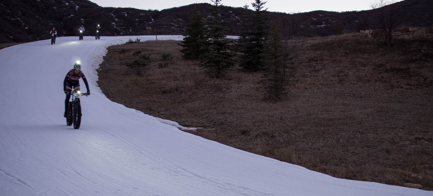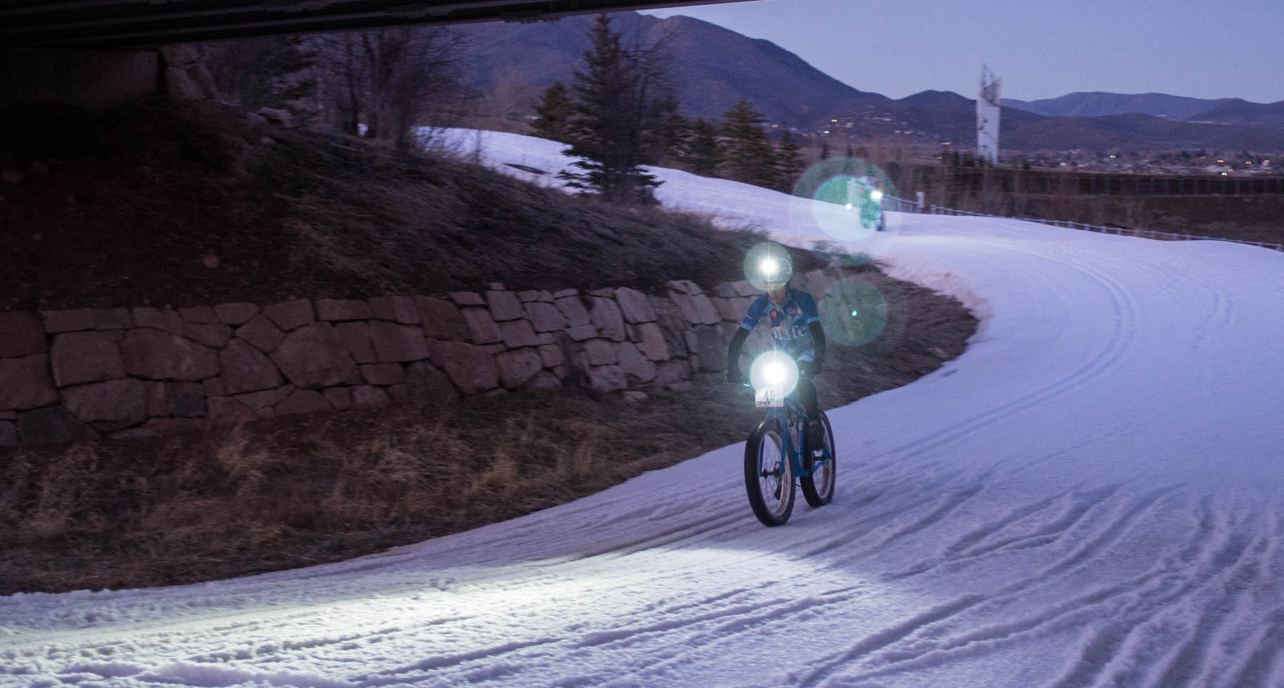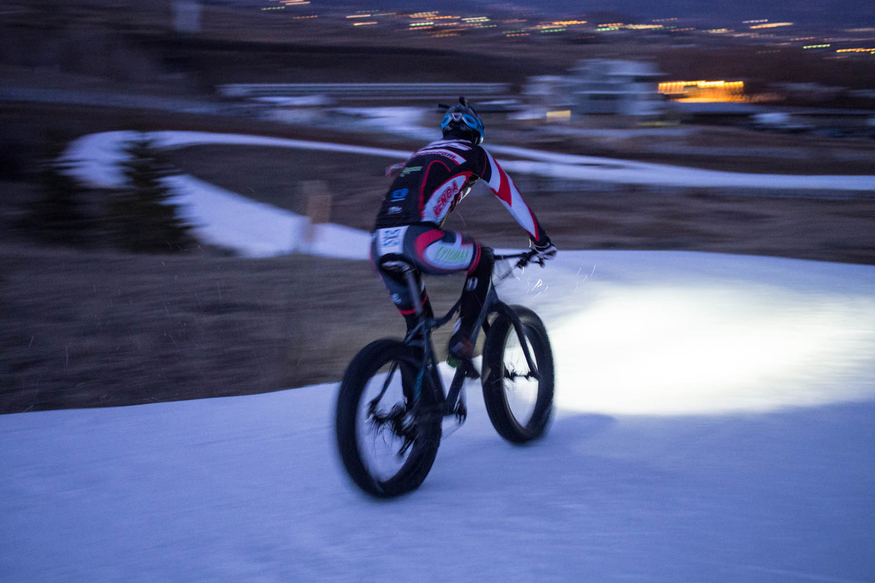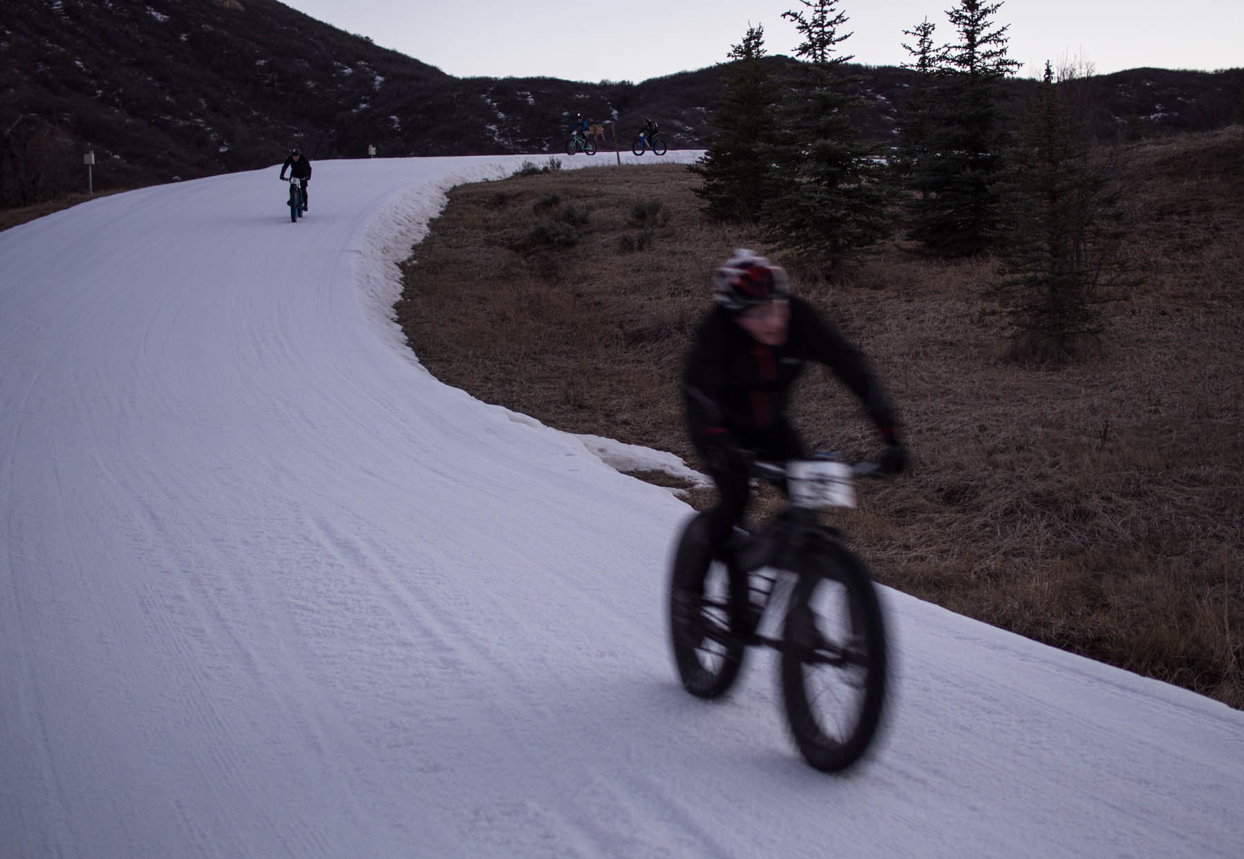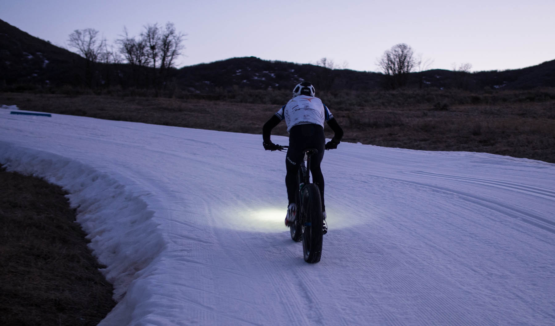 The fifth race in the series was a night race at Soldier Hollow, the 2002 Winter Olympics cross country ski venue. Despite the warm weather we have had, the course was in good shape with plenty of snow cover and it was groomed nicely. In fact, riders that had dirty tires were asked to clean them before riding on the course. It was a fast course with the leaders covering each lap in about 10 minutes. As usual Mad Dog Cycles (http://maddogcycles.com/), the primary race sponsor, was on hand for mechanical support. There was also the usual raffle after the race where lots of bike goodies were given away. The three winners in Division A rode a close race until the end when Charles Jenkins pulled away. Howlin’ Wolfe’s strong kick allowed him to pull away from Geoff Montague for second.