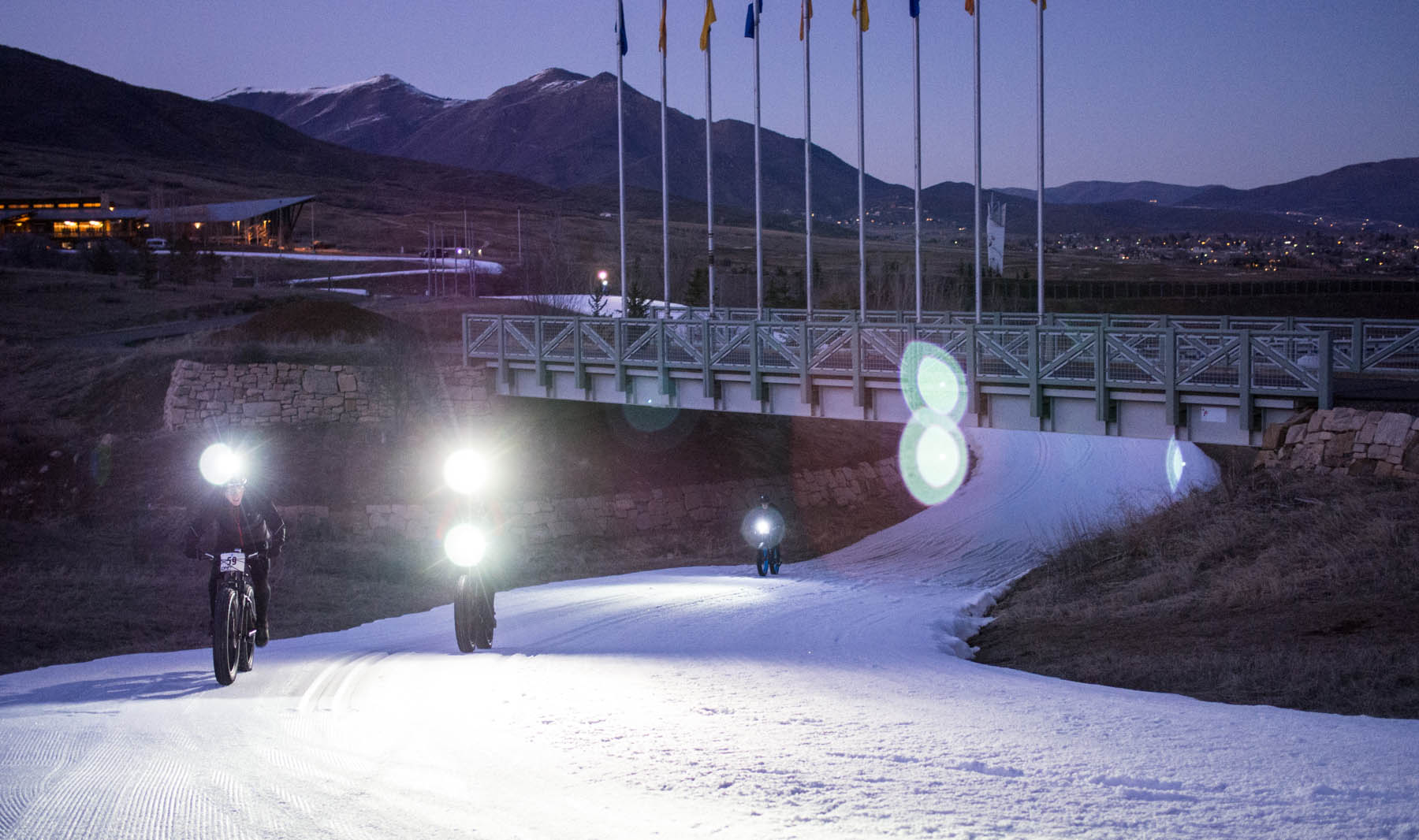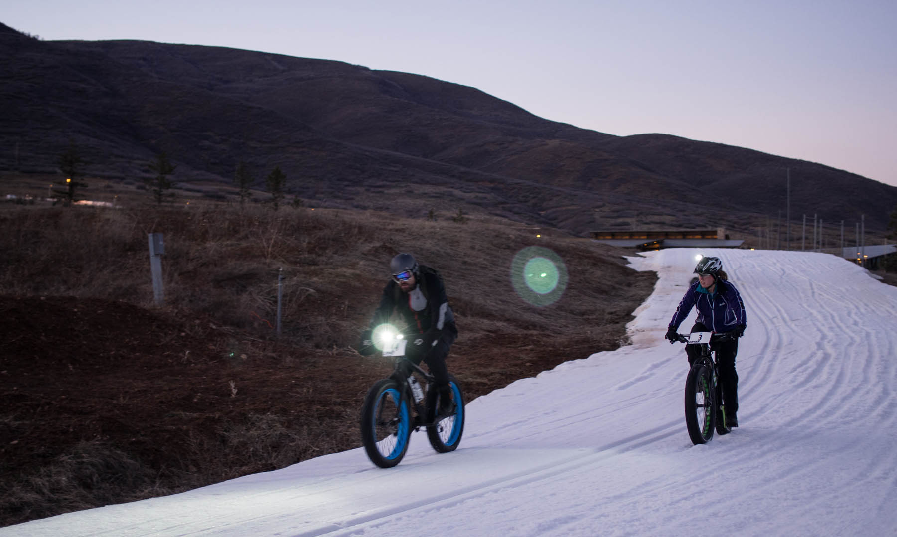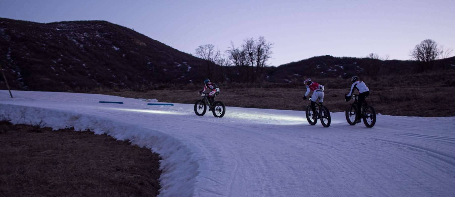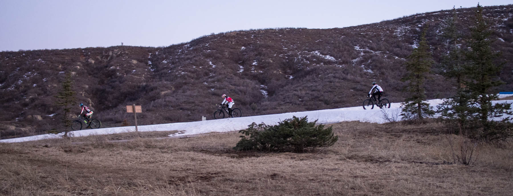 The fifth race in the series was a night race at Soldier Hollow, the 2002 Winter Olympics cross country ski venue. Despite the warm weather we have had, the course was in good shape with plenty of snow cover and it was groomed nicely. In fact, riders that had dirty tires were asked to clean them before riding on the course. It was a fast course with the leaders covering each lap in about 10 minutes. As usual Mad Dog Cycles (http://maddogcycles.com/), the primary race sponsor, was on hand for mechanical support. There was also the usual raffle after the race where lots of bike goodies were given away. The three winners in Division A rode a close race until the end when Charles Jenkins pulled away. Howlin’ Wolfe’s strong kick allowed him to pull away from Geoff Montague for second.