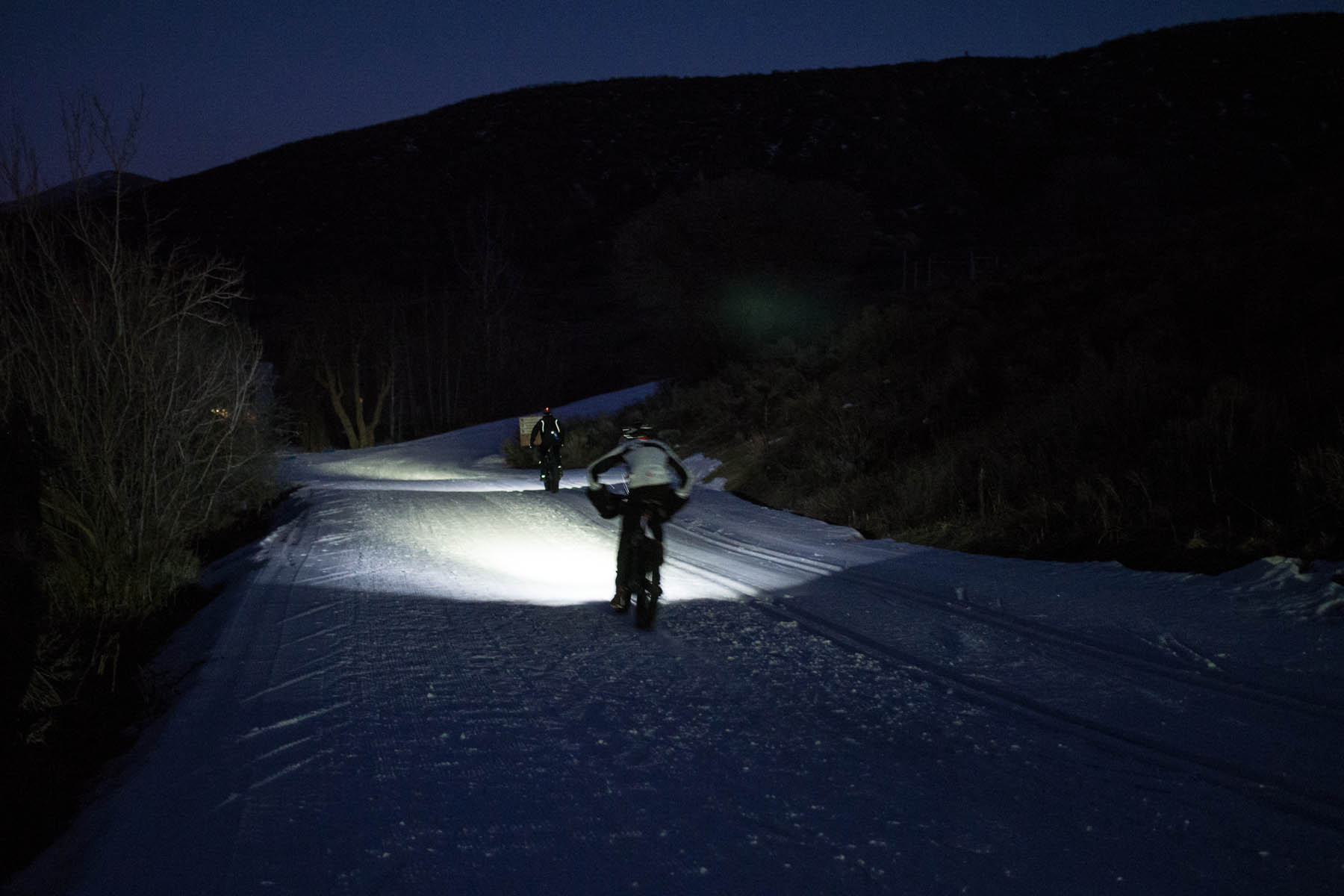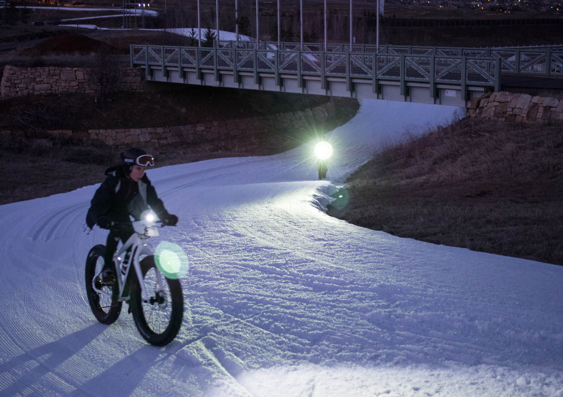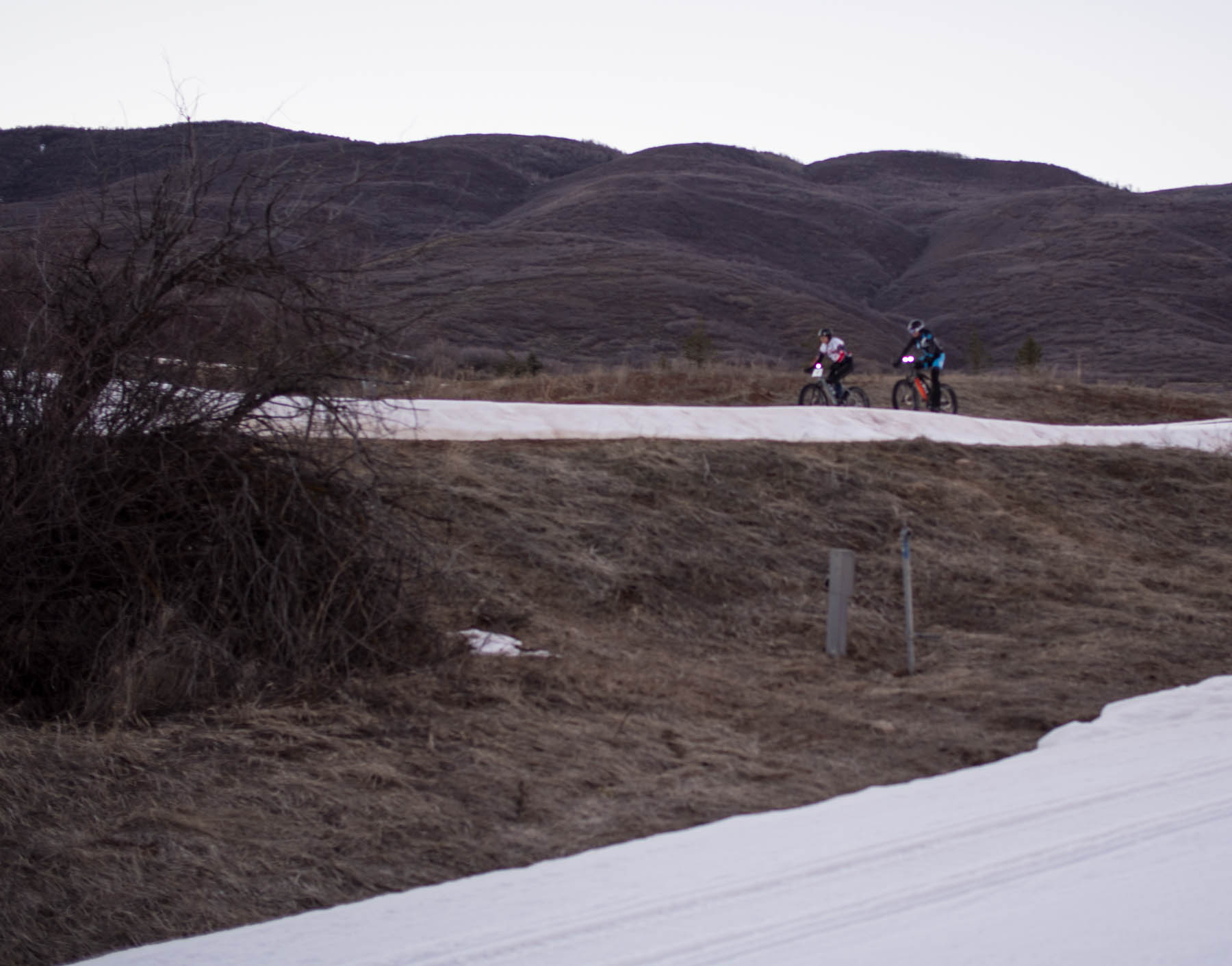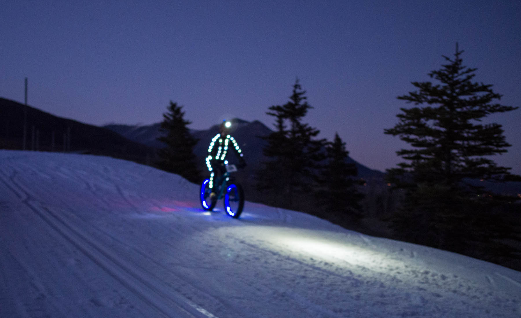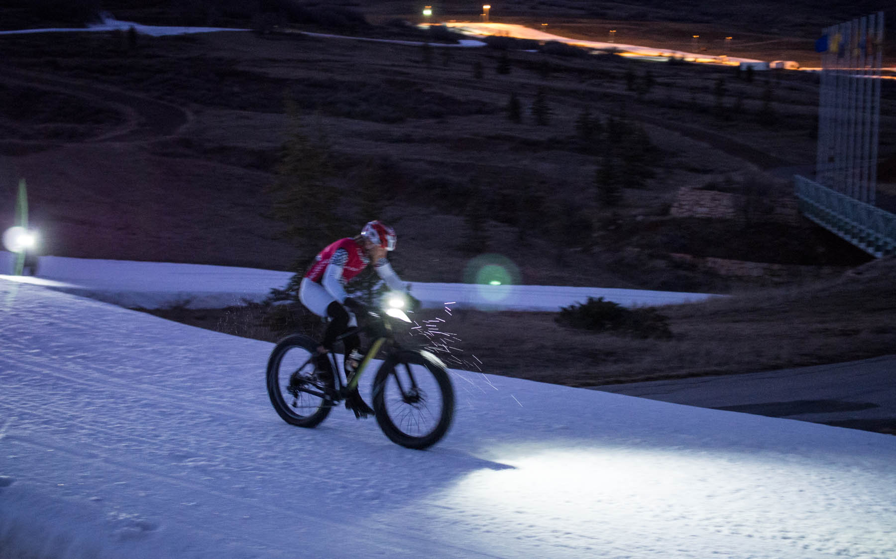 The fifth race in the series was a night race at Soldier Hollow, the 2002 Winter Olympics cross country ski venue. Despite the warm weather we have had, the course was in good shape with plenty of snow cover and it was groomed nicely. In fact, riders that had dirty tires were asked to clean them before riding on the course. It was a fast course with the leaders covering each lap in about 10 minutes. As usual Mad Dog Cycles (http://maddogcycles.com/), the primary race sponsor, was on hand for mechanical support. There was also the usual raffle after the race where lots of bike goodies were given away. The three winners in Division A rode a close race until the end when Charles Jenkins pulled away. Howlin’ Wolfe’s strong kick allowed him to pull away from Geoff Montague for second.