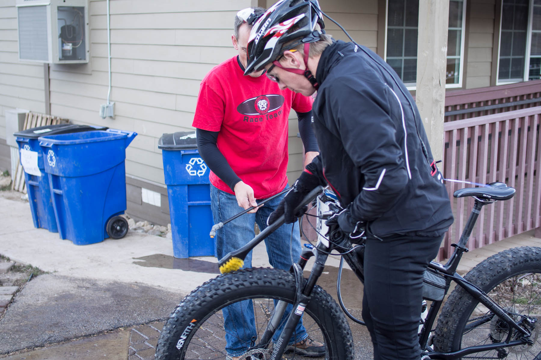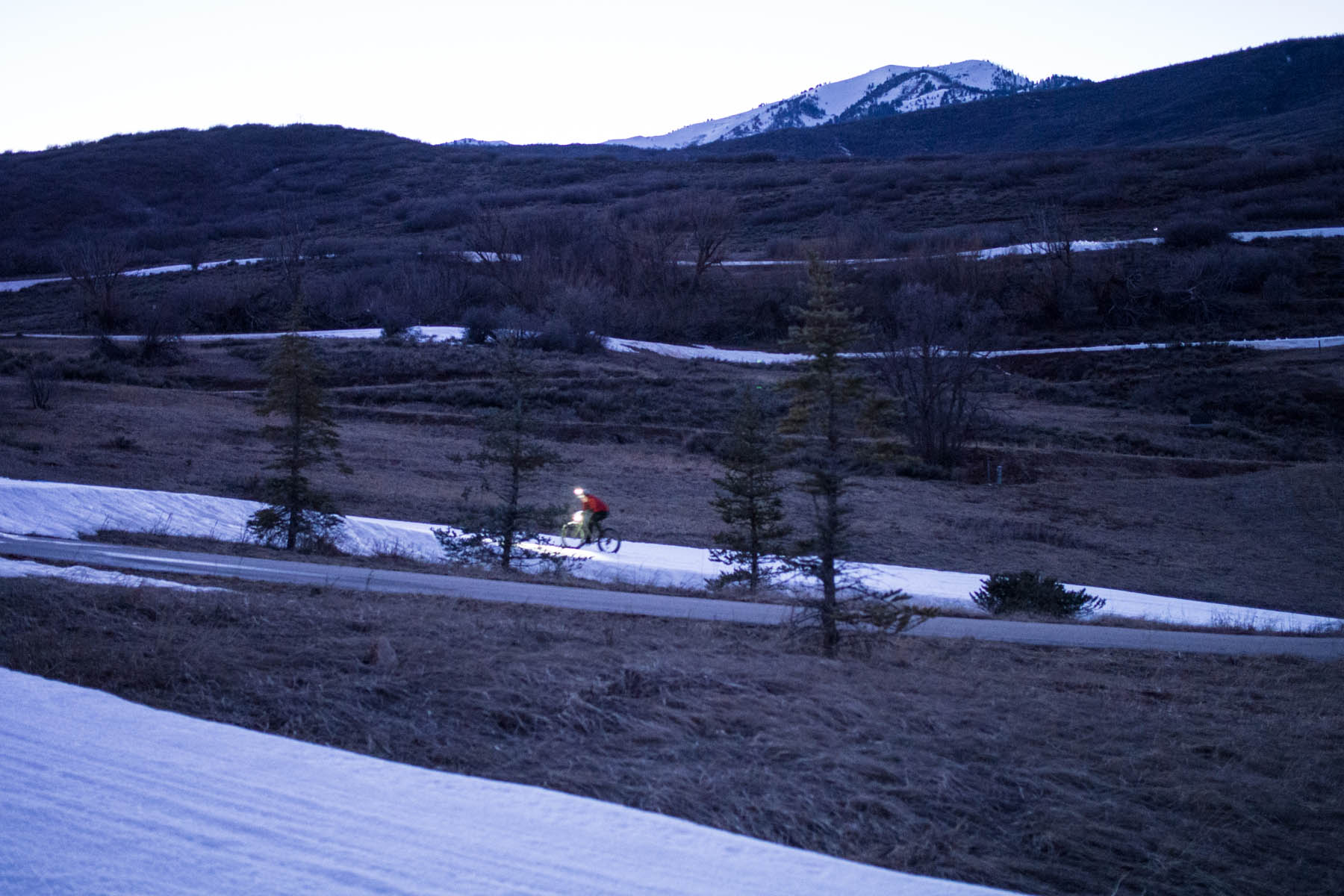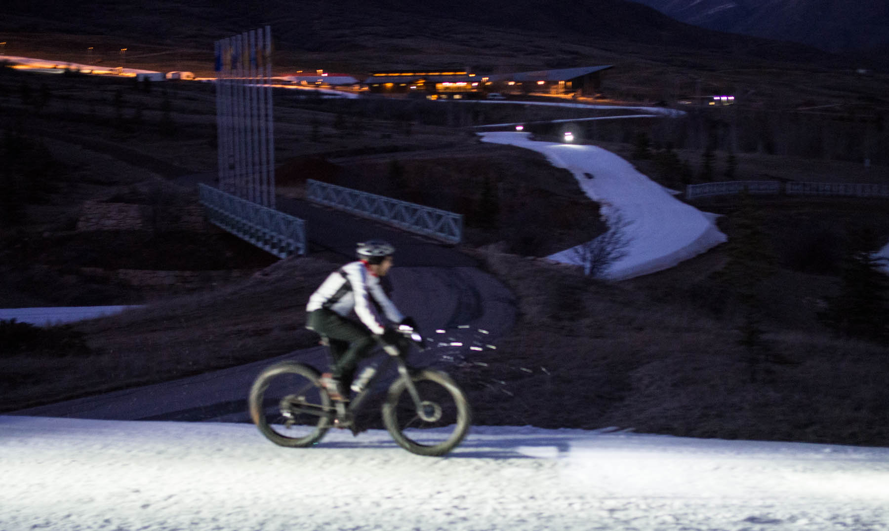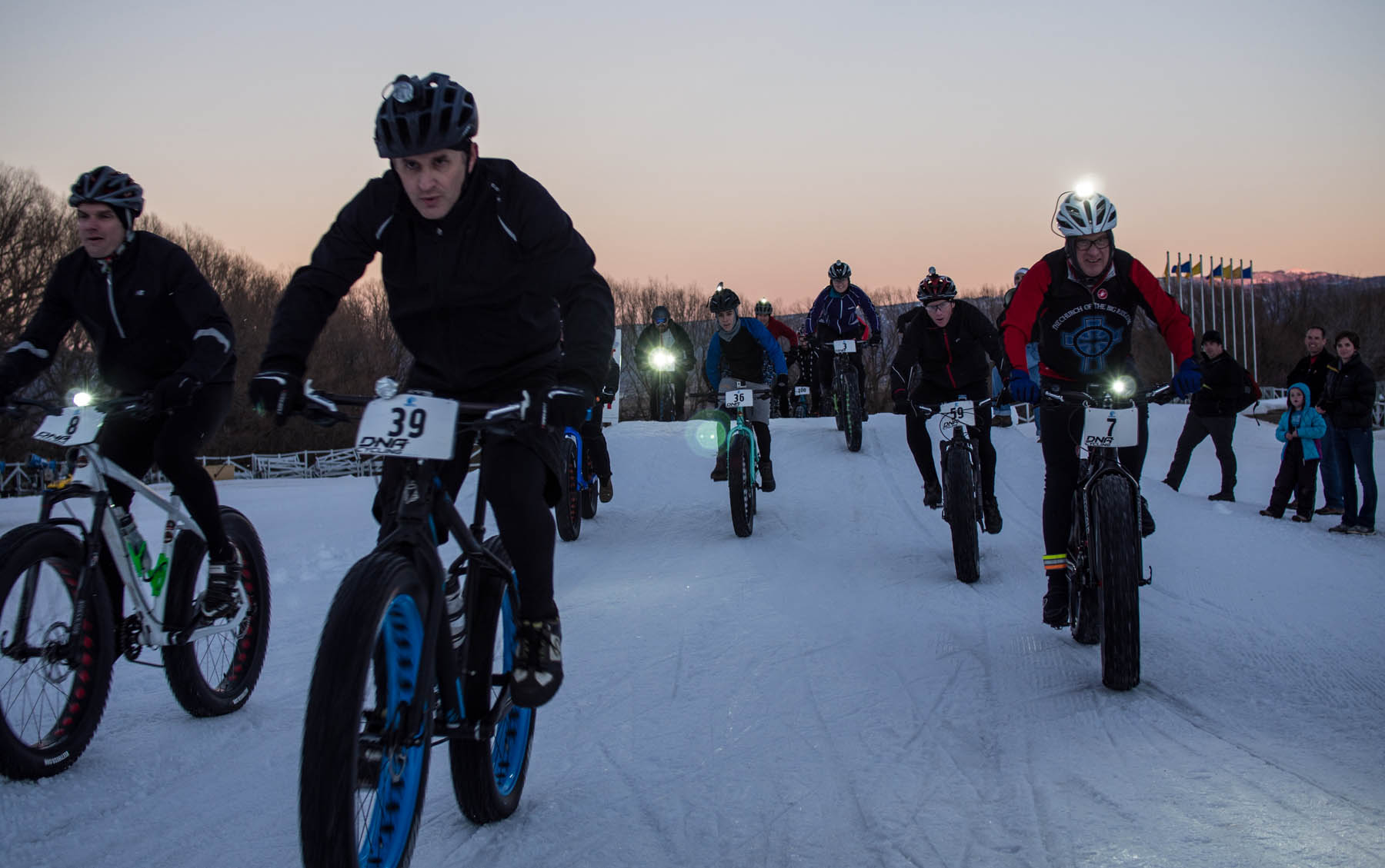 The fifth race in the series was a night race at Soldier Hollow, the 2002 Winter Olympics cross country ski venue. Despite the warm weather we have had, the course was in good shape with plenty of snow cover and it was groomed nicely. In fact, riders that had dirty tires were asked to clean them before riding on the course. It was a fast course with the leaders covering each lap in about 10 minutes. As usual Mad Dog Cycles (http://maddogcycles.com/), the primary race sponsor, was on hand for mechanical support. There was also the usual raffle after the race where lots of bike goodies were given away. The three winners in Division A rode a close race until the end when Charles Jenkins pulled away. Howlin’ Wolfe’s strong kick allowed him to pull away from Geoff Montague for second.