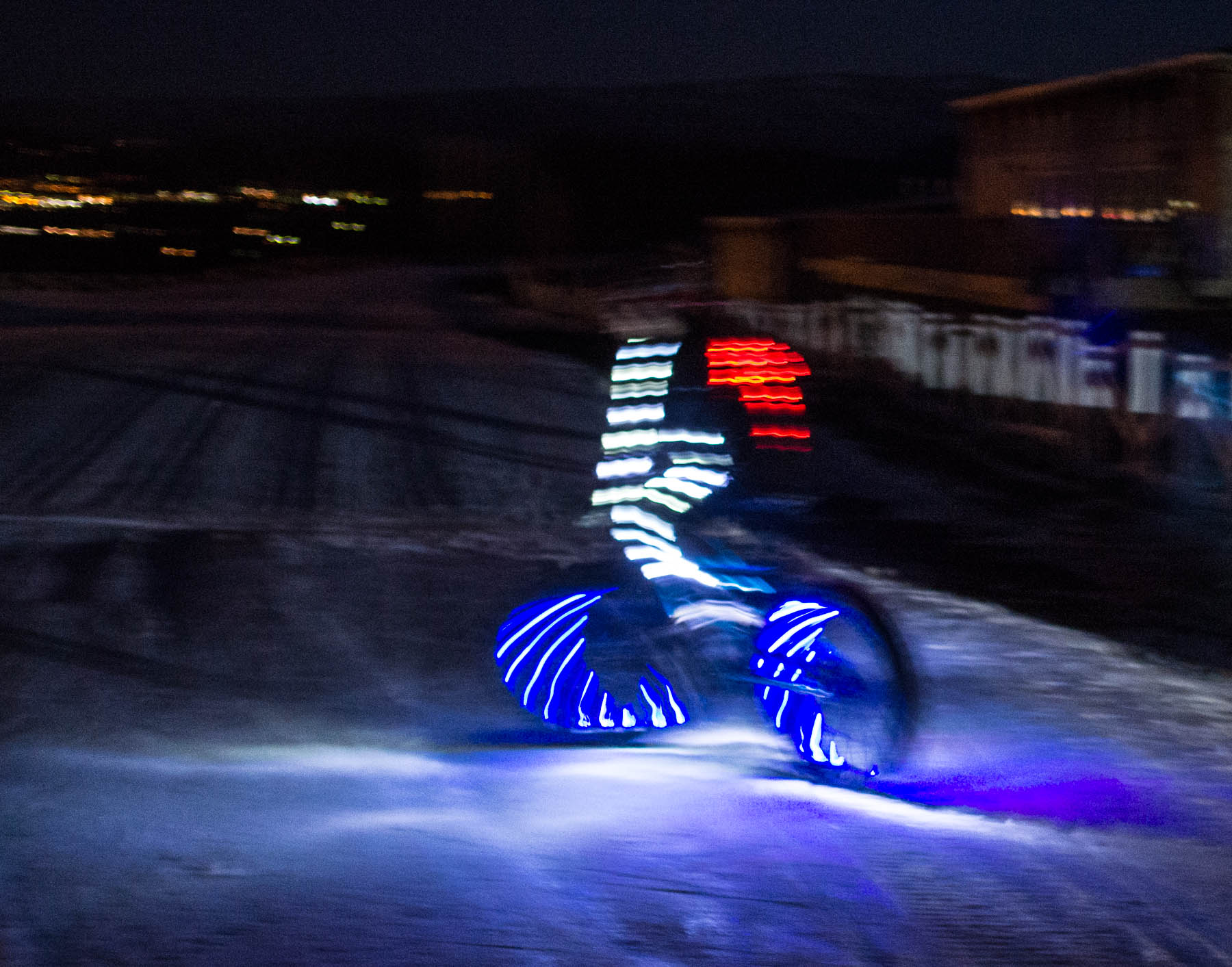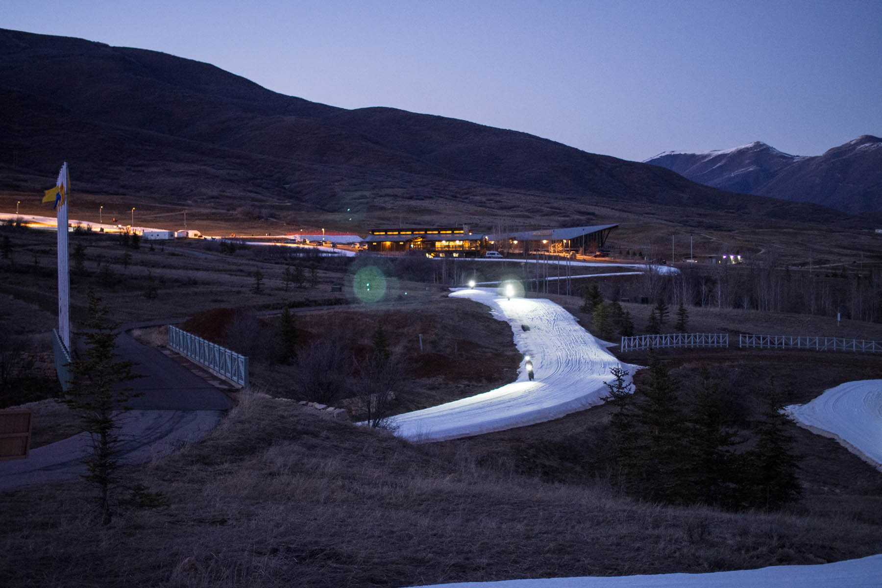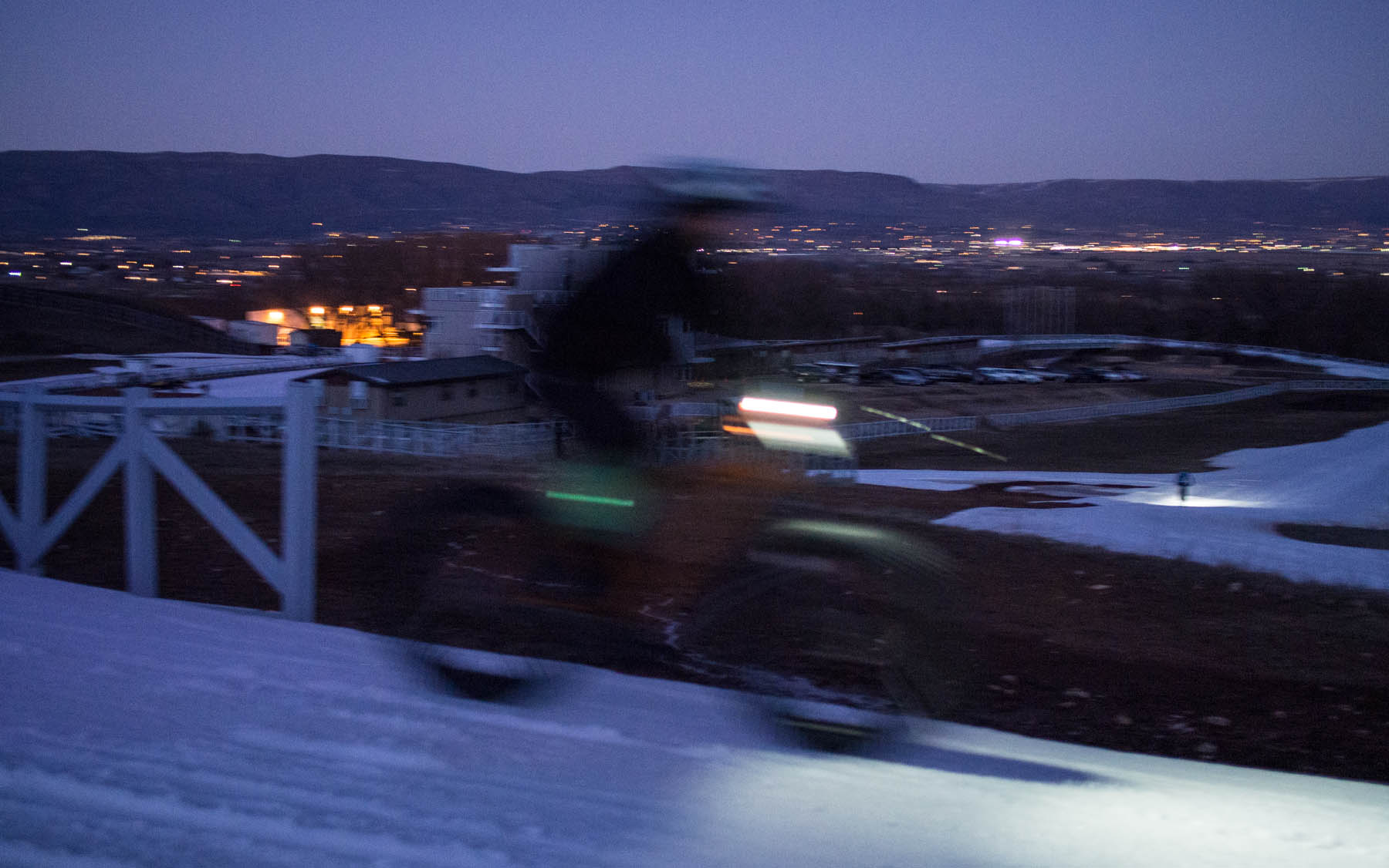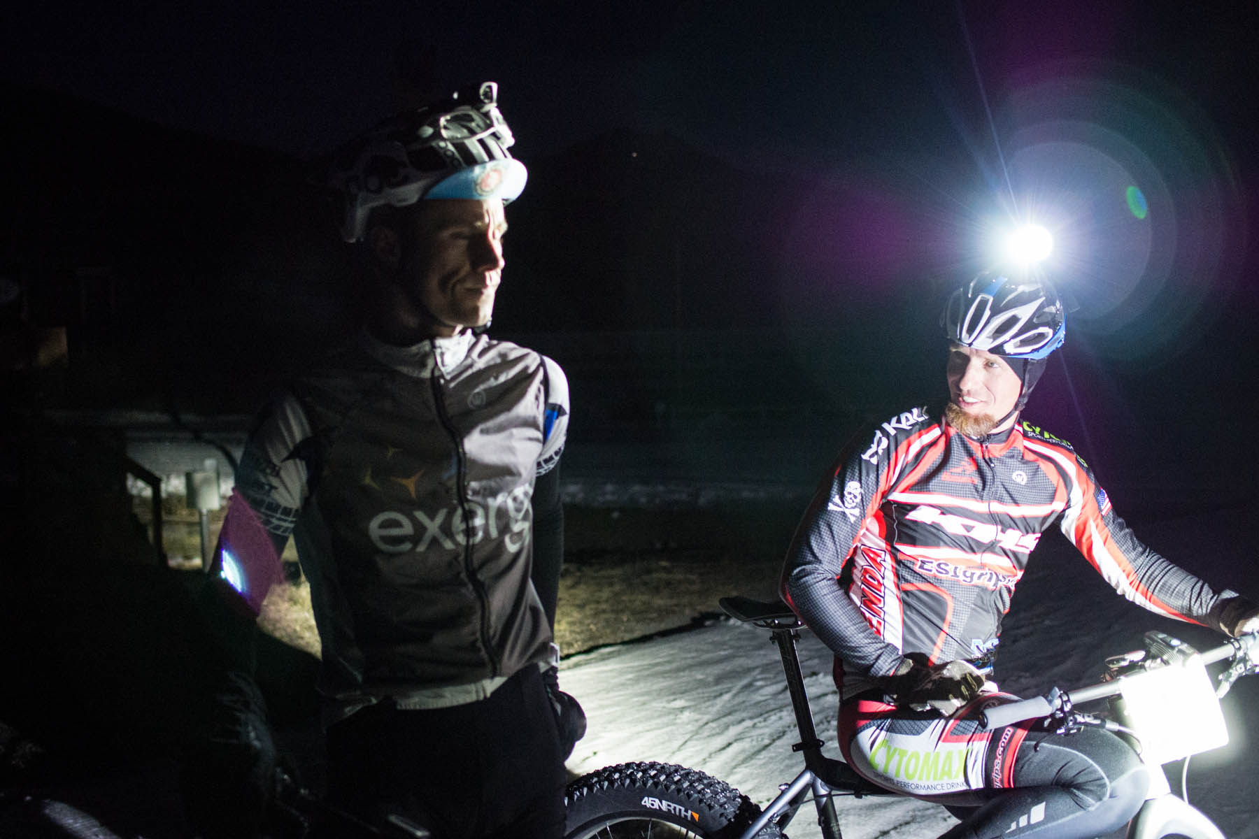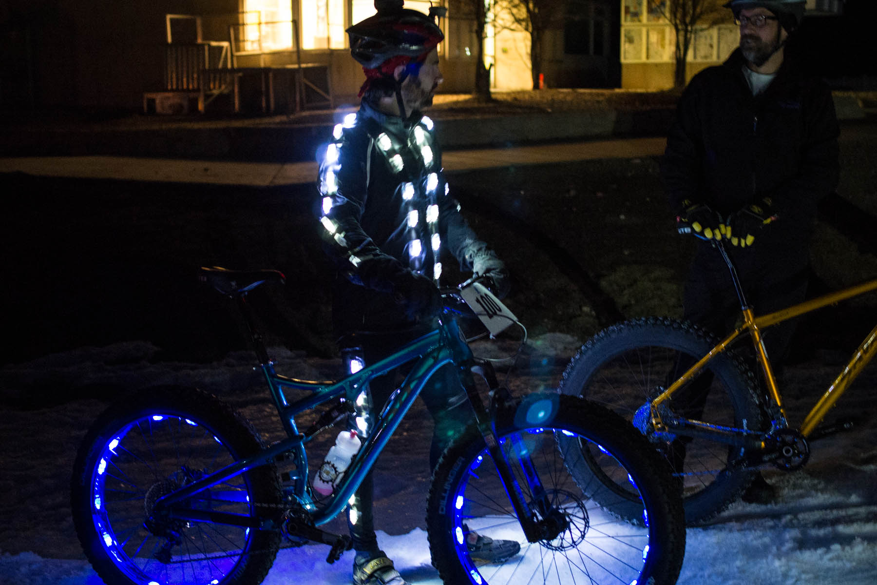 The fifth race in the series was a night race at Soldier Hollow, the 2002 Winter Olympics cross country ski venue. Despite the warm weather we have had, the course was in good shape with plenty of snow cover and it was groomed nicely. In fact, riders that had dirty tires were asked to clean them before riding on the course. It was a fast course with the leaders covering each lap in about 10 minutes. As usual Mad Dog Cycles (http://maddogcycles.com/), the primary race sponsor, was on hand for mechanical support. There was also the usual raffle after the race where lots of bike goodies were given away. The three winners in Division A rode a close race until the end when Charles Jenkins pulled away. Howlin’ Wolfe’s strong kick allowed him to pull away from Geoff Montague for second.