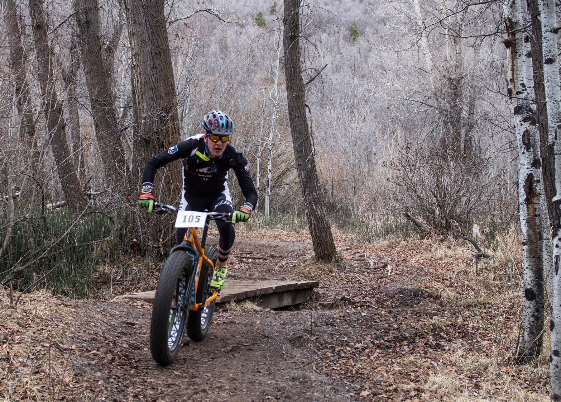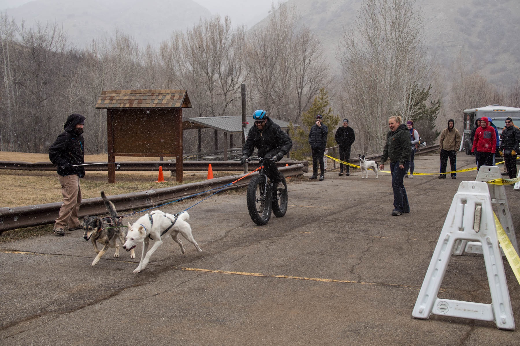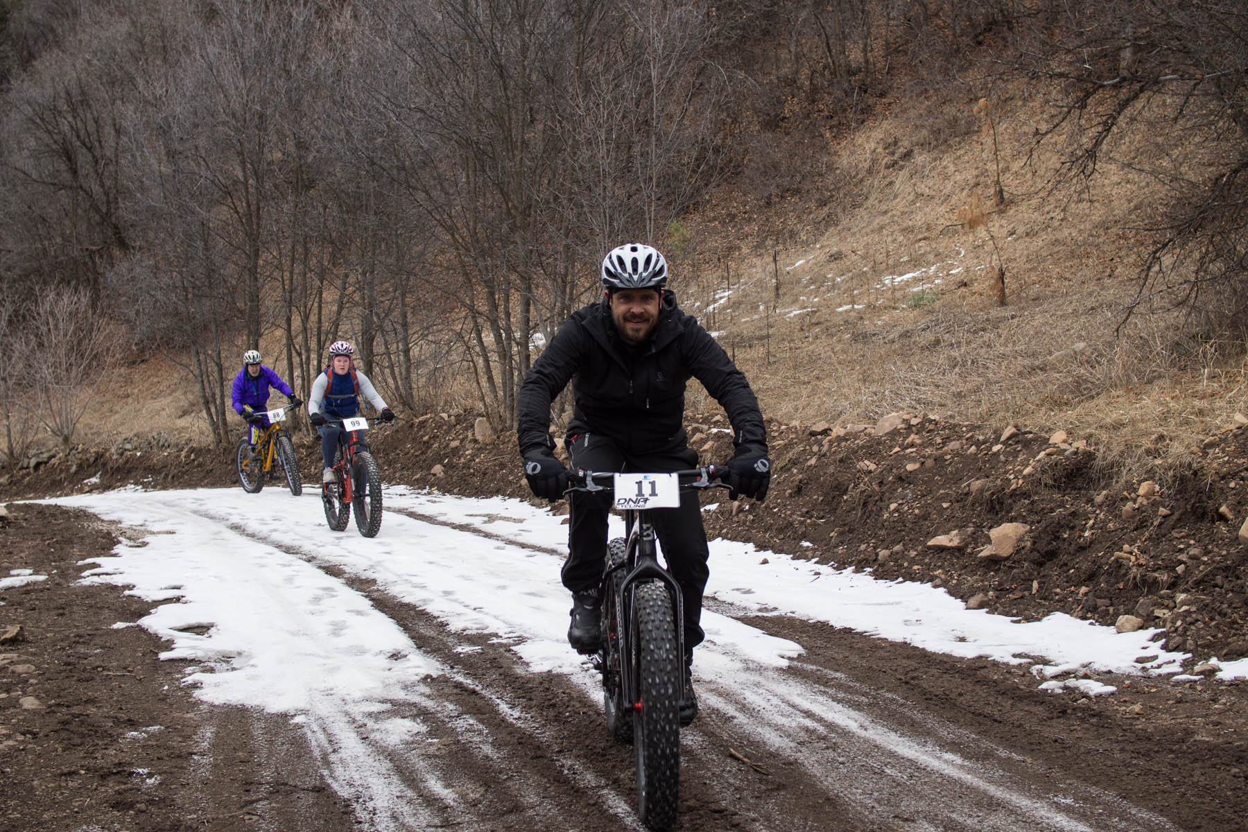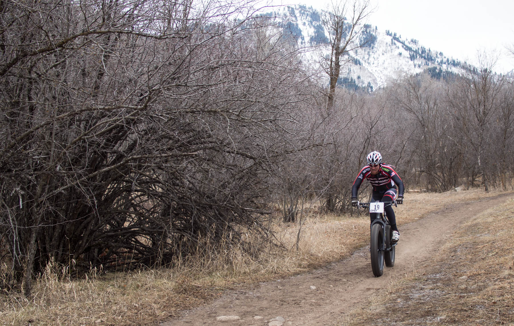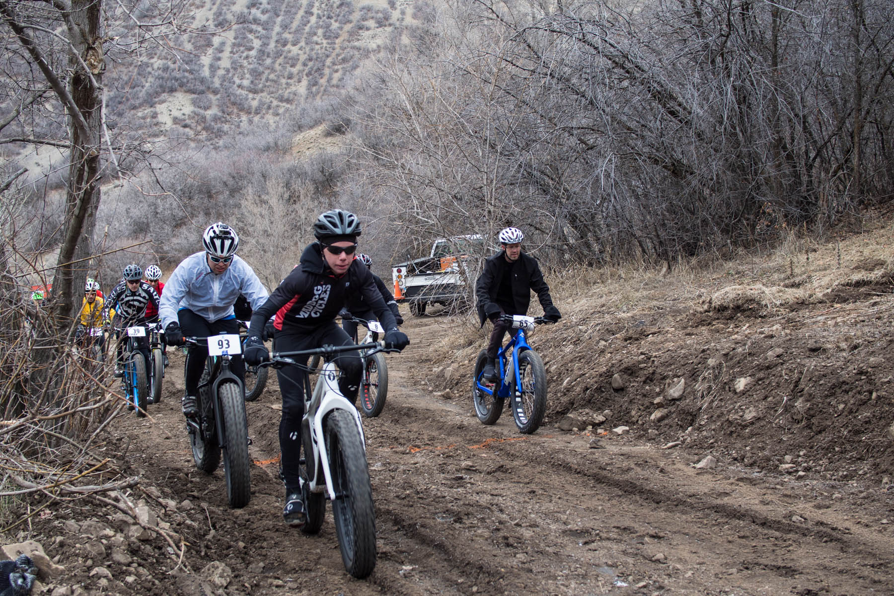 Saturday, February 28, was the last race in the Frosty Fat Bike Series. The lack of snow did not dampen the enthusiasm though. Provo City was a sponsor and there was a mini Winter Festival as well. A couple food trucks showed up, there was a dog sled team, an avalanche awareness presentation, and a wilderness first aid presentation. Mad Dog Cycles was there of course, and there were lots of goodies for the raffle. Since this was the final race in the series, the overall points leaders were recognized at the end. The course was relatively short and fast, up the fire road and down the singletrack; 5 laps for the A’s, 4 laps for the B’s and 3 laps for the C’s. Scroll down for the winners. First, the video, then the photos. Check out my Flickr photography page  (link below) for lots more photos.