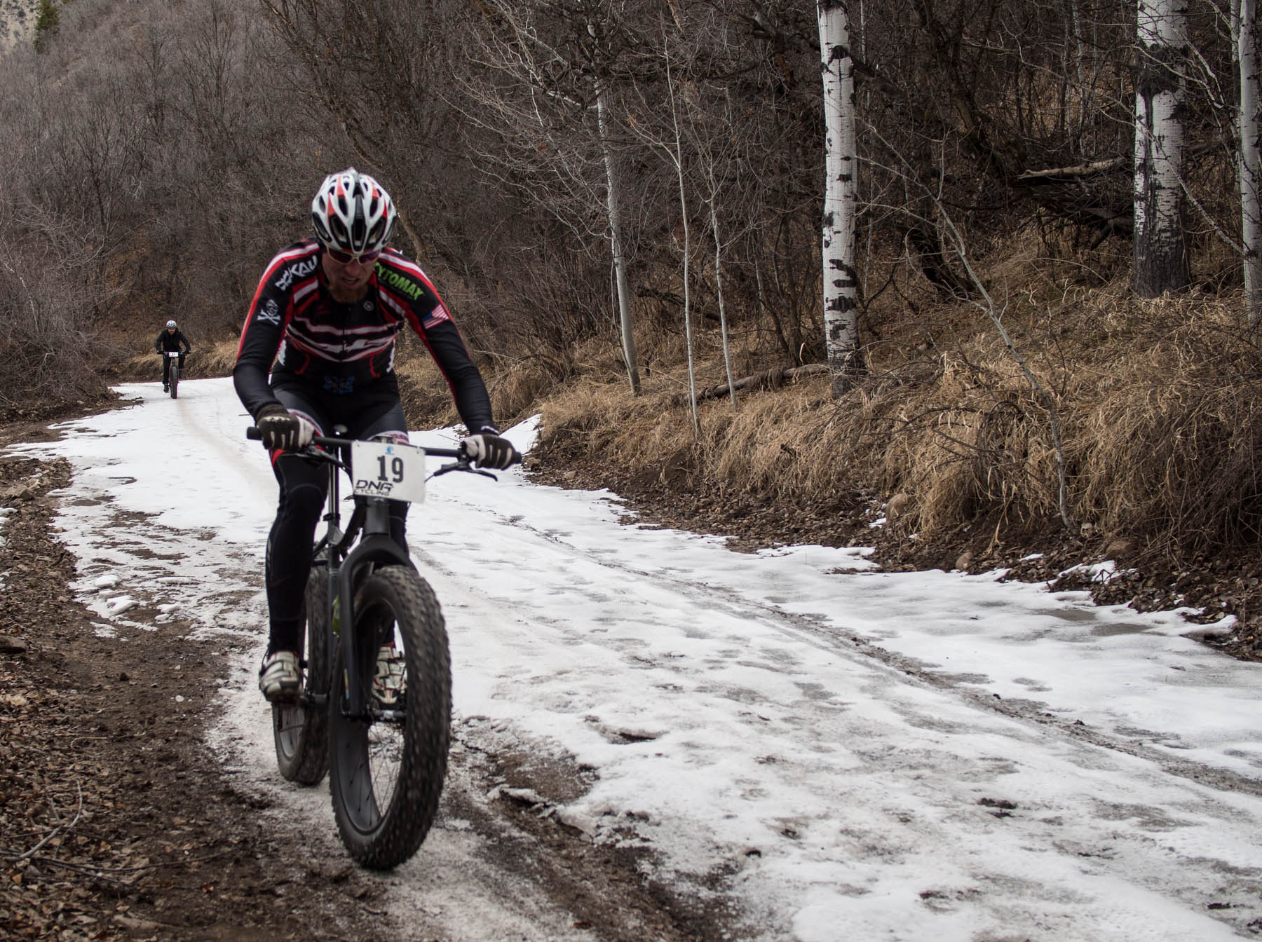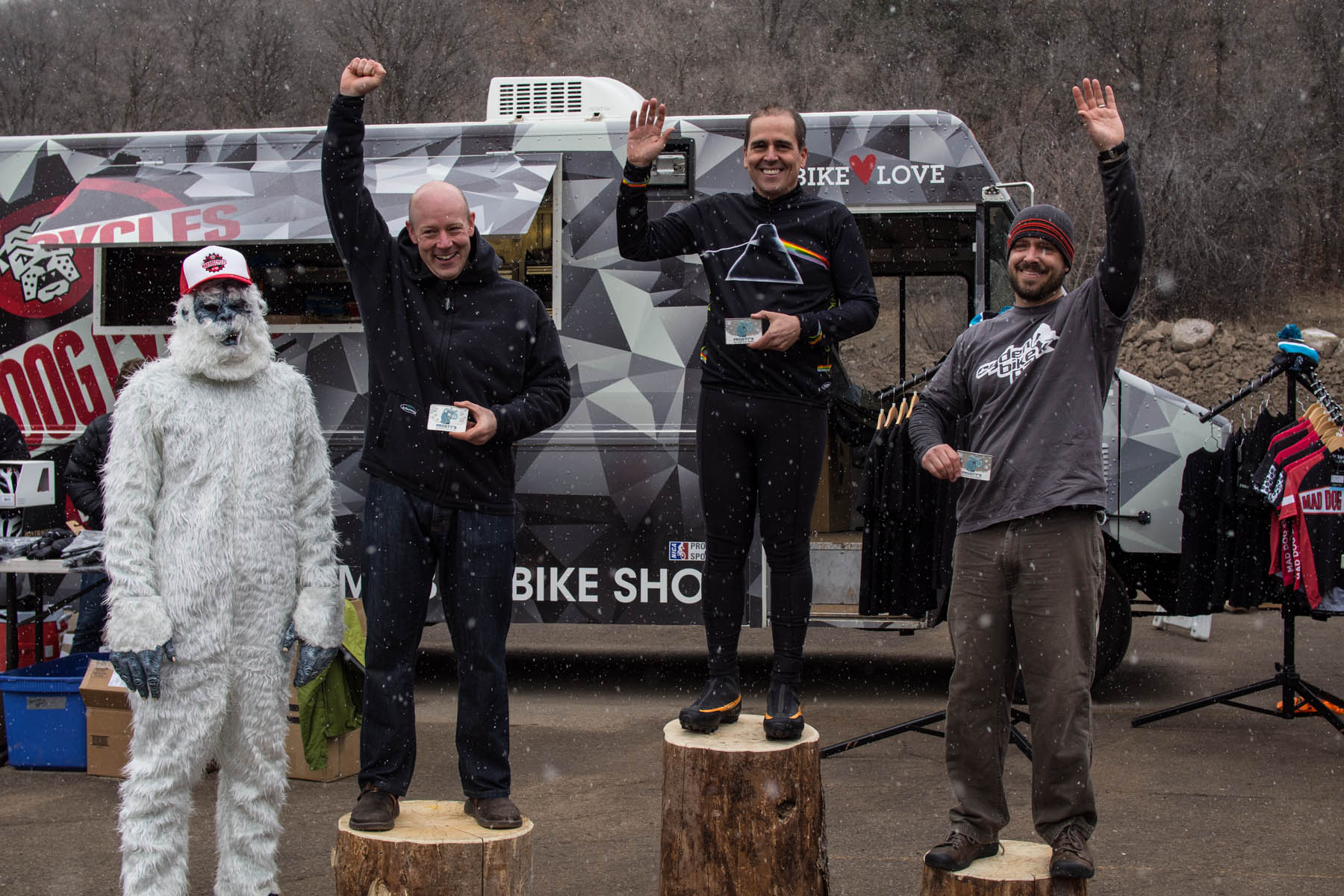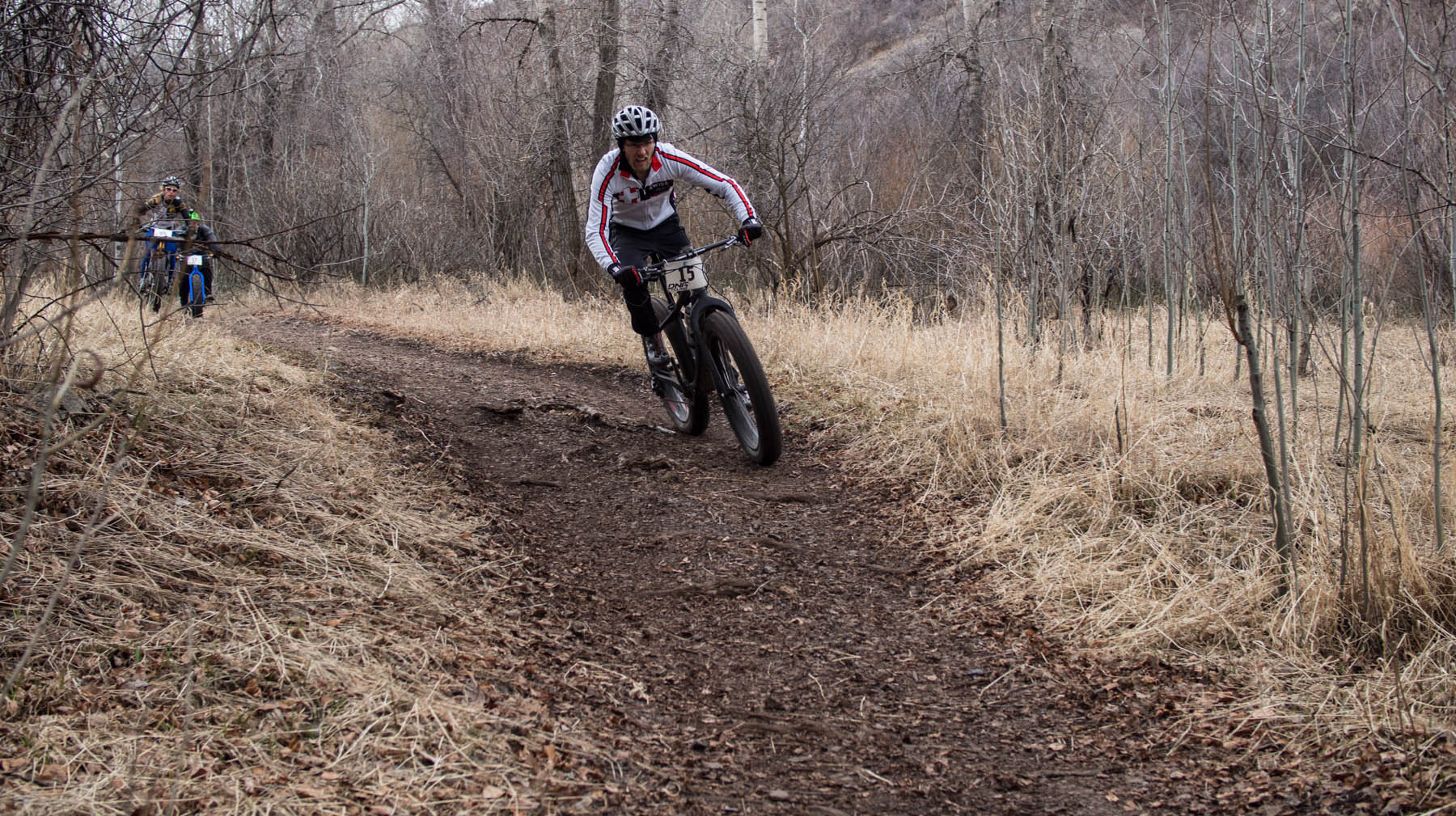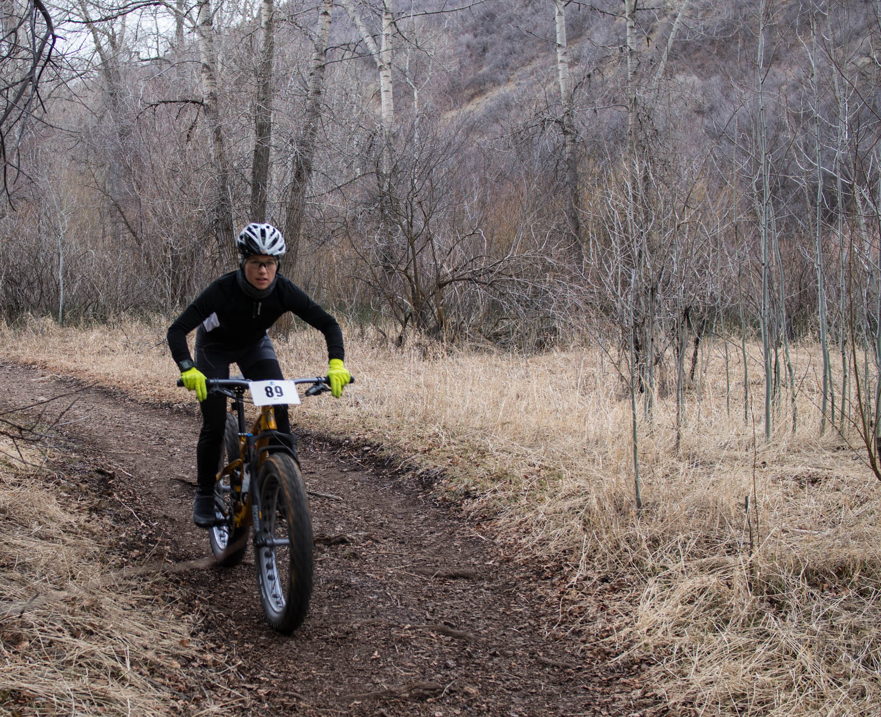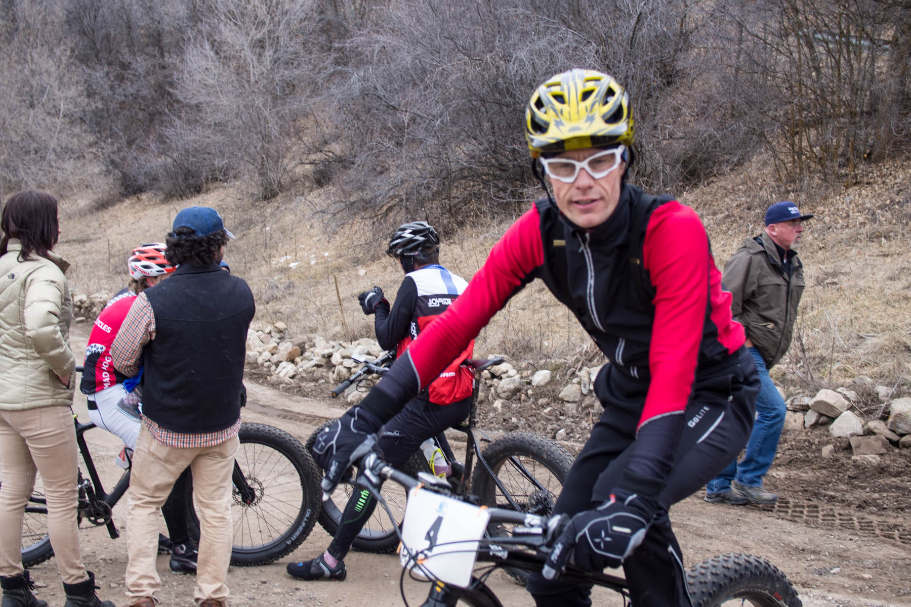 Saturday, February 28, was the last race in the Frosty Fat Bike Series. The lack of snow did not dampen the enthusiasm though. Provo City was a sponsor and there was a mini Winter Festival as well. A couple food trucks showed up, there was a dog sled team, an avalanche awareness presentation, and a wilderness first aid presentation. Mad Dog Cycles was there of course, and there were lots of goodies for the raffle. Since this was the final race in the series, the overall points leaders were recognized at the end. The course was relatively short and fast, up the fire road and down the singletrack; 5 laps for the A’s, 4 laps for the B’s and 3 laps for the C’s. Scroll down for the winners. First, the video, then the photos. Check out my Flickr photography page  (link below) for lots more photos.