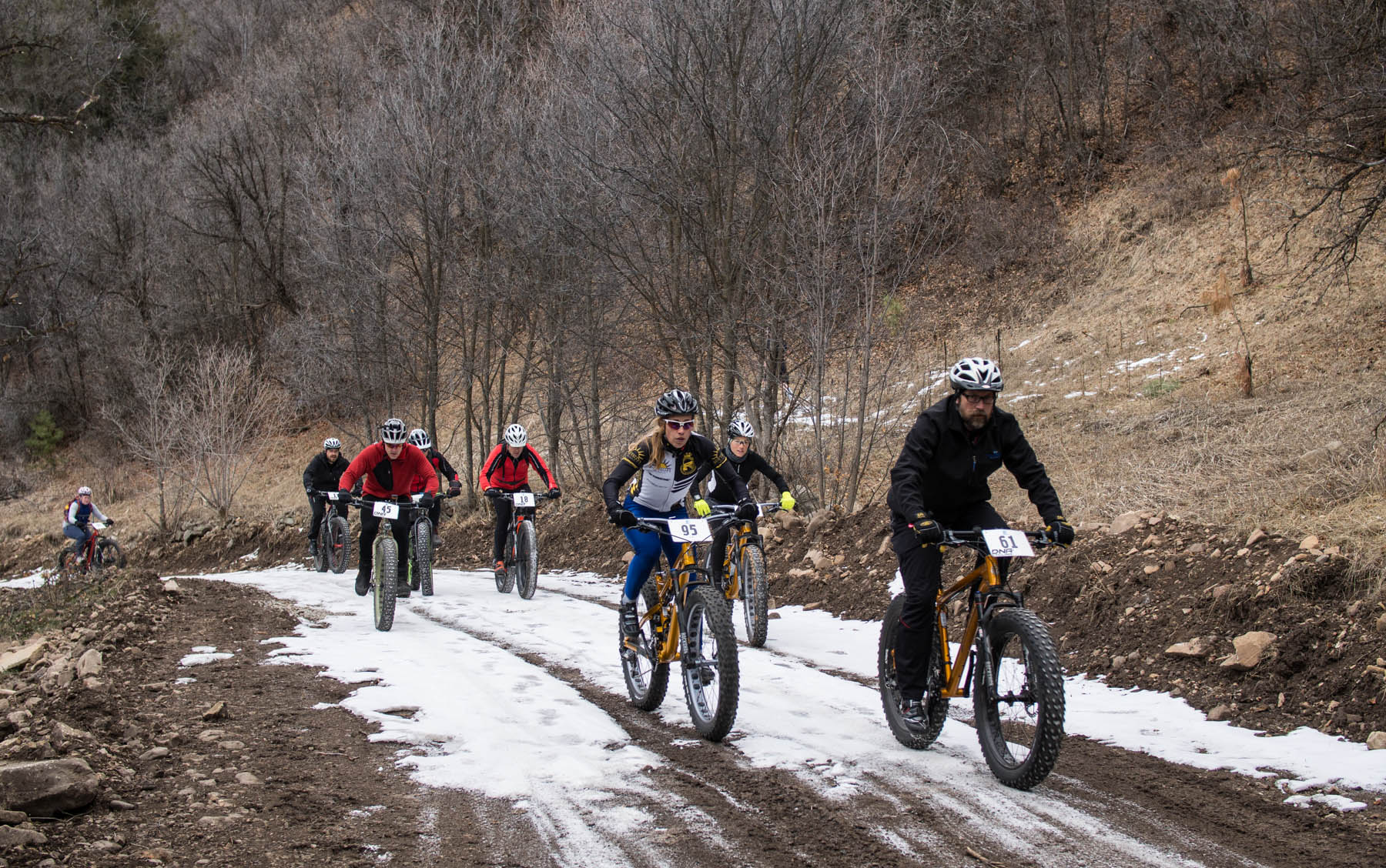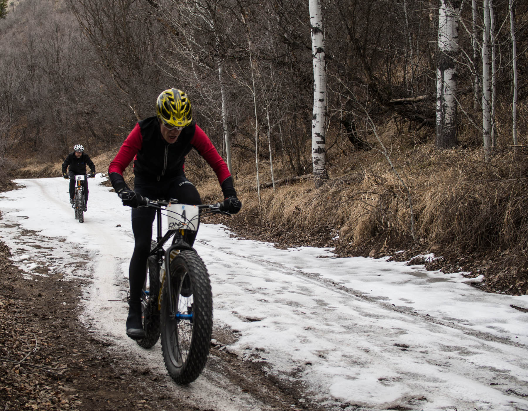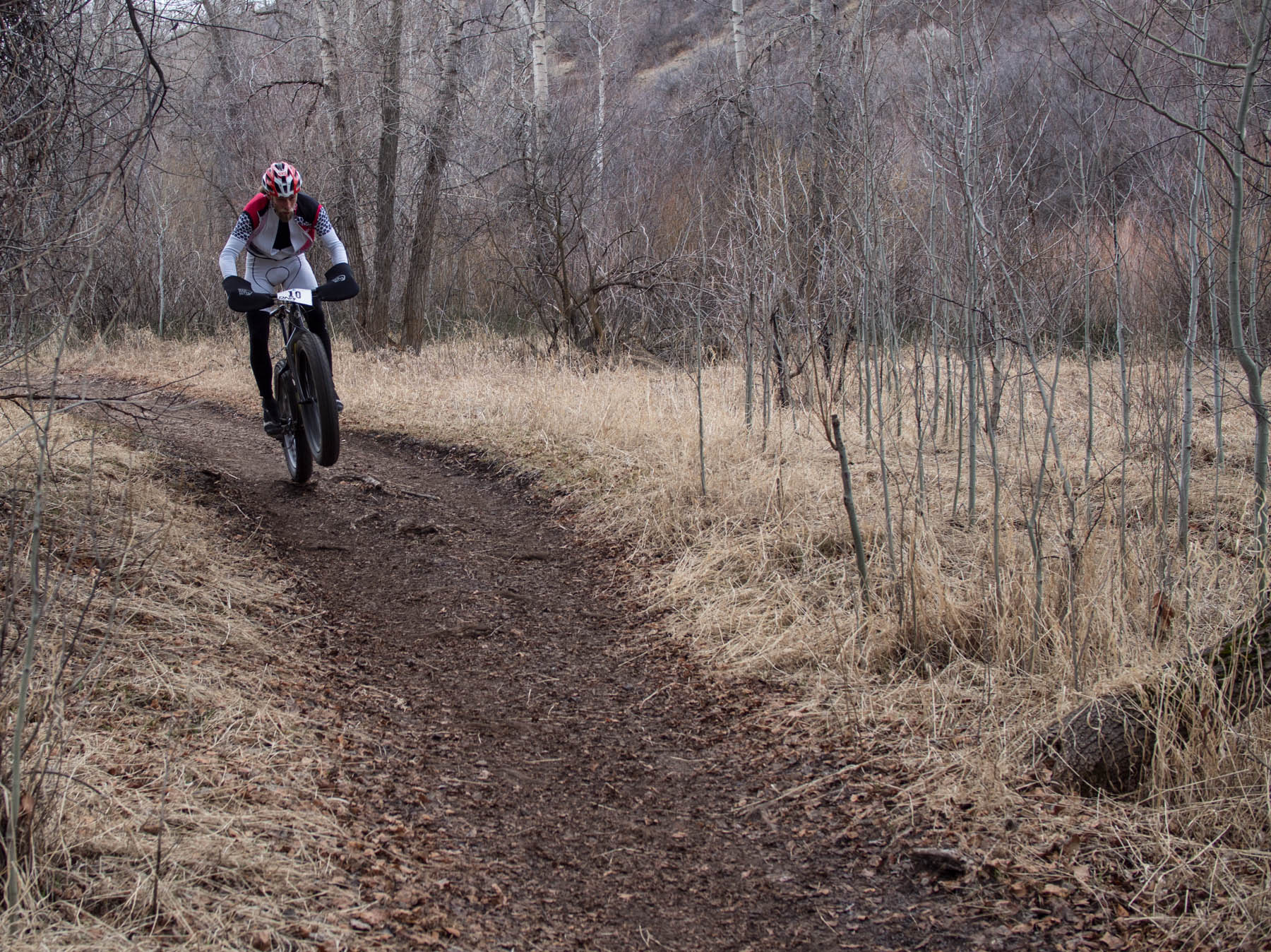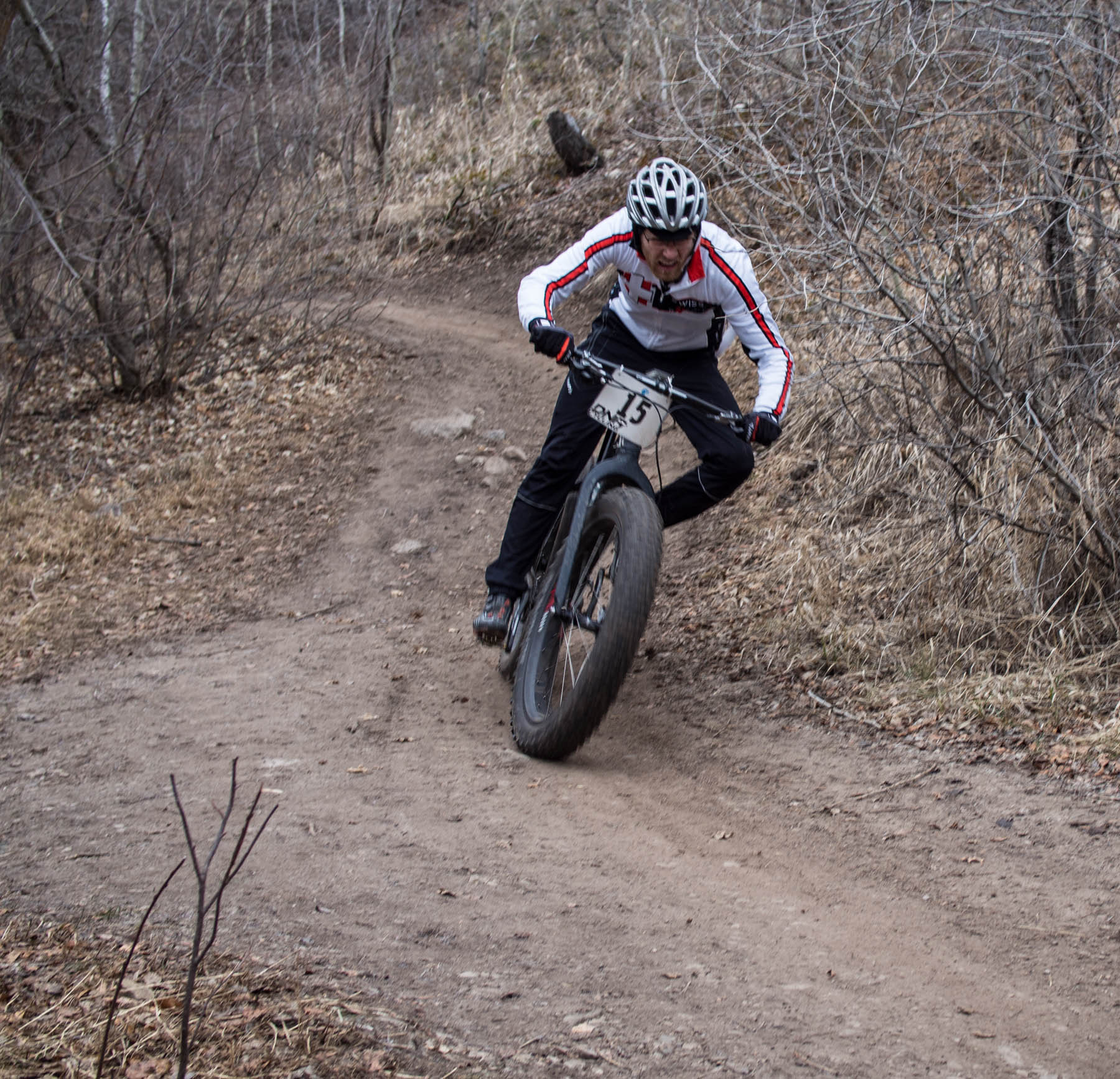 Saturday, February 28, was the last race in the Frosty Fat Bike Series. The lack of snow did not dampen the enthusiasm though. Provo City was a sponsor and there was a mini Winter Festival as well. A couple food trucks showed up, there was a dog sled team, an avalanche awareness presentation, and a wilderness first aid presentation. Mad Dog Cycles was there of course, and there were lots of goodies for the raffle. Since this was the final race in the series, the overall points leaders were recognized at the end. The course was relatively short and fast, up the fire road and down the singletrack; 5 laps for the A’s, 4 laps for the B’s and 3 laps for the C’s. Scroll down for the winners. First, the video, then the photos. Check out my Flickr photography page  (link below) for lots more photos.