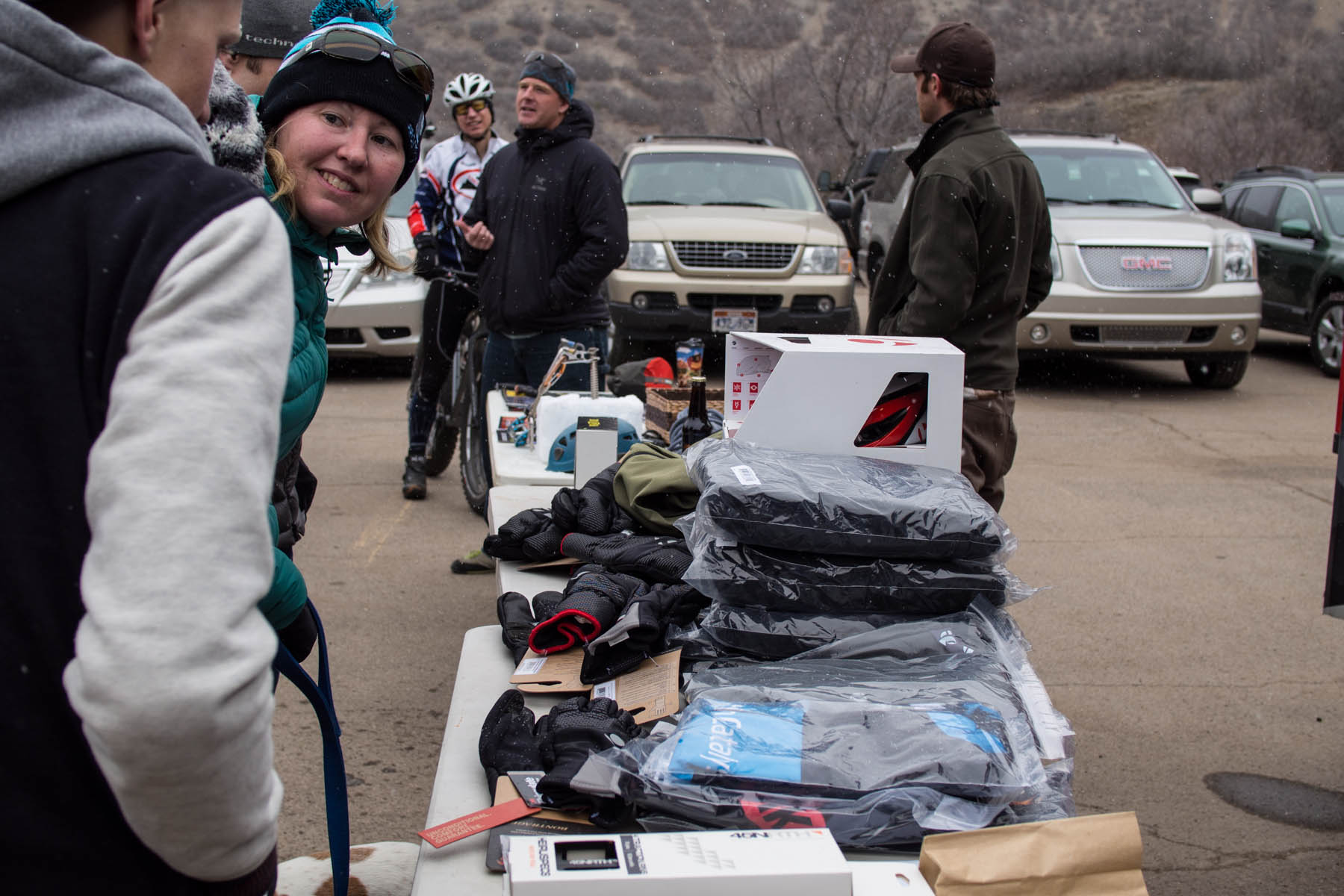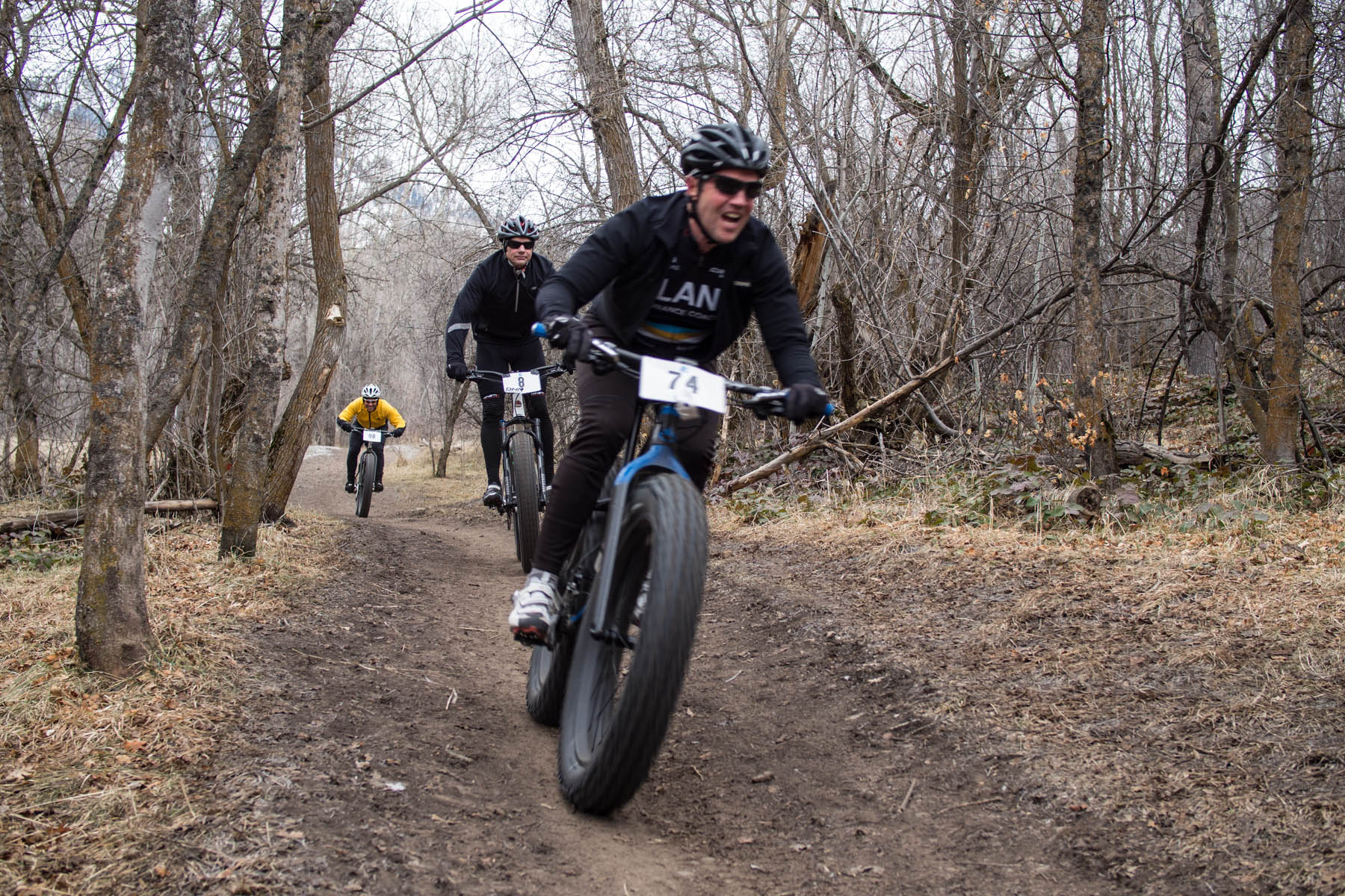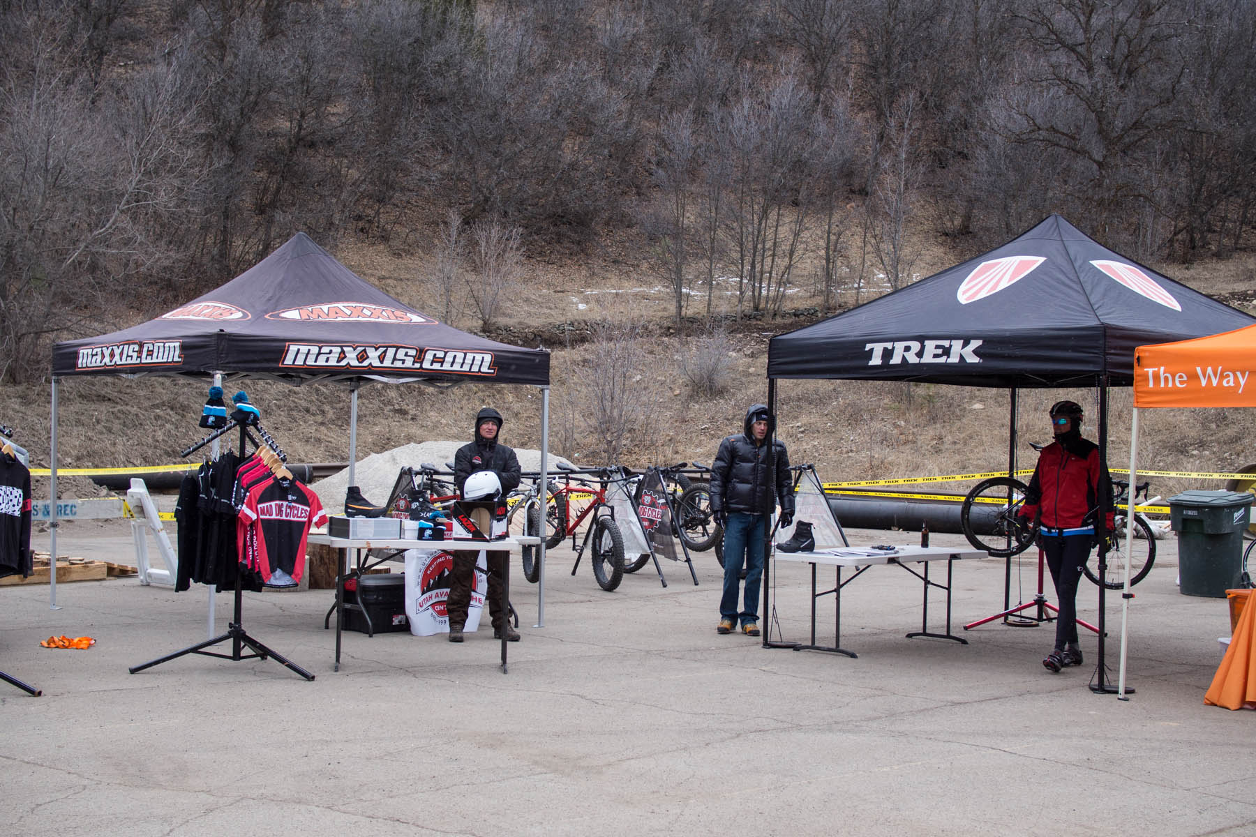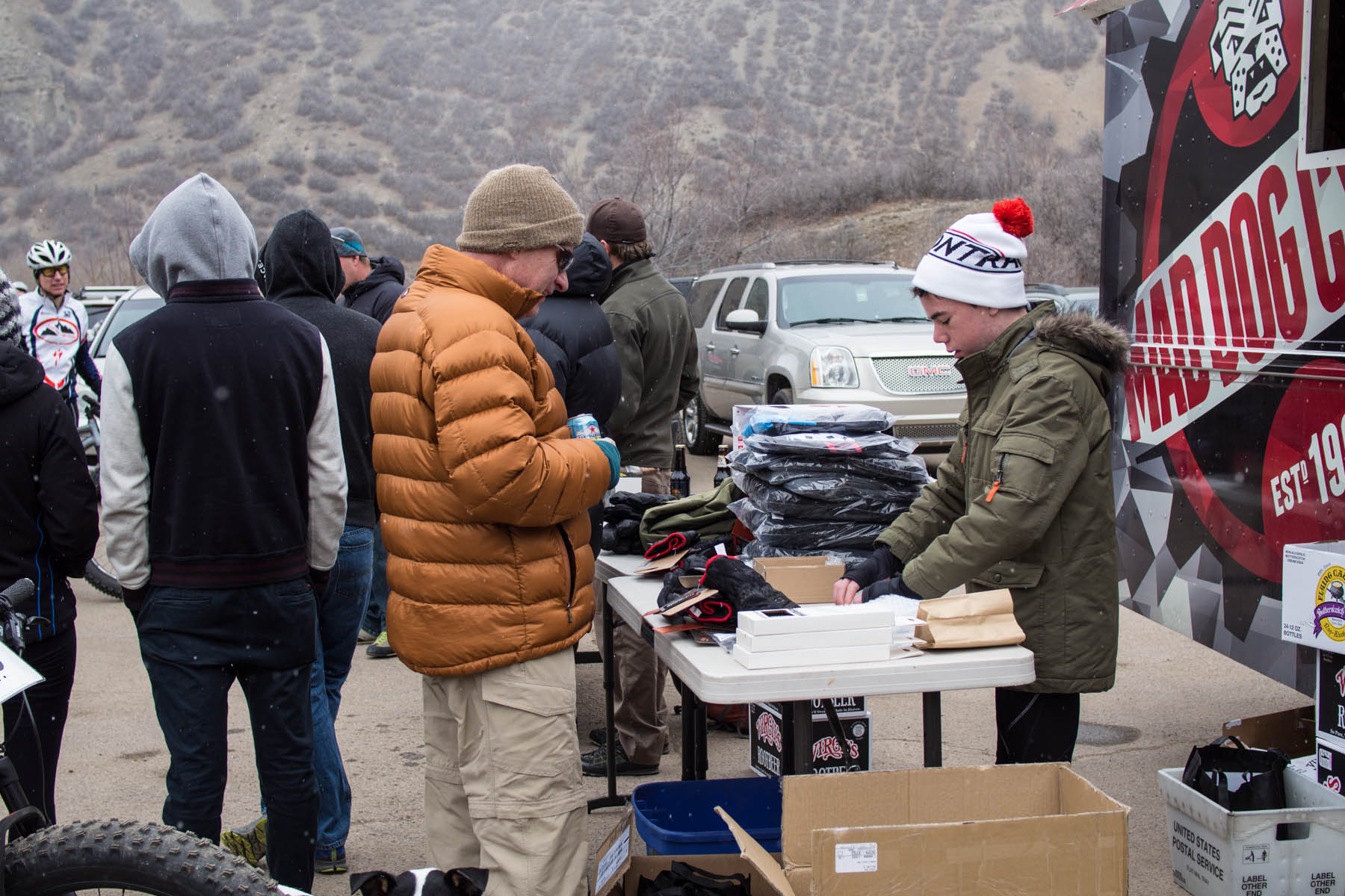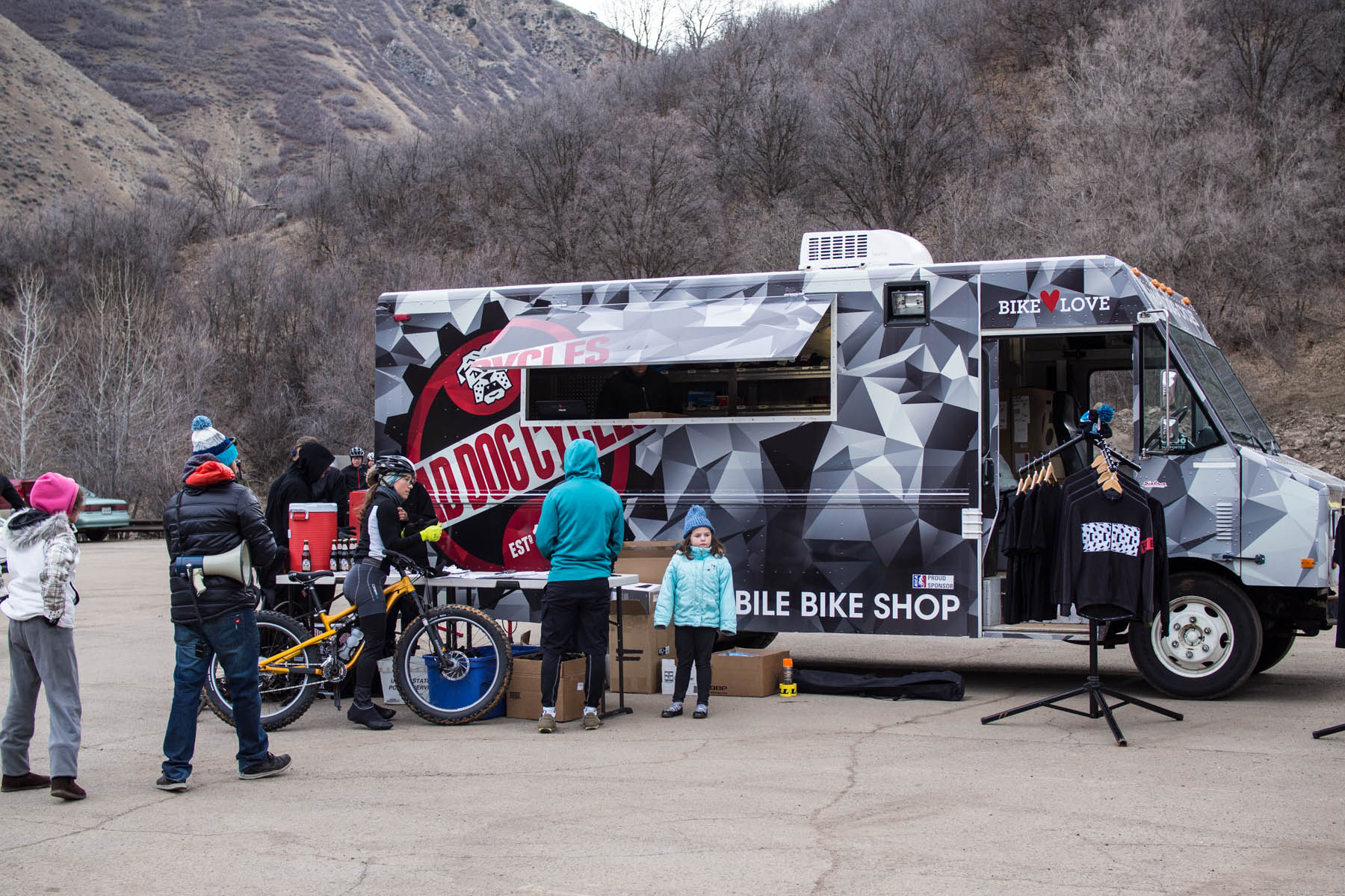 Saturday, February 28, was the last race in the Frosty Fat Bike Series. The lack of snow did not dampen the enthusiasm though. Provo City was a sponsor and there was a mini Winter Festival as well. A couple food trucks showed up, there was a dog sled team, an avalanche awareness presentation, and a wilderness first aid presentation. Mad Dog Cycles was there of course, and there were lots of goodies for the raffle. Since this was the final race in the series, the overall points leaders were recognized at the end. The course was relatively short and fast, up the fire road and down the singletrack; 5 laps for the A’s, 4 laps for the B’s and 3 laps for the C’s. Scroll down for the winners. First, the video, then the photos. Check out my Flickr photography page  (link below) for lots more photos.