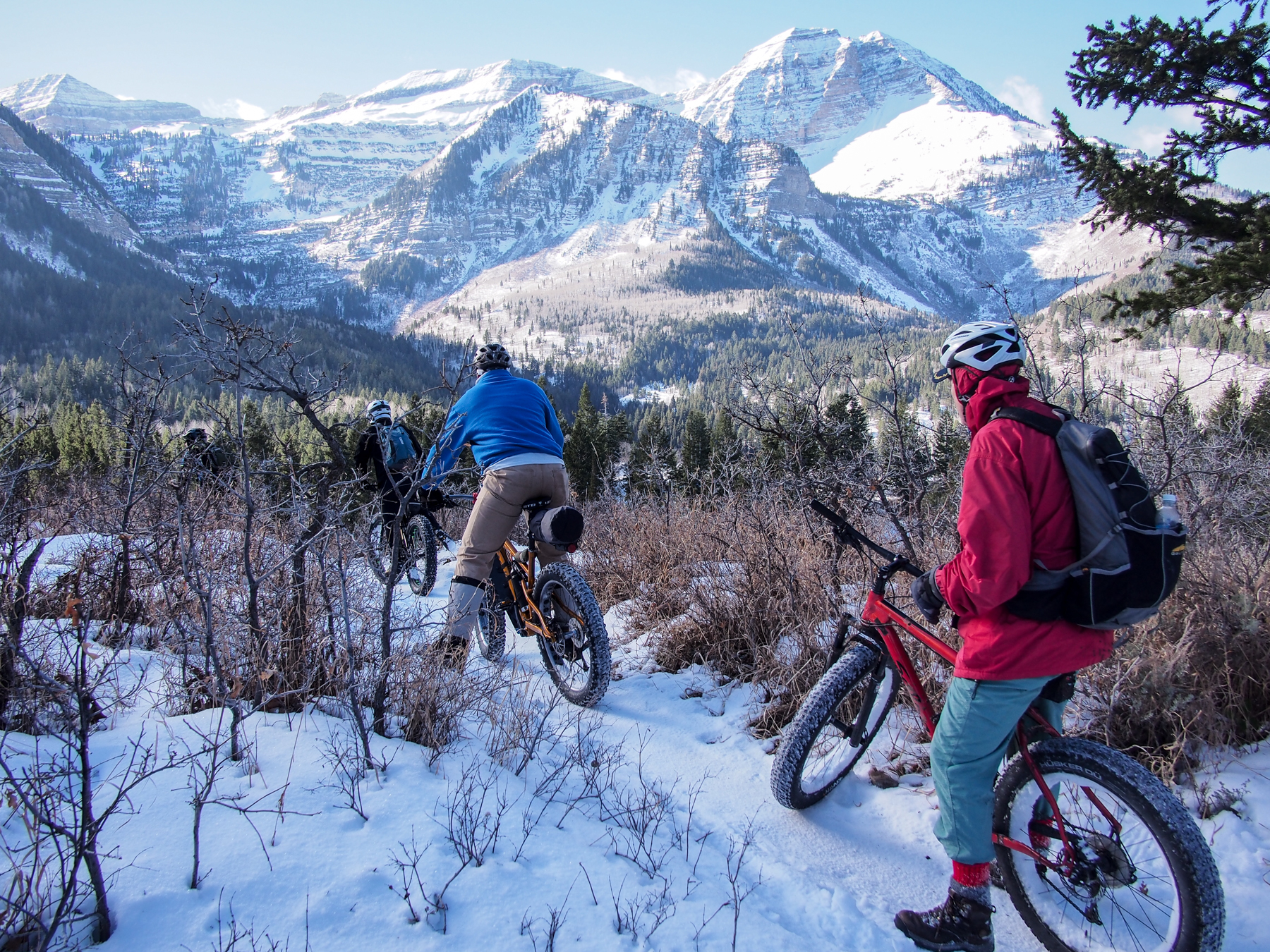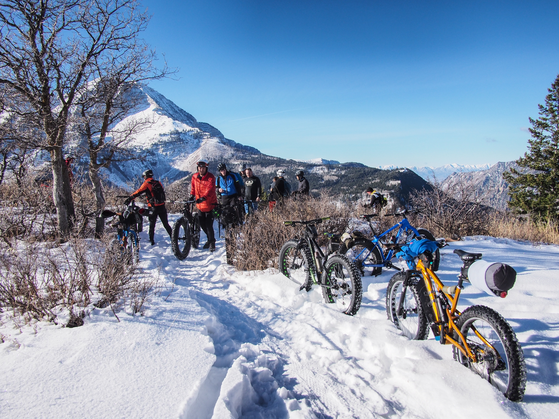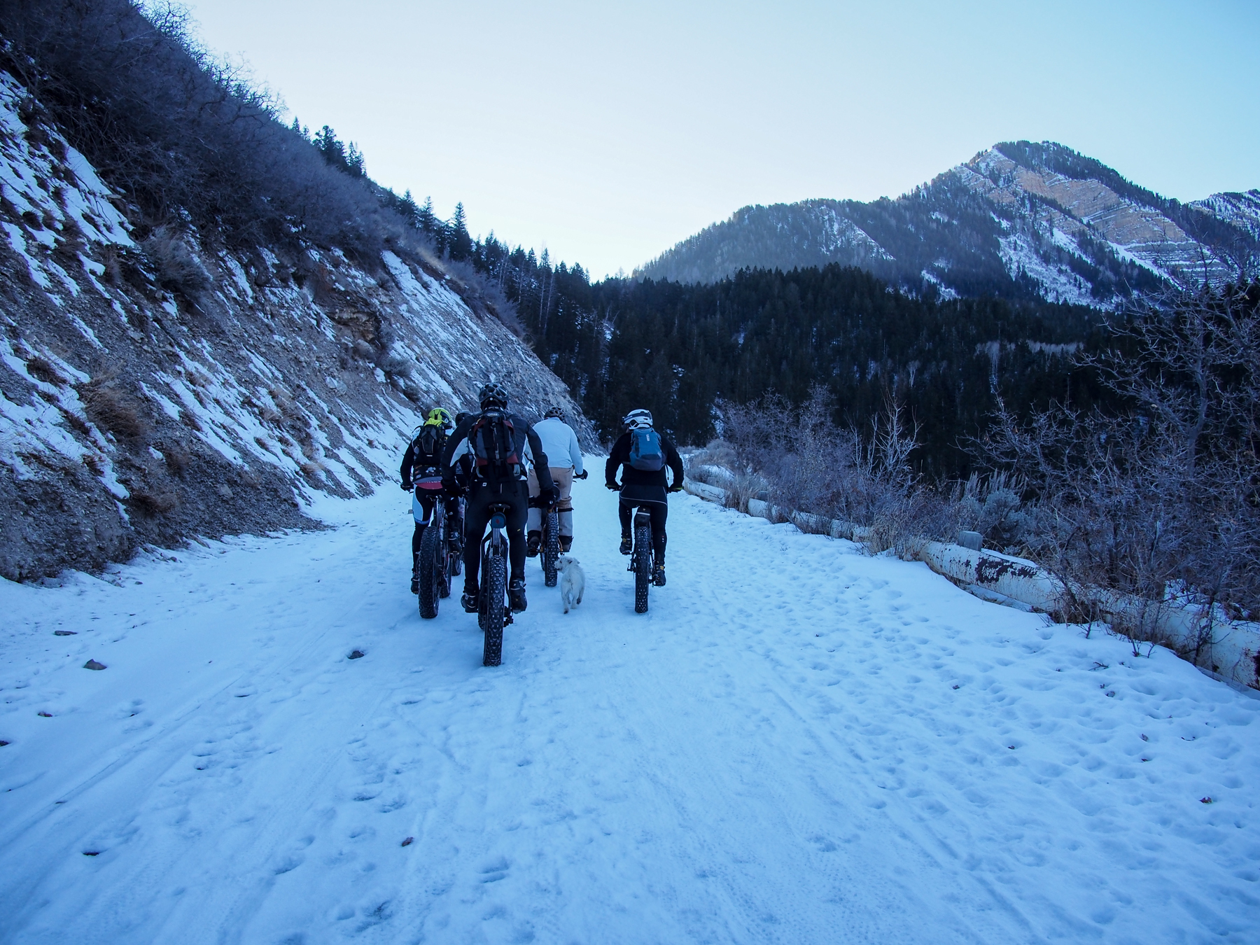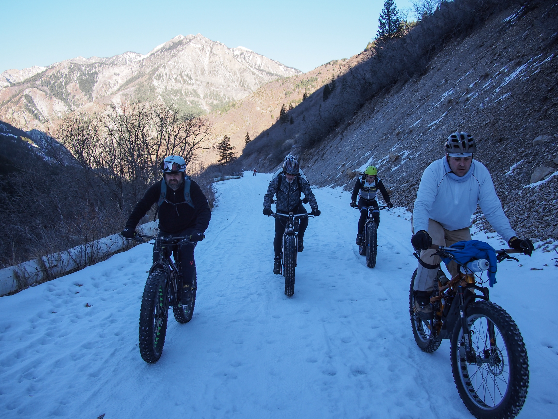 We headed up to Pine Hollow up American Fork Canyon for a Global Fatbike Day ride, along with about 40 other riders. There are some great singletrack trails up there that have been packed out and ridden and they were in great shape on Saturday. There were probably 30 people in the parking lot at Pine Hollow when we arrived. I’m not sure I’ve ever seen that many fatbikes all in one place before.