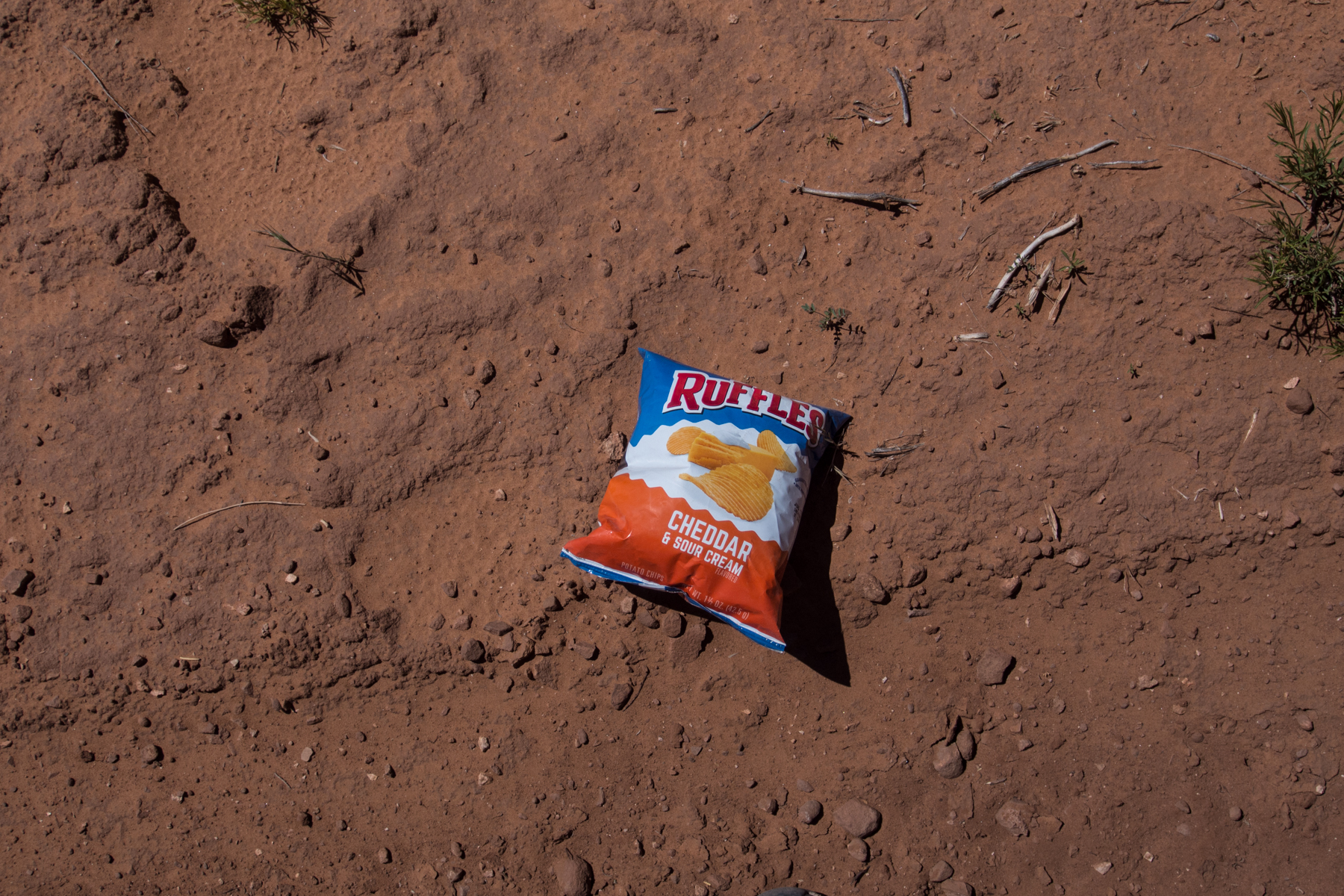As we were preparing to descend back into Fisher Valley, we saw the Baltimore boys slowing climbing up toward us. We met and told them of our decision. They too were pretty wiped out and were depending on spring water at Hideout Campground ahead. It was taking longer than they had planned to do this route, and they were clearly pretty beat as well. Since we were bailing I gave them a bunch of my leftover food, for which they were really glad.