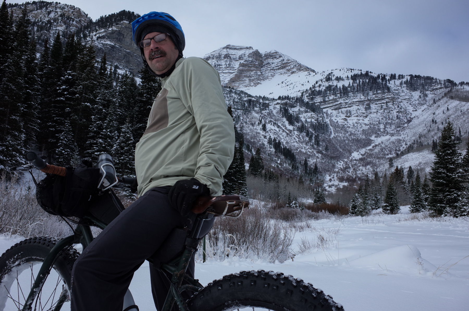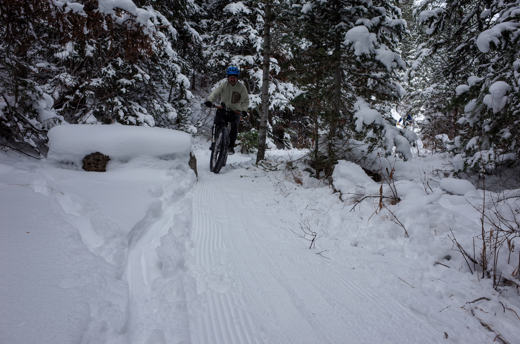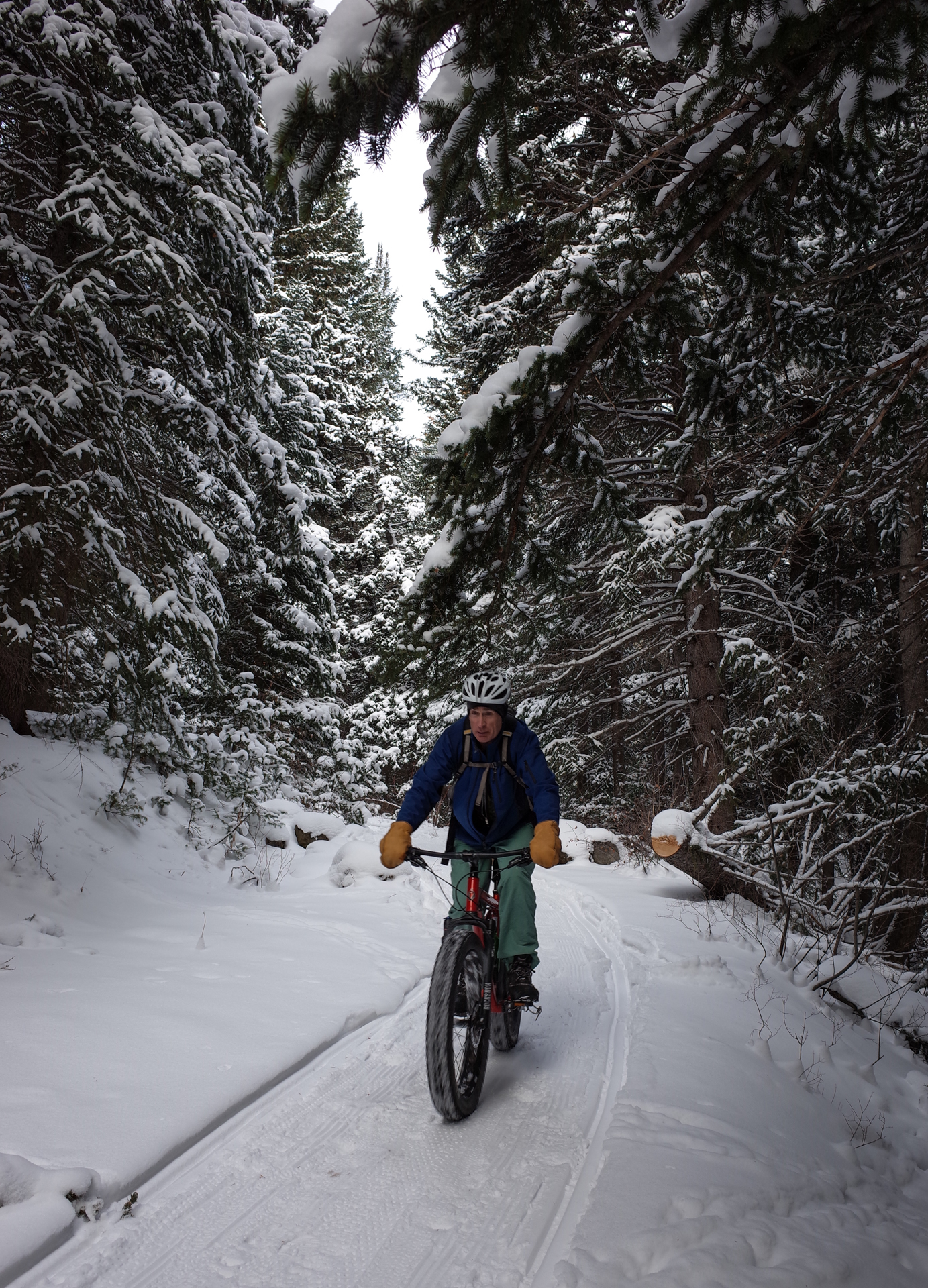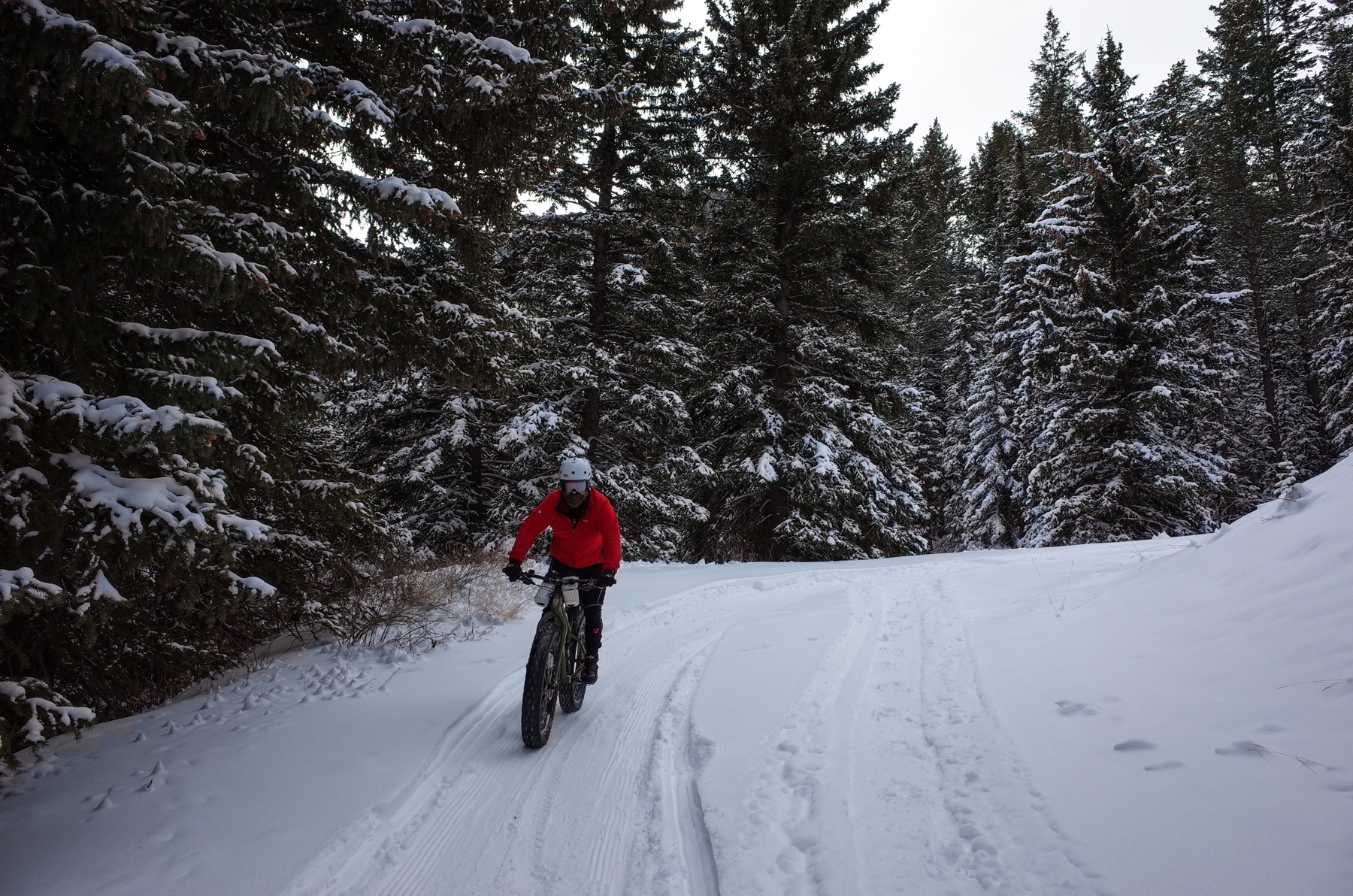 We did a couple laps there, then headed back down to the Alpine Loop Road and headed up to Salamander Flat. The riding was not ideal. Surprisingly there were no other bike tracks, just foot and ski tracks. It was quite soft in places as well and left us wallowing a bit. Surprisingly we didn’t see very many other fat bikes, maybe 6-7, mostly coming up as we were headed down.